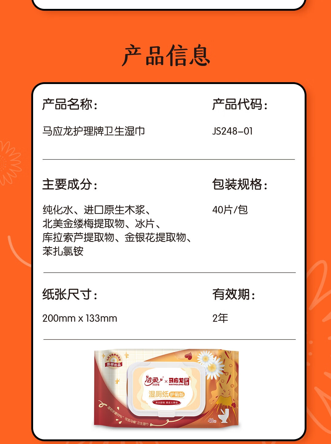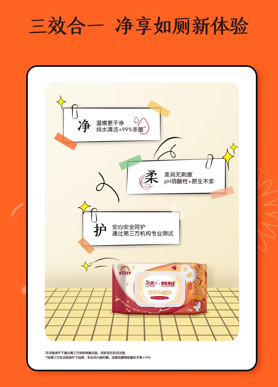 洁柔湿厕纸 马应龙联名40片*1包 清洁湿巾杀菌99% 痔疮清凉舒爽药味