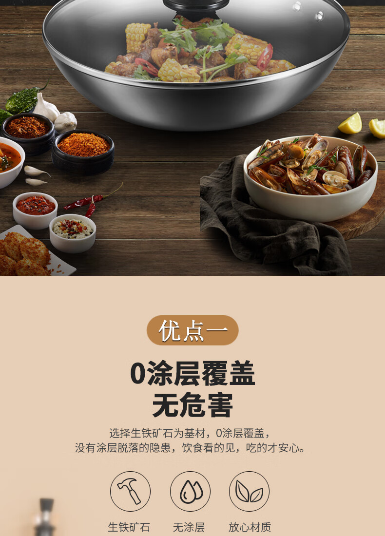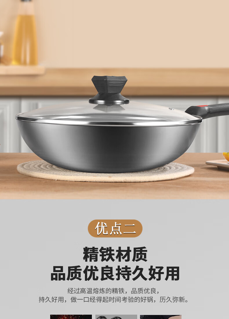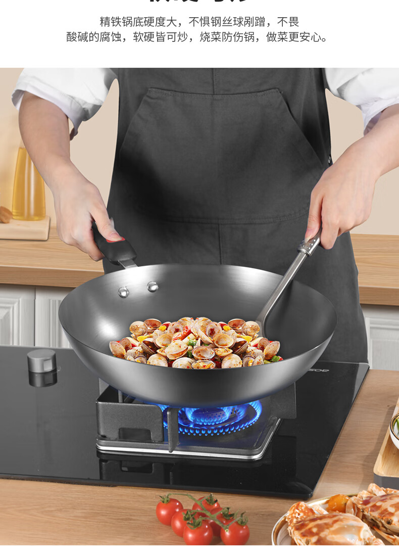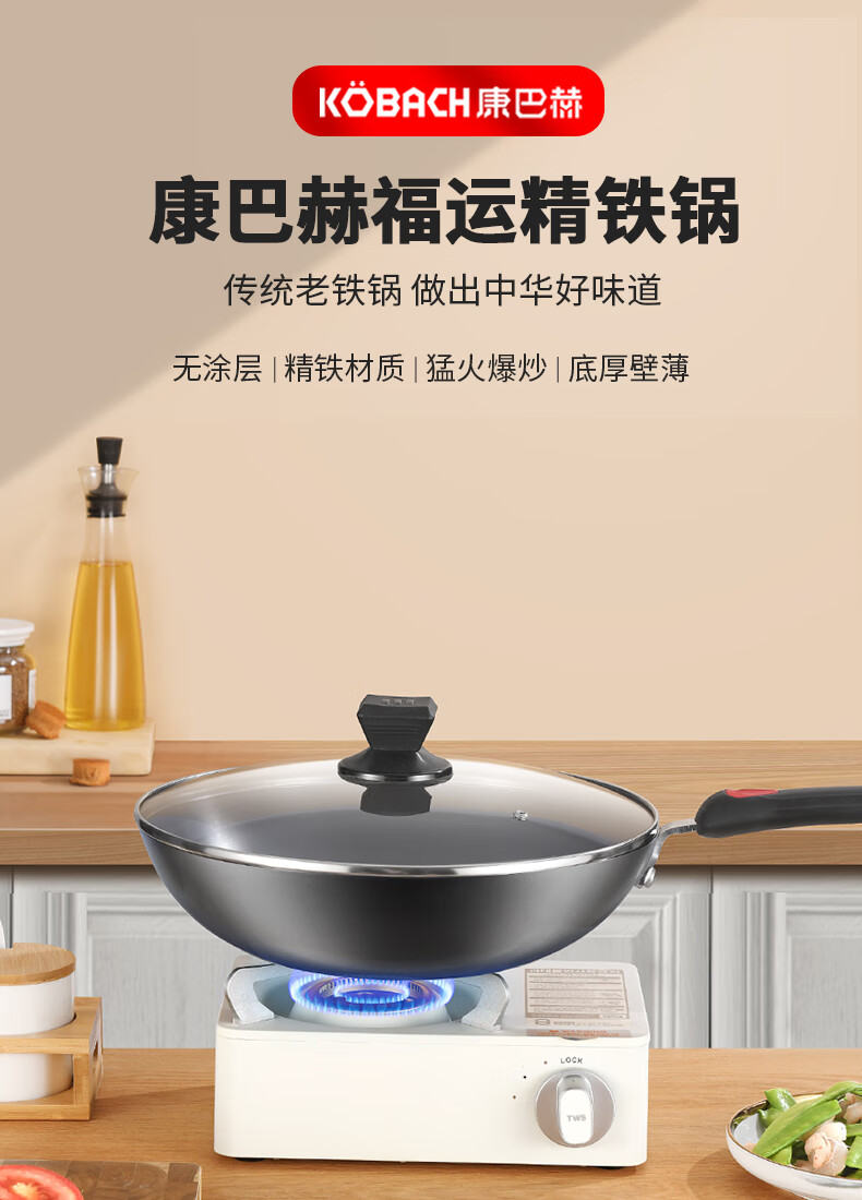 康巴赫精铁无涂层家用炒菜锅32cm 电磁炉燃气灶通用 福运精铁锅CJP32A1