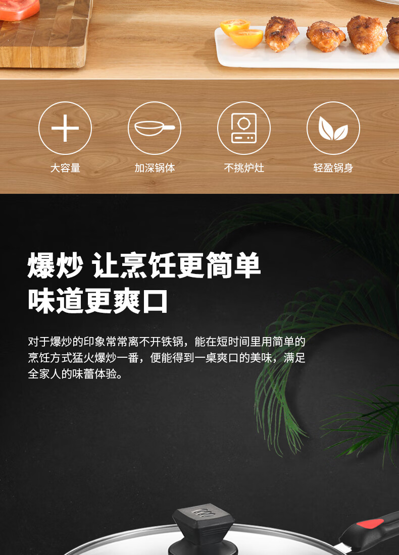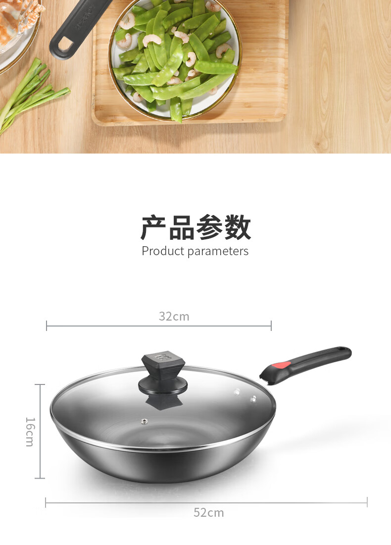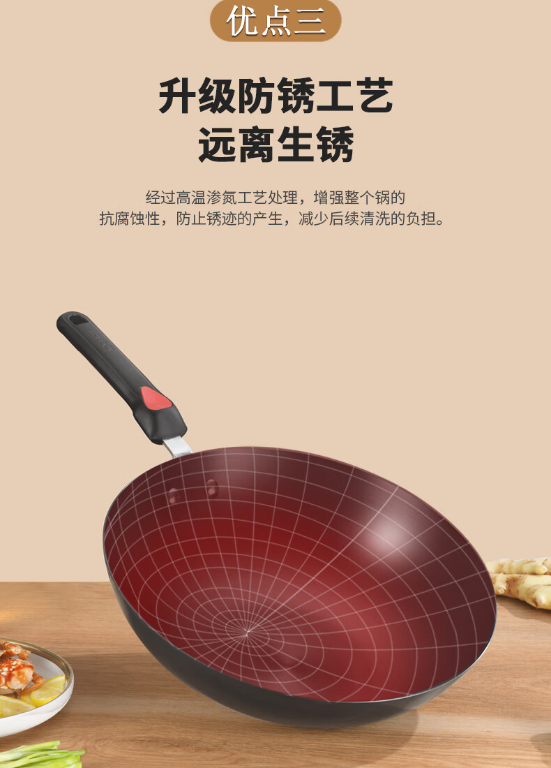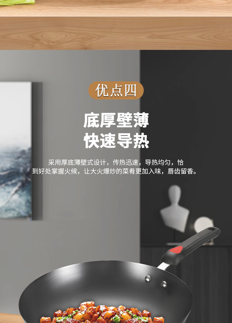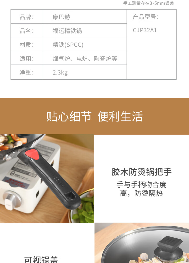康巴赫精铁无涂层家用炒菜锅32cm 电磁炉燃气灶通用 福运精铁锅CJP32A1