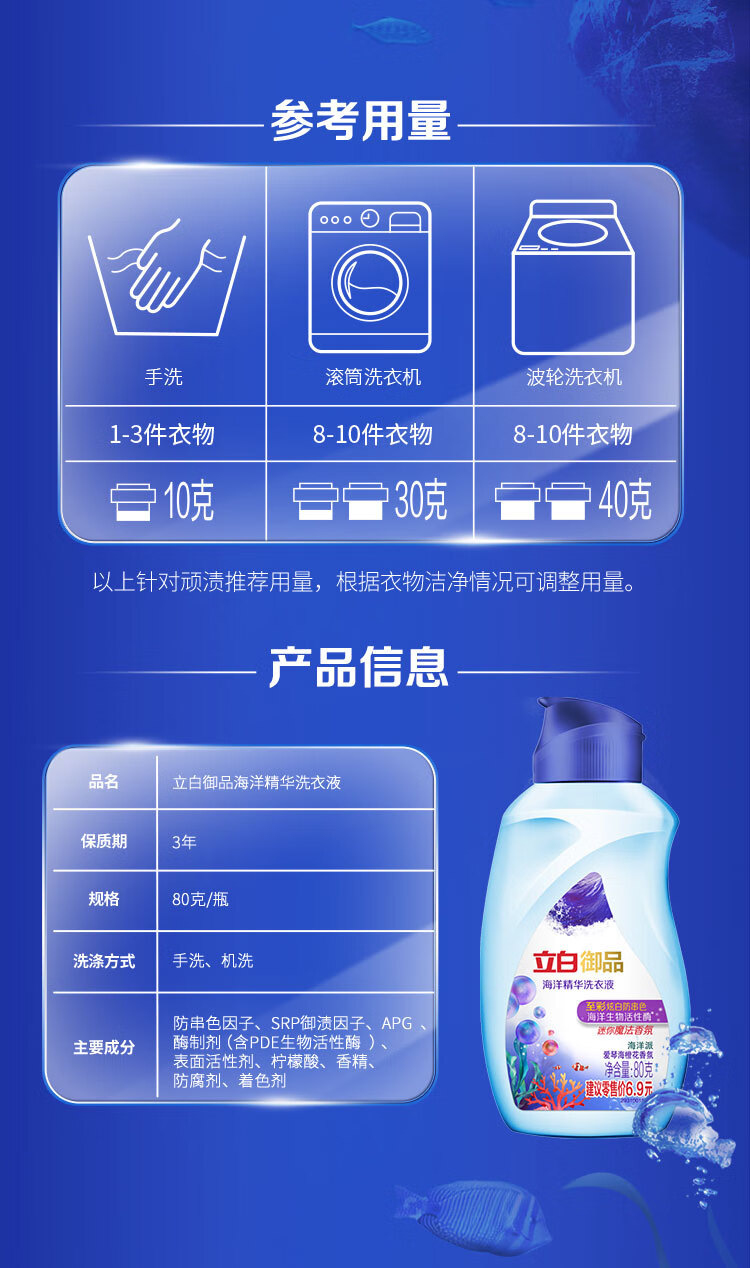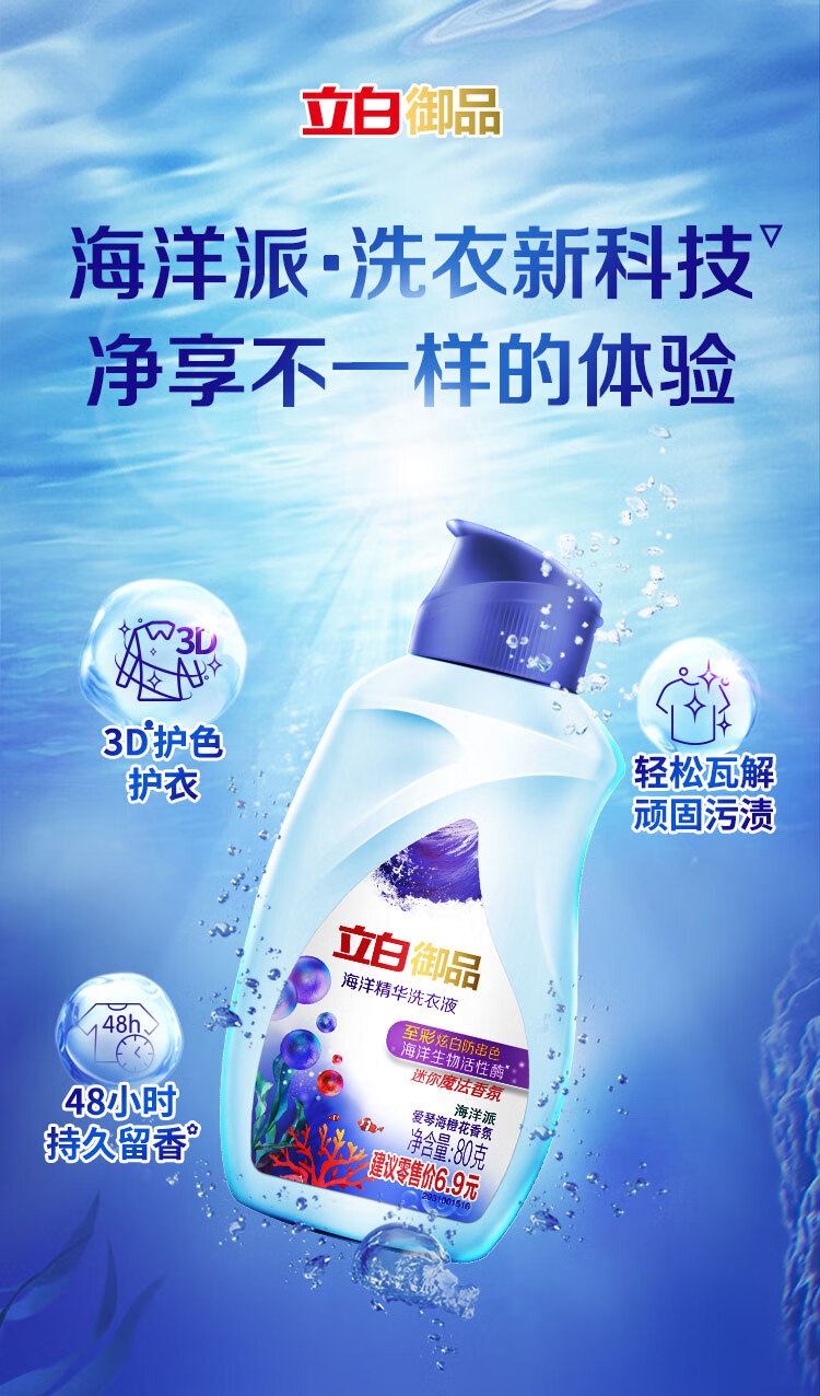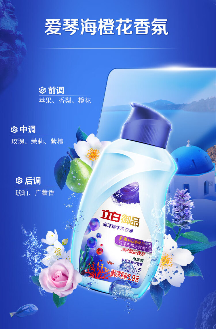 立白御品海洋炫白洗衣液 持久留香护衣防串色 爱琴海橙花 80g旅行装