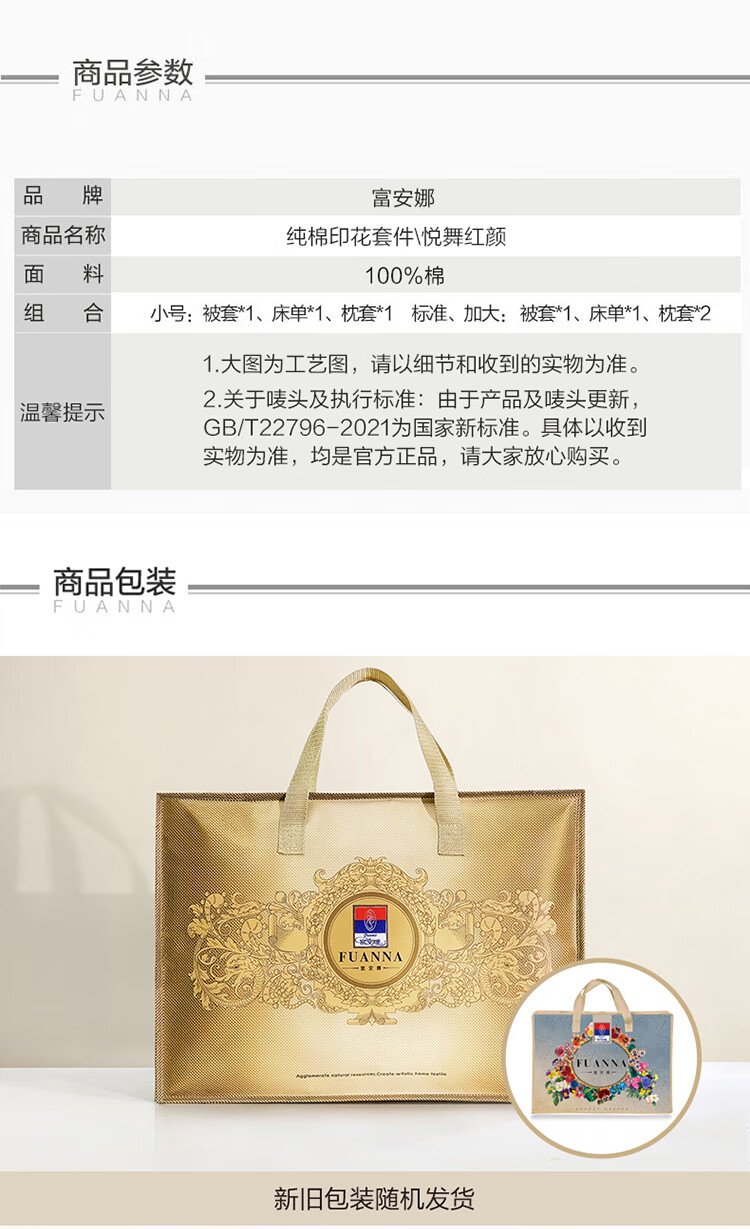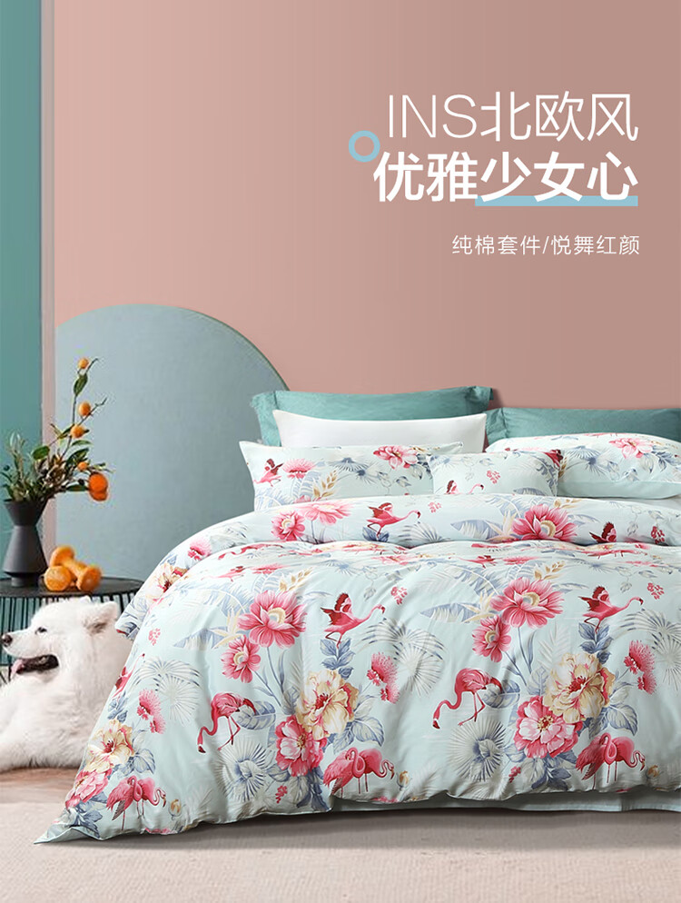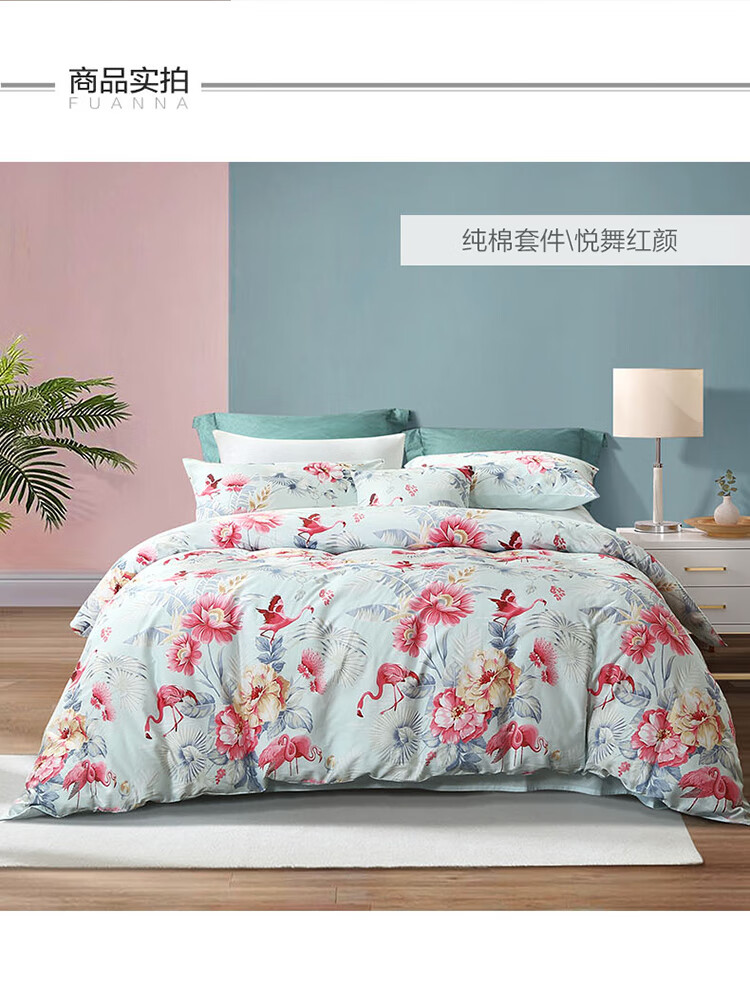 富安娜纯棉床上三件套100%全...