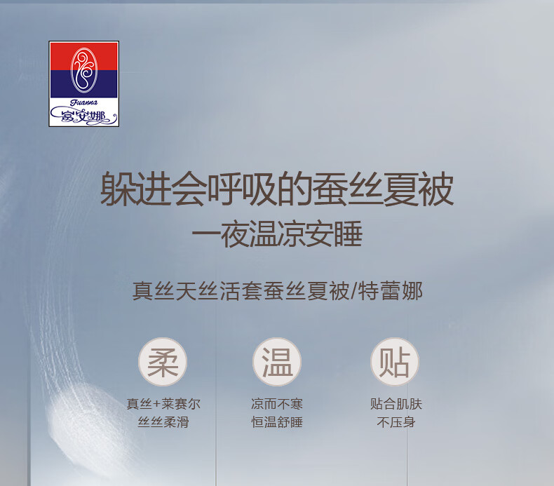 富安娜家纺被子 100%桑蚕丝真丝蚕丝夏被 单双人1米5床适用