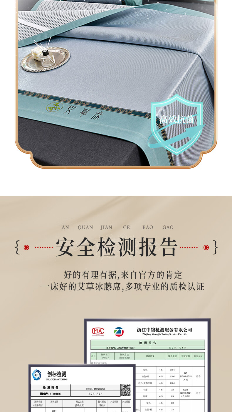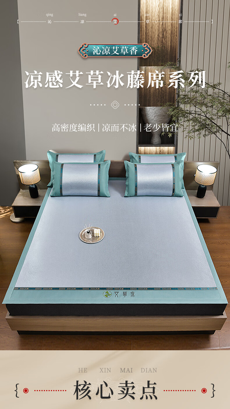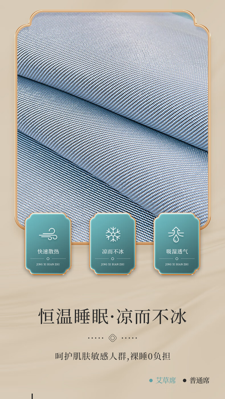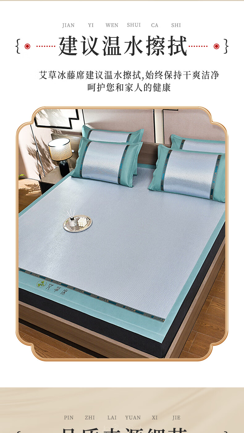 洁丽雅(Grace)A类艾草冰藤席 夏季单凉席抗菌可折叠家用单席/1.5米(不含枕套)