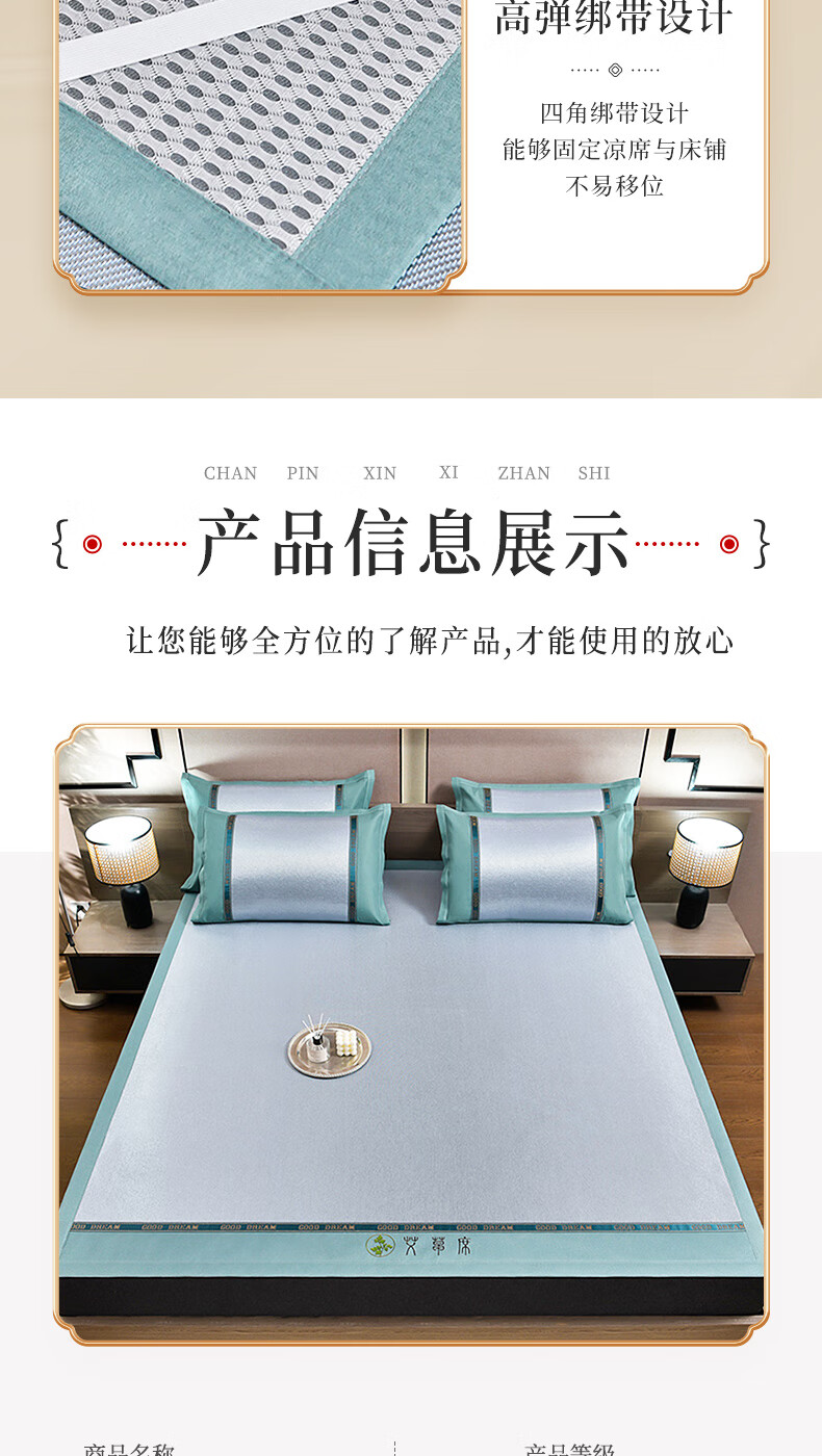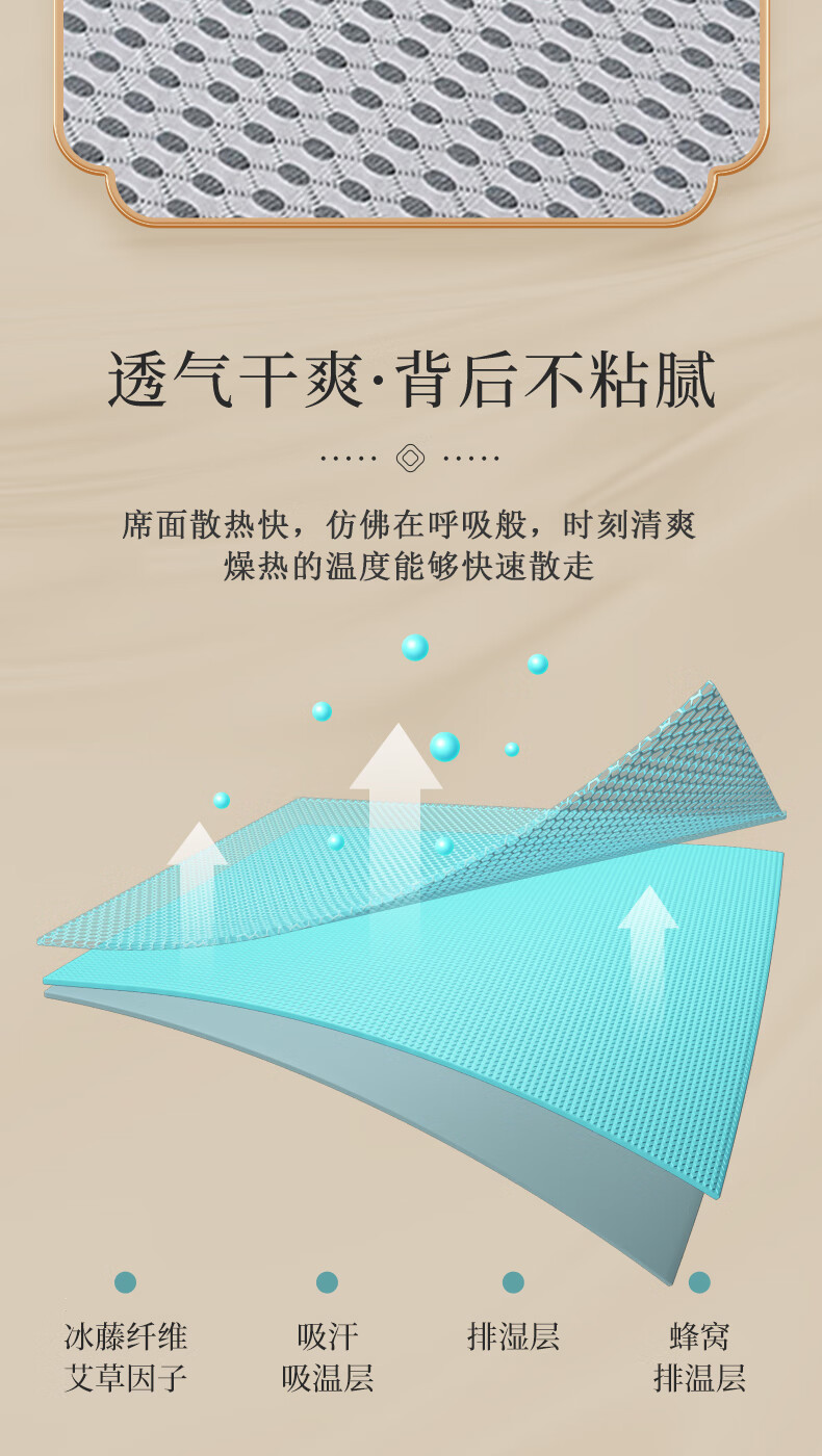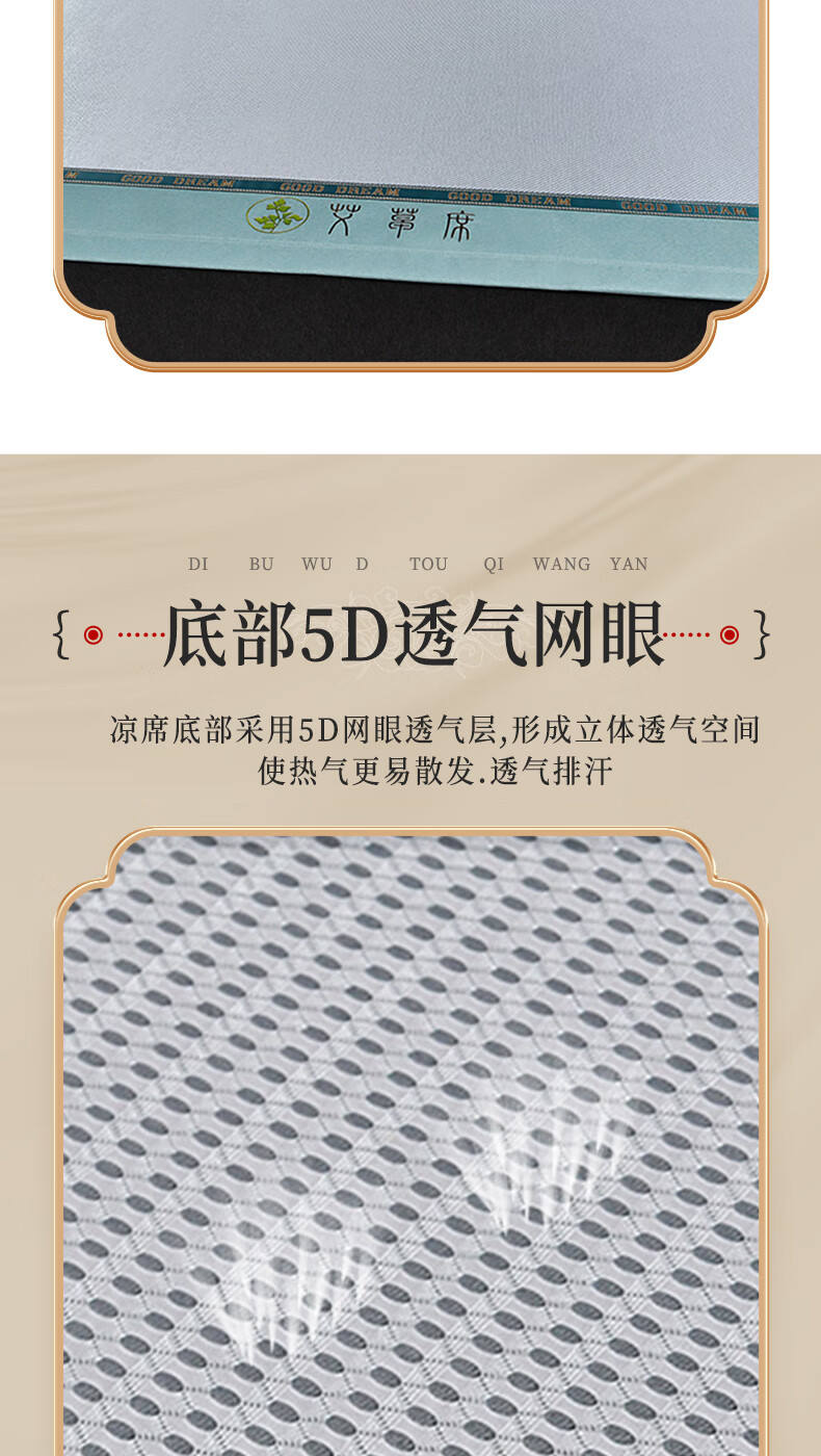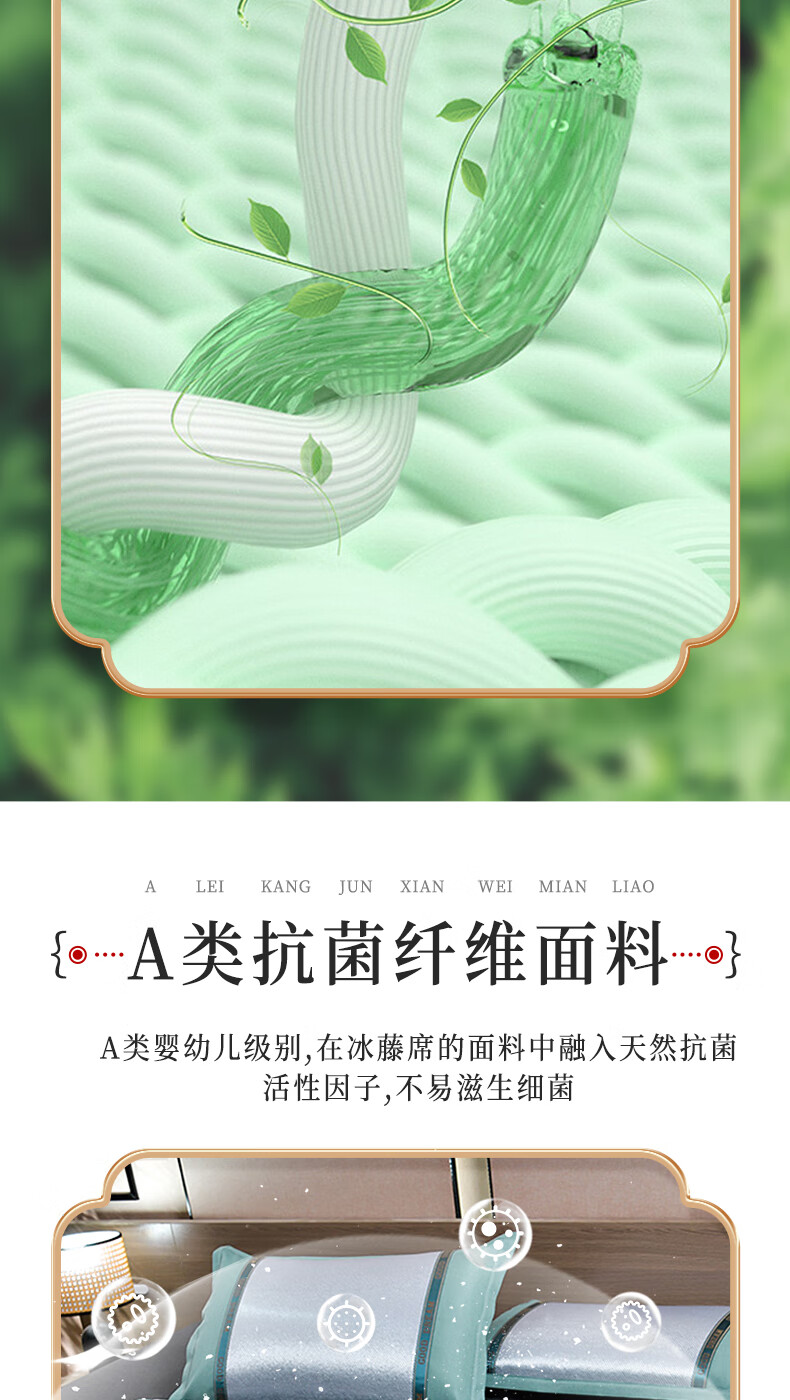 洁丽雅(Grace)A类艾草冰藤席 夏季单凉席抗菌可折叠家用单席/1.5米(不含枕套)