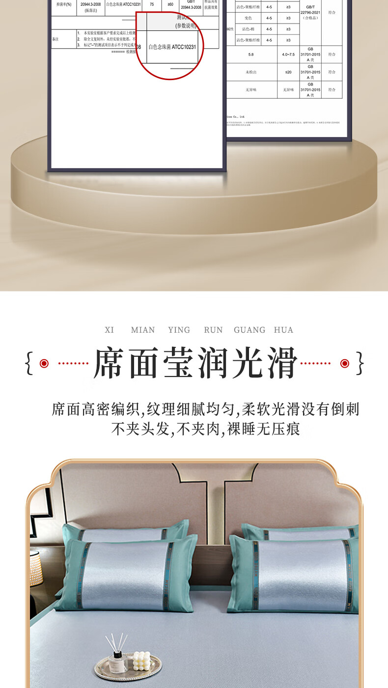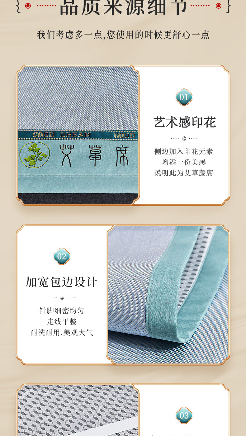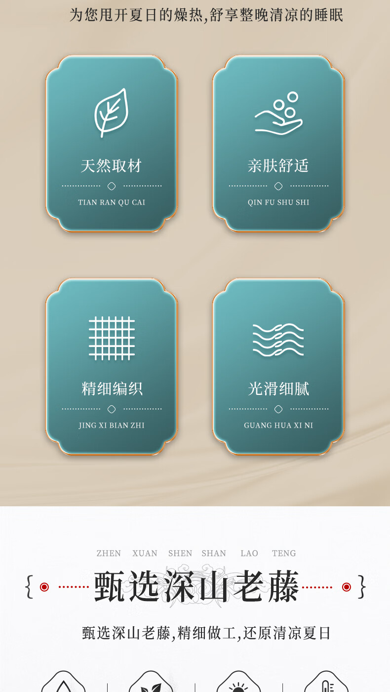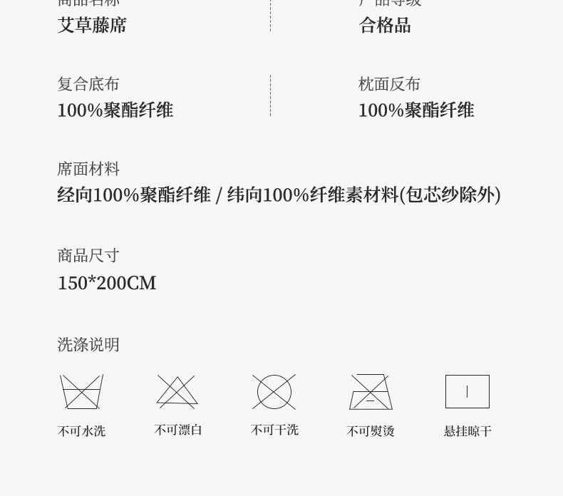 洁丽雅(Grace)A类艾草冰藤席 夏季单凉席抗菌可折叠家用单席/1.5米(不含枕套)