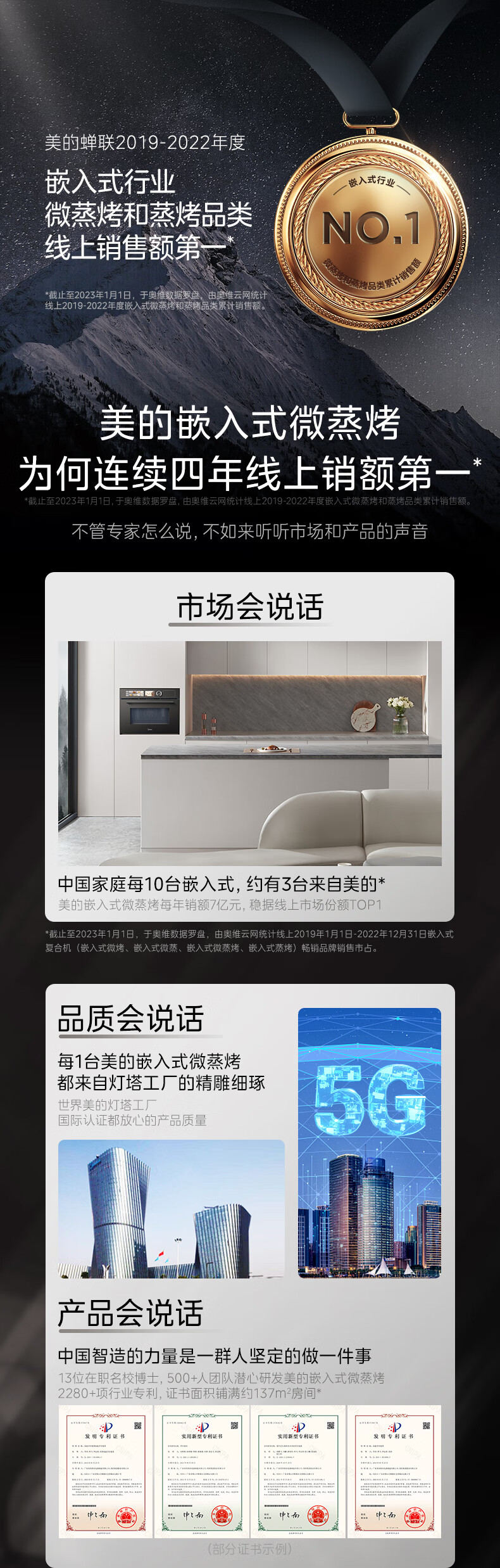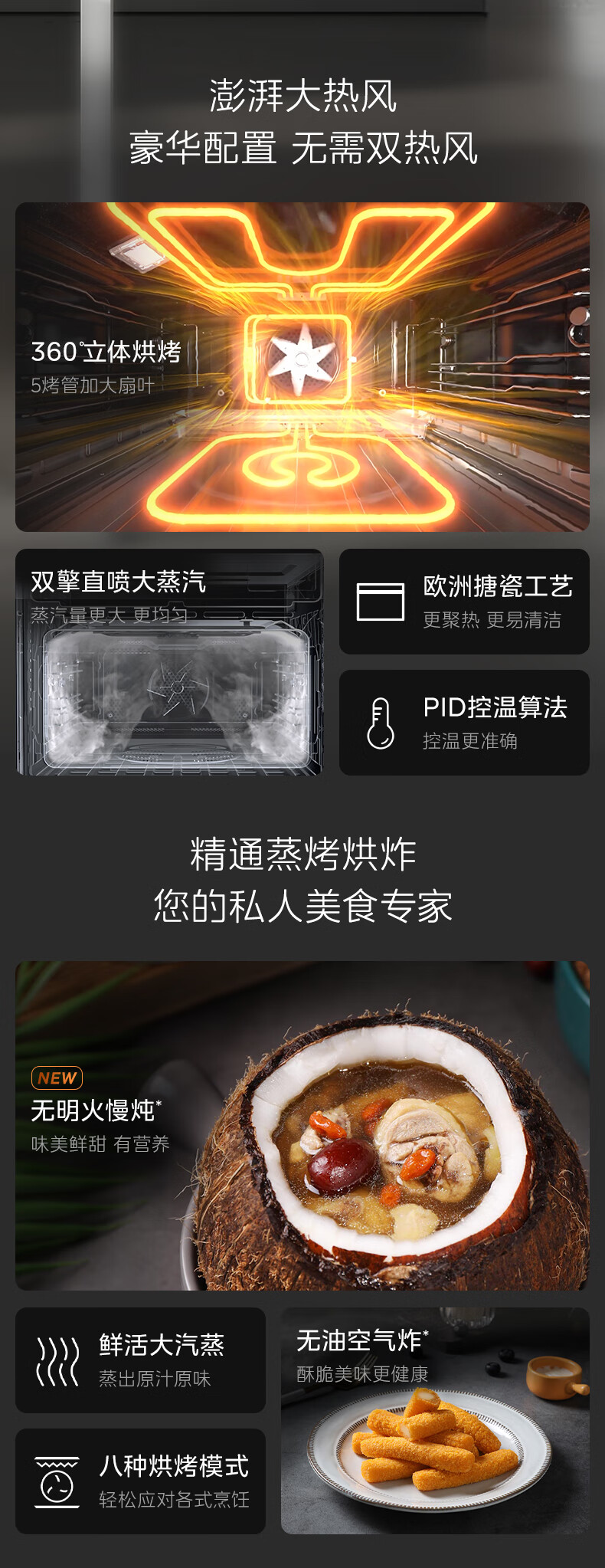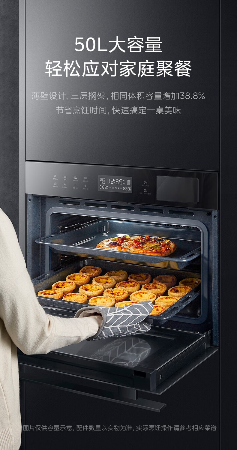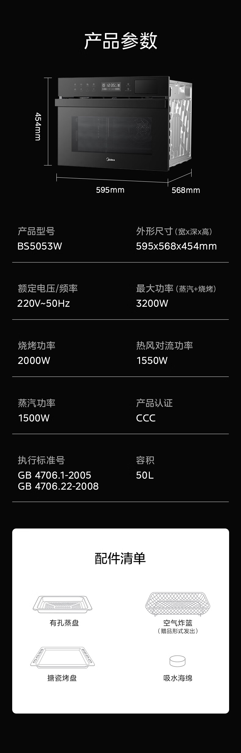 美的(Midea)嵌入式蒸烤一体机 家用智能多功能蒸箱烤箱二合一 京东小家APP操控 50L大容量搪瓷内胆BS5053W