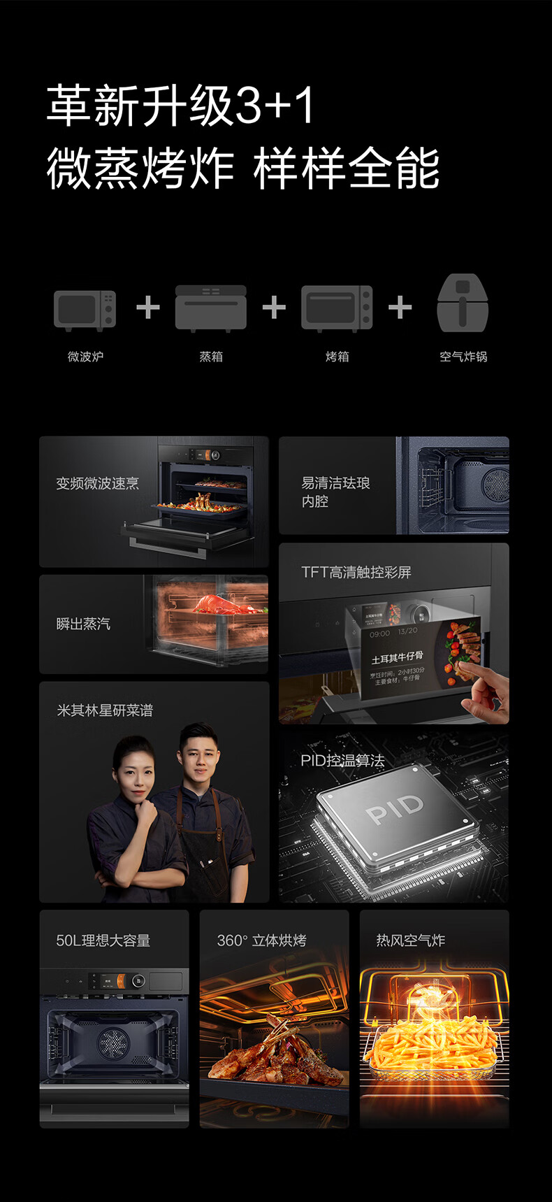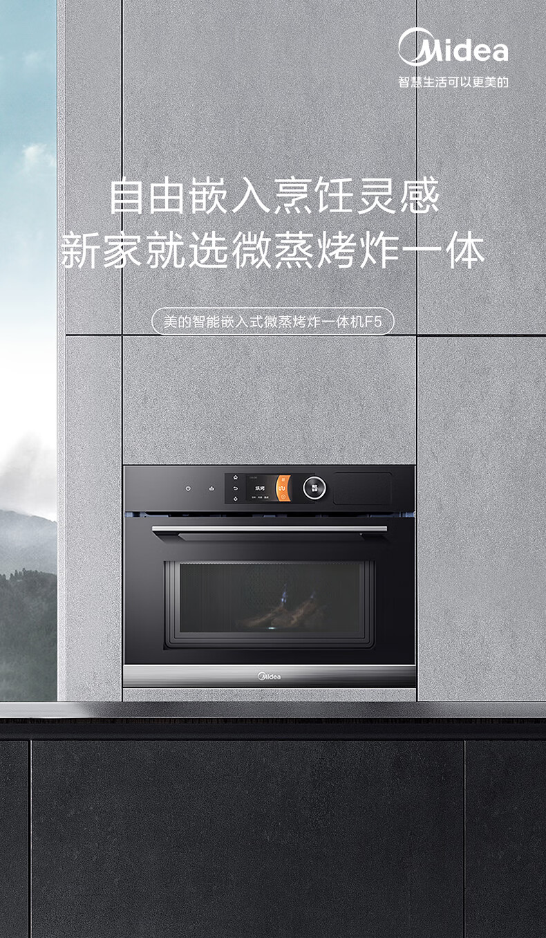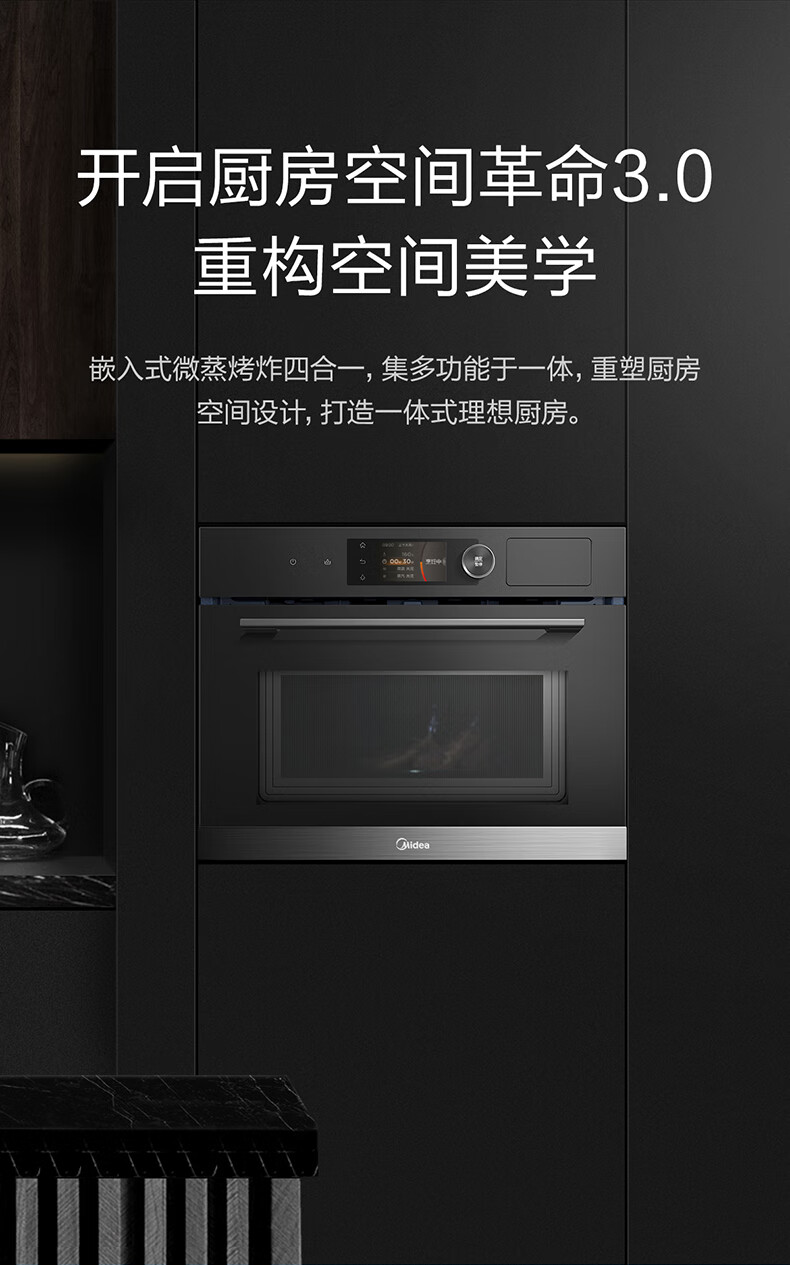 美的(Midea)嵌入式微蒸烤炸一体机 智能家电TFT彩屏搪瓷内胆F5 微蒸烤炸四合一F5