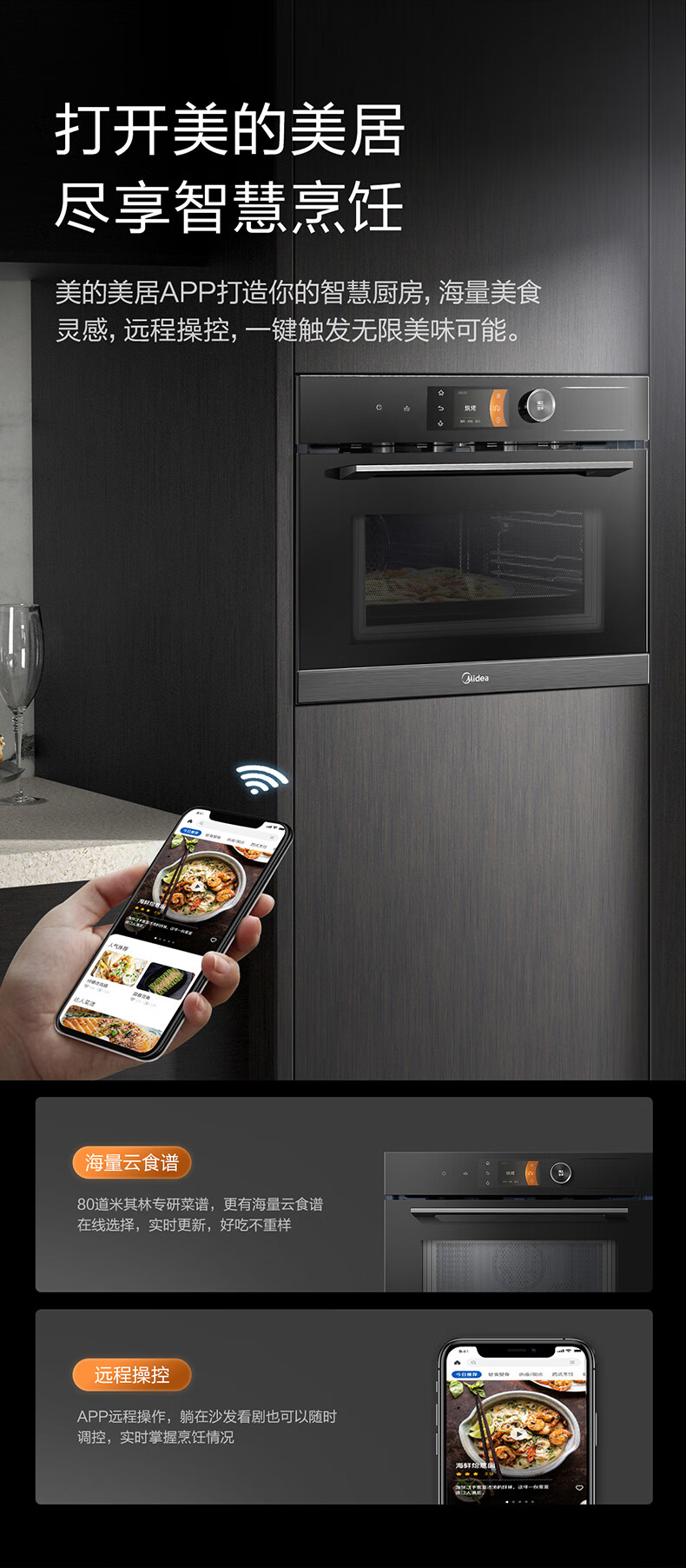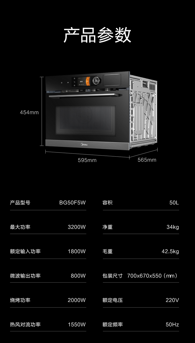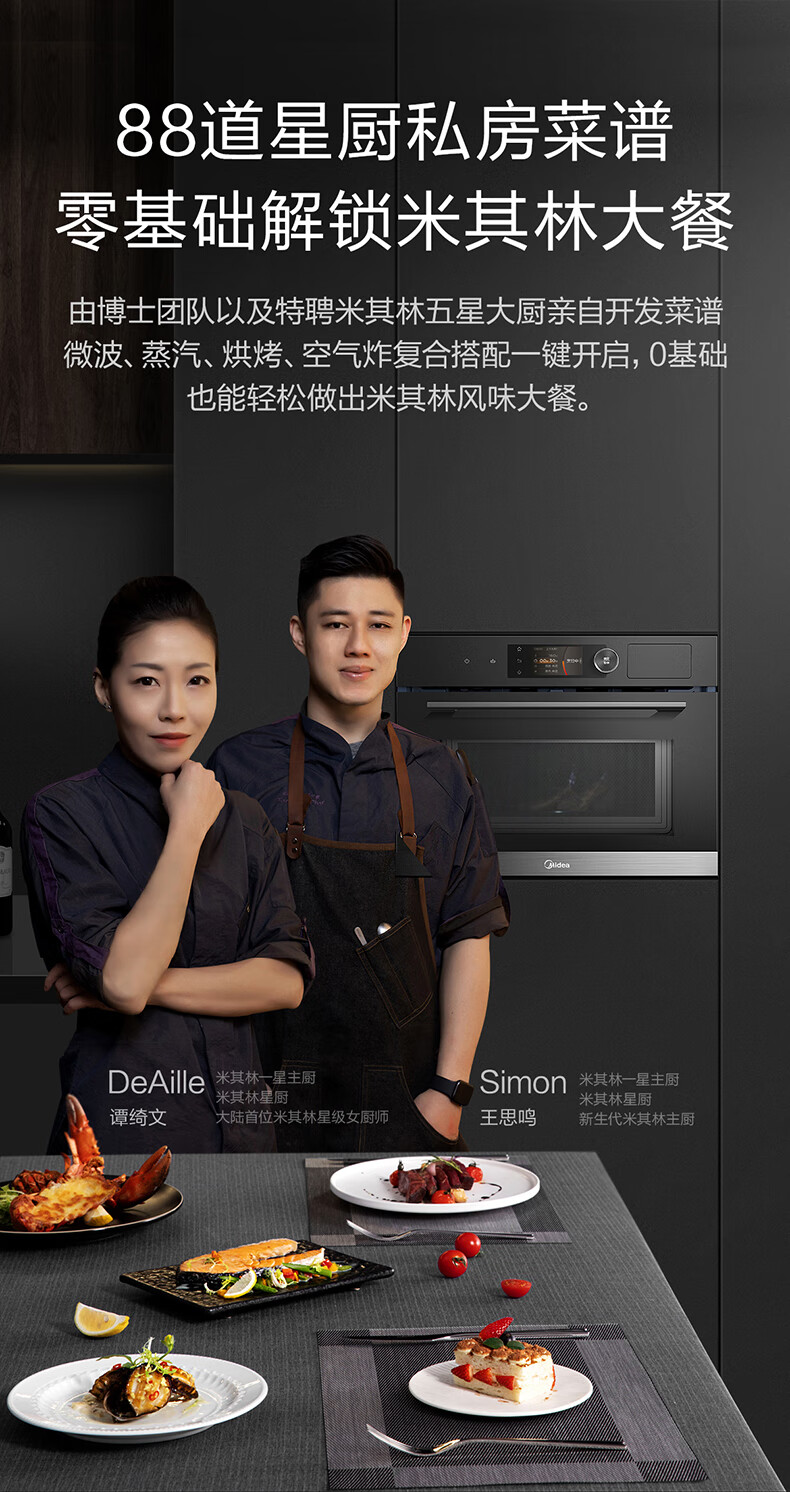 美的(Midea)嵌入式微蒸烤炸一体机 智能家电TFT彩屏搪瓷内胆F5 微蒸烤炸四合一F5