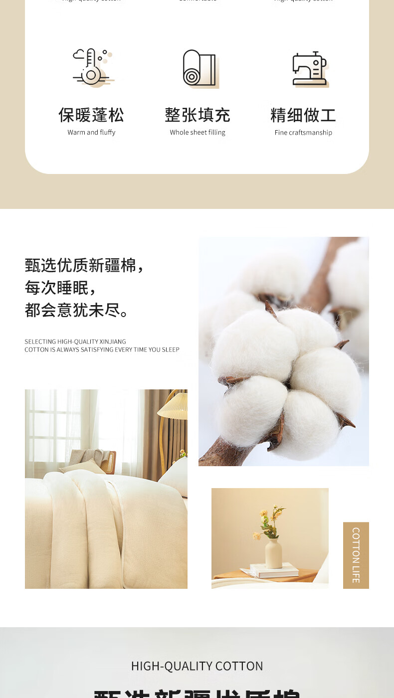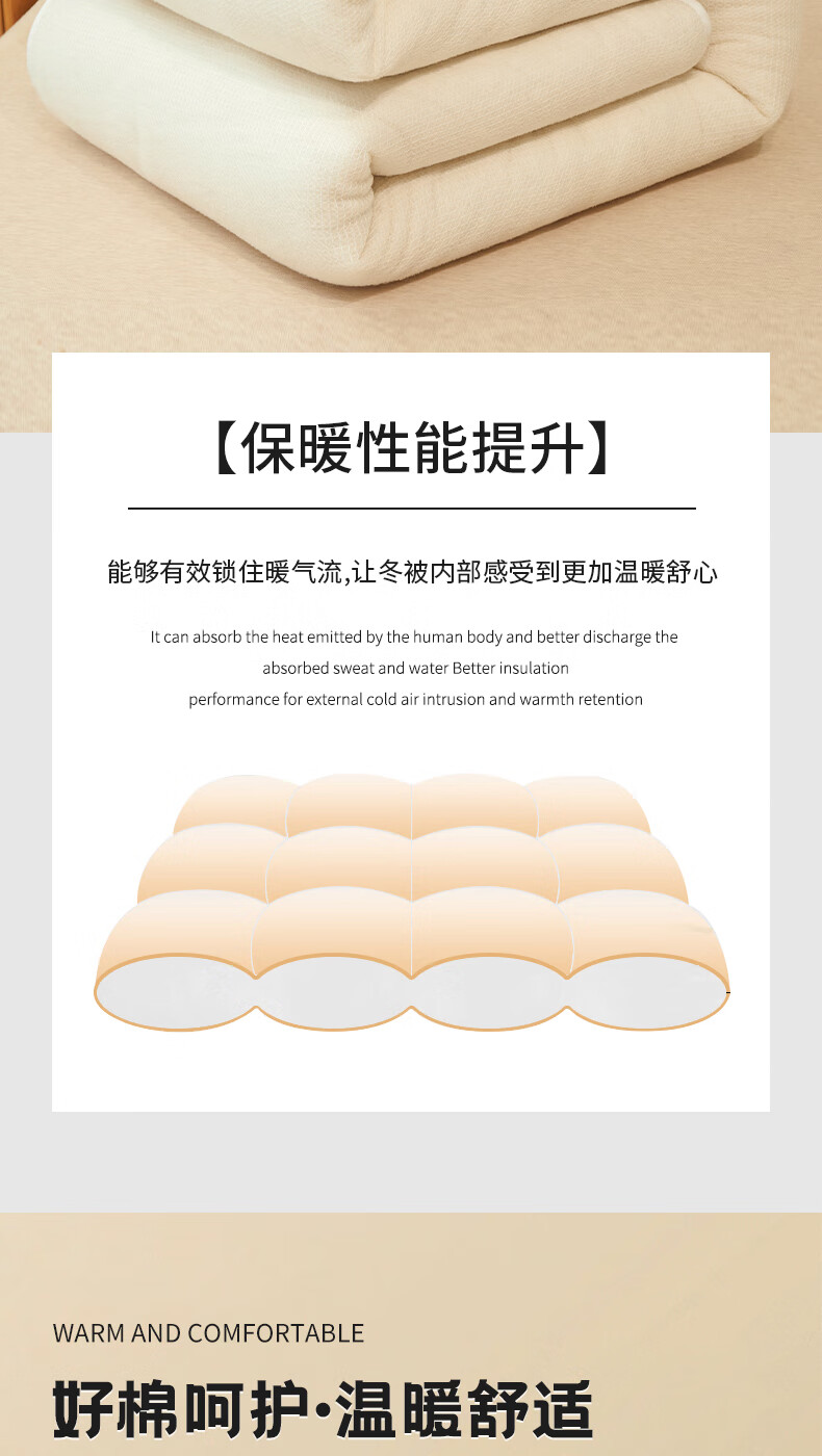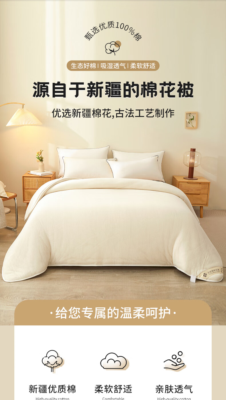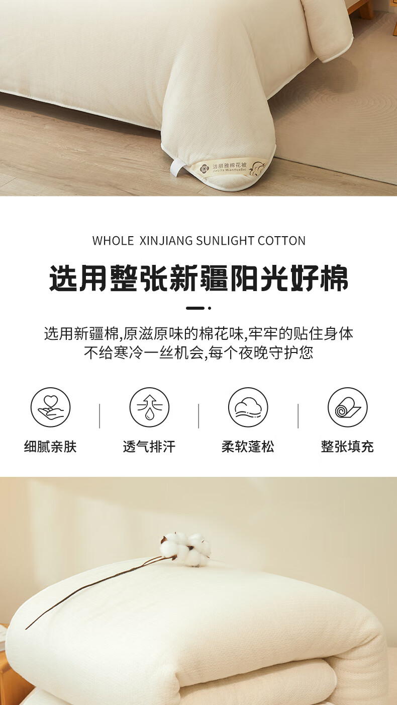 洁丽雅(Grace)100%新疆长绒棉棉花被子棉被棉花胎四季被芯被褥子150*200cm4斤