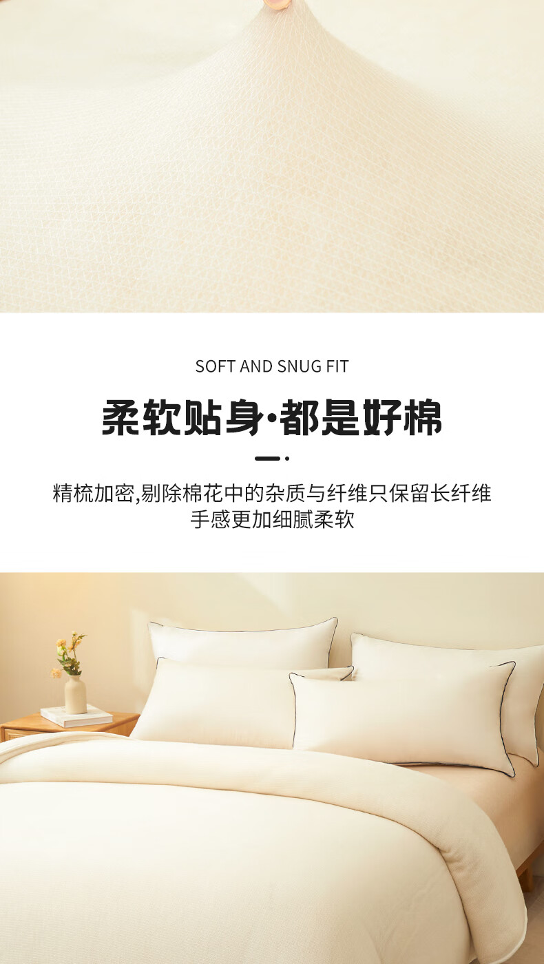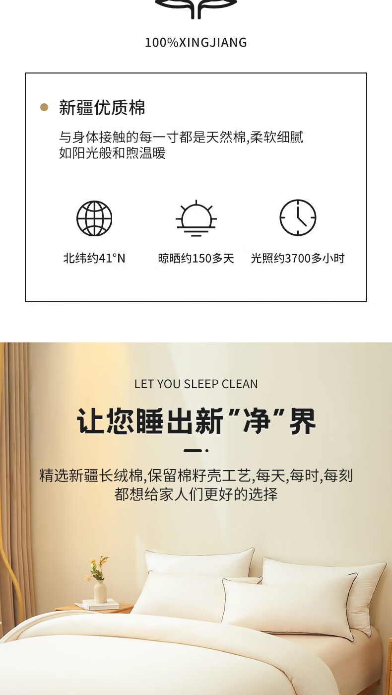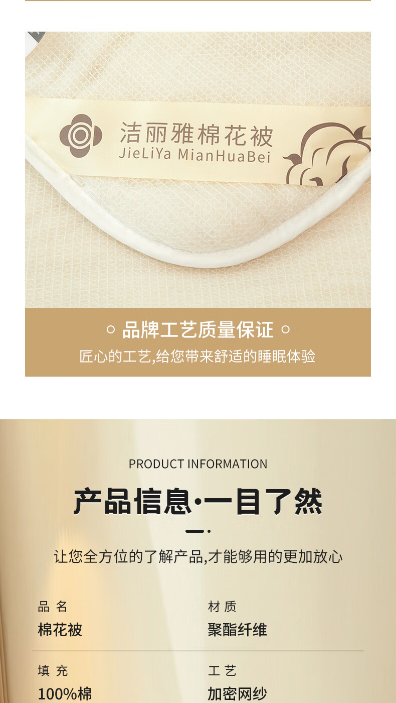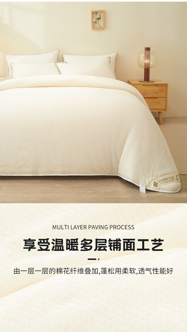 洁丽雅(Grace)100%新疆长绒棉棉花被子棉被棉花胎四季被芯被褥子150*200cm4斤