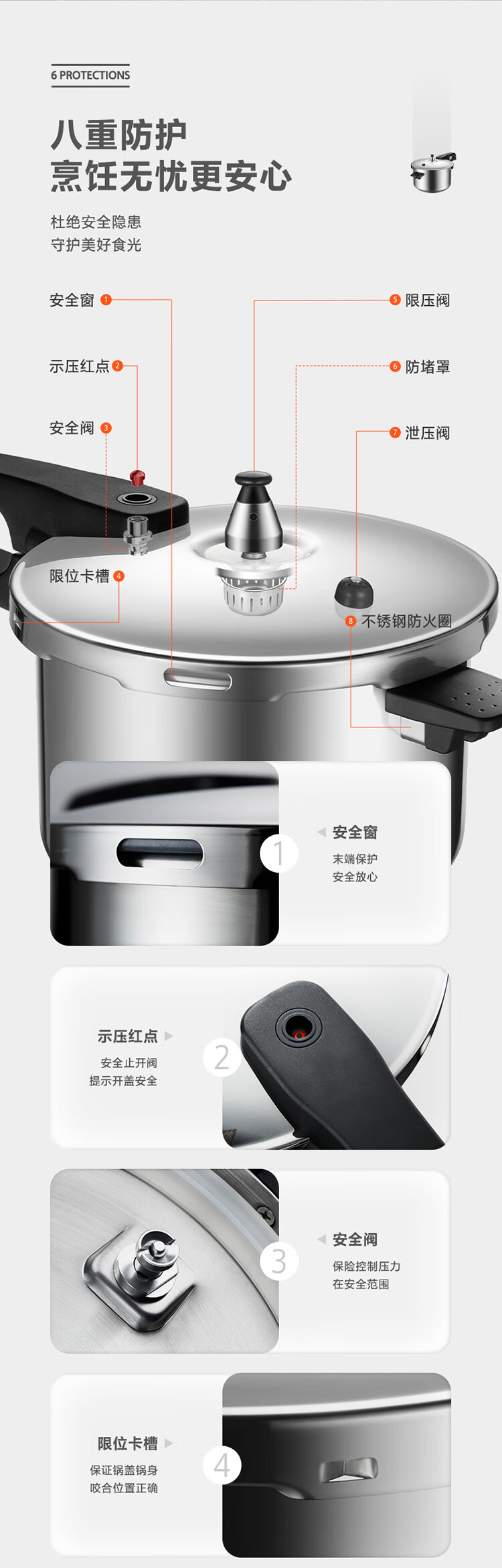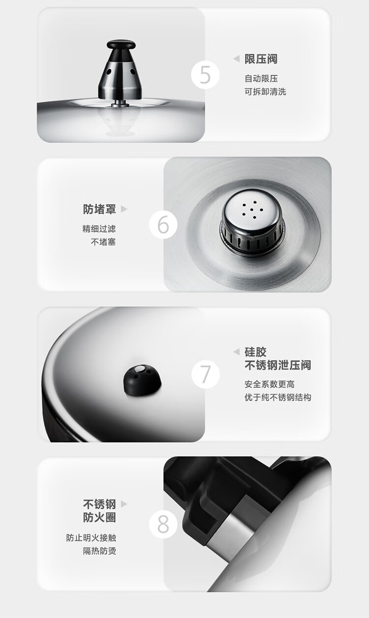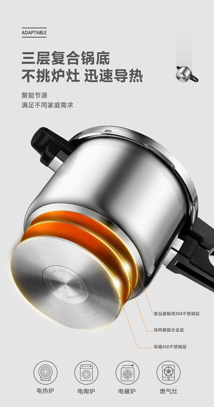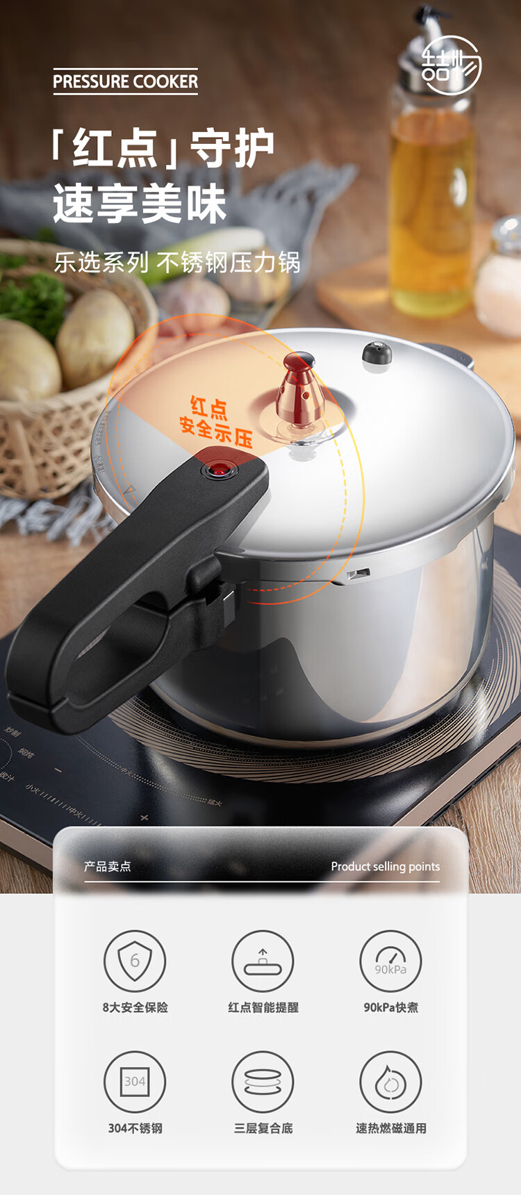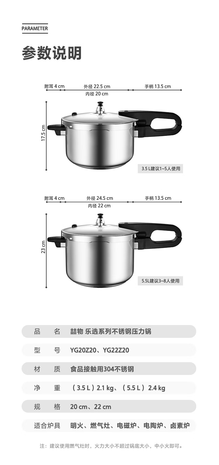 美的(Midea)高压锅燃气压力锅22CM不锈钢电磁炉明火通用YG22Z20S