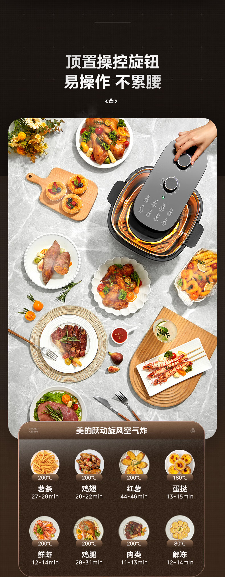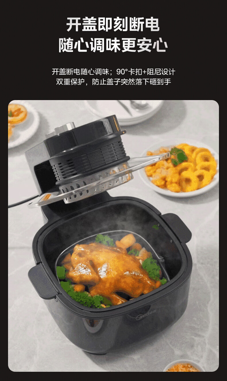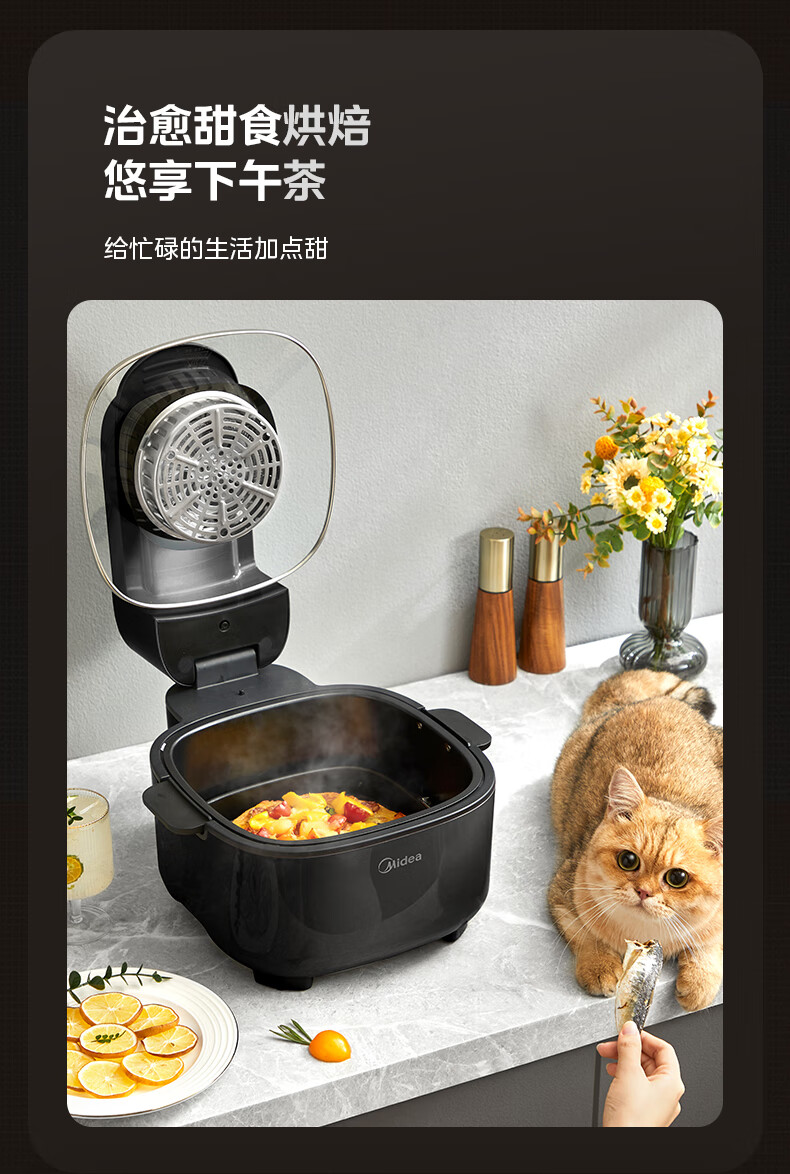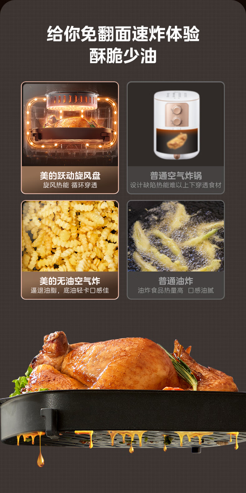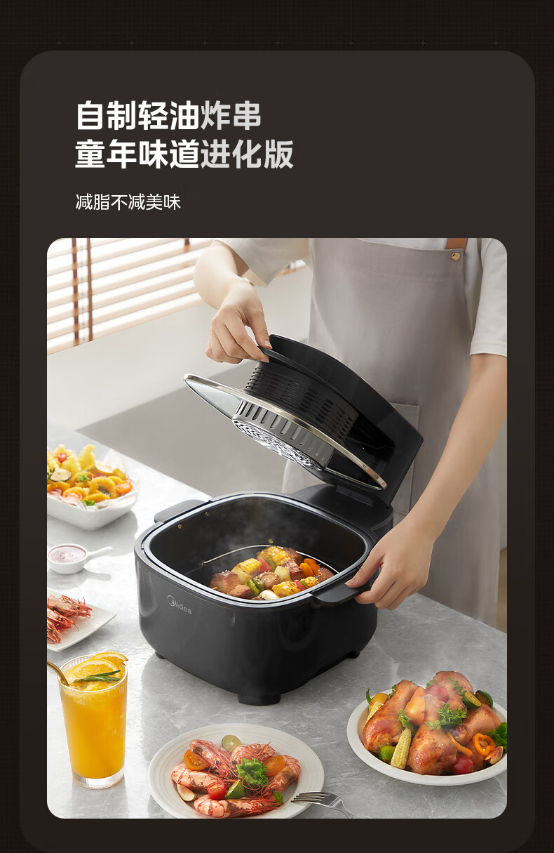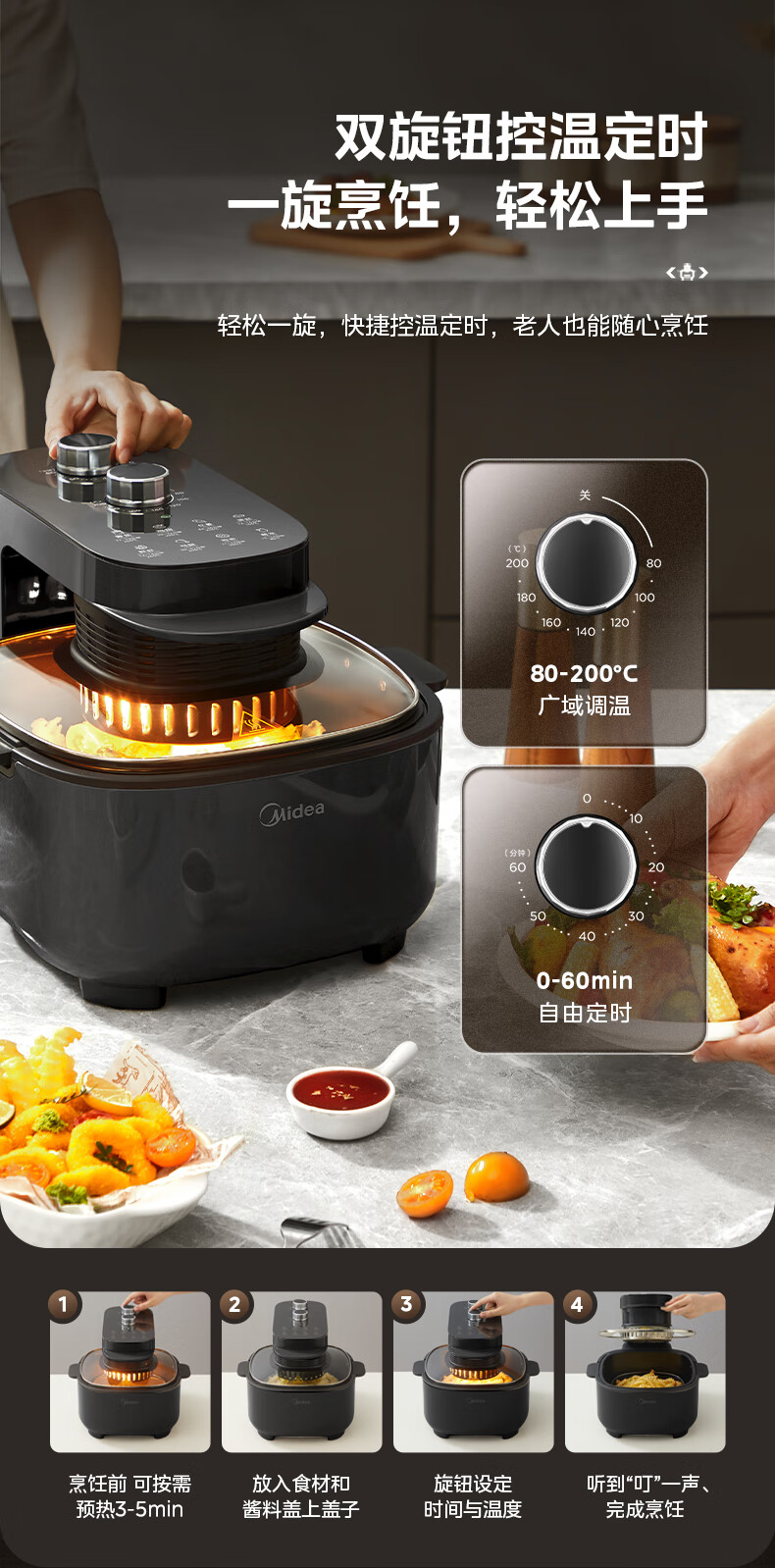 美的(Midea)不用翻面 空气炸锅 可视窗口 不沾易清洗 准确定时 轻脂 低油煎炸 5.5L大容量 MF-KZE5502B