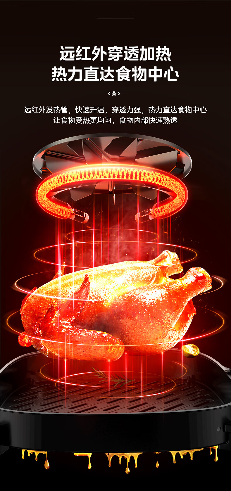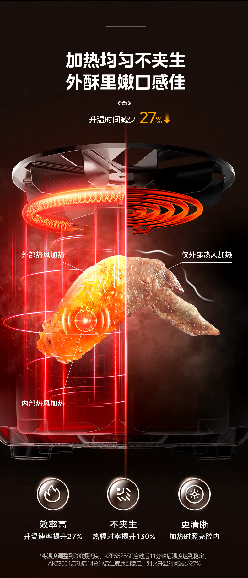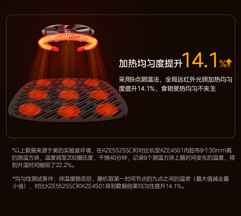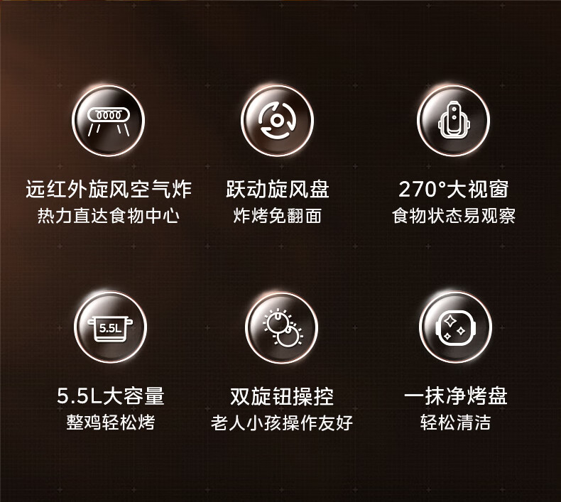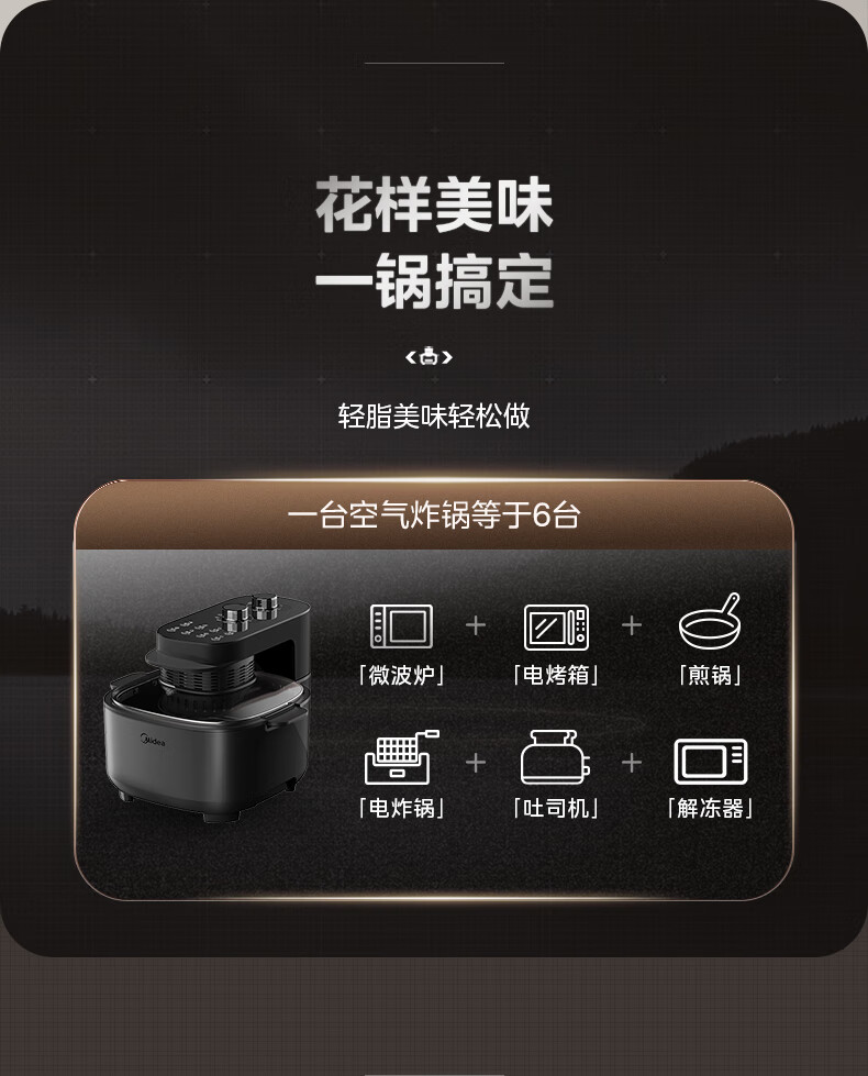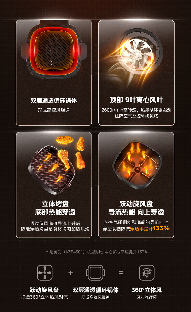 美的(Midea)不用翻面 空气炸锅 可视窗口 不沾易清洗 准确定时 轻脂 低油煎炸 5.5L大容量 MF-KZE5502B