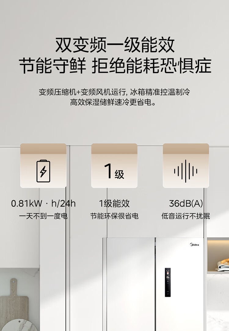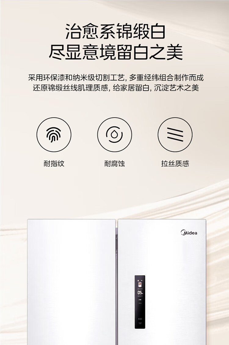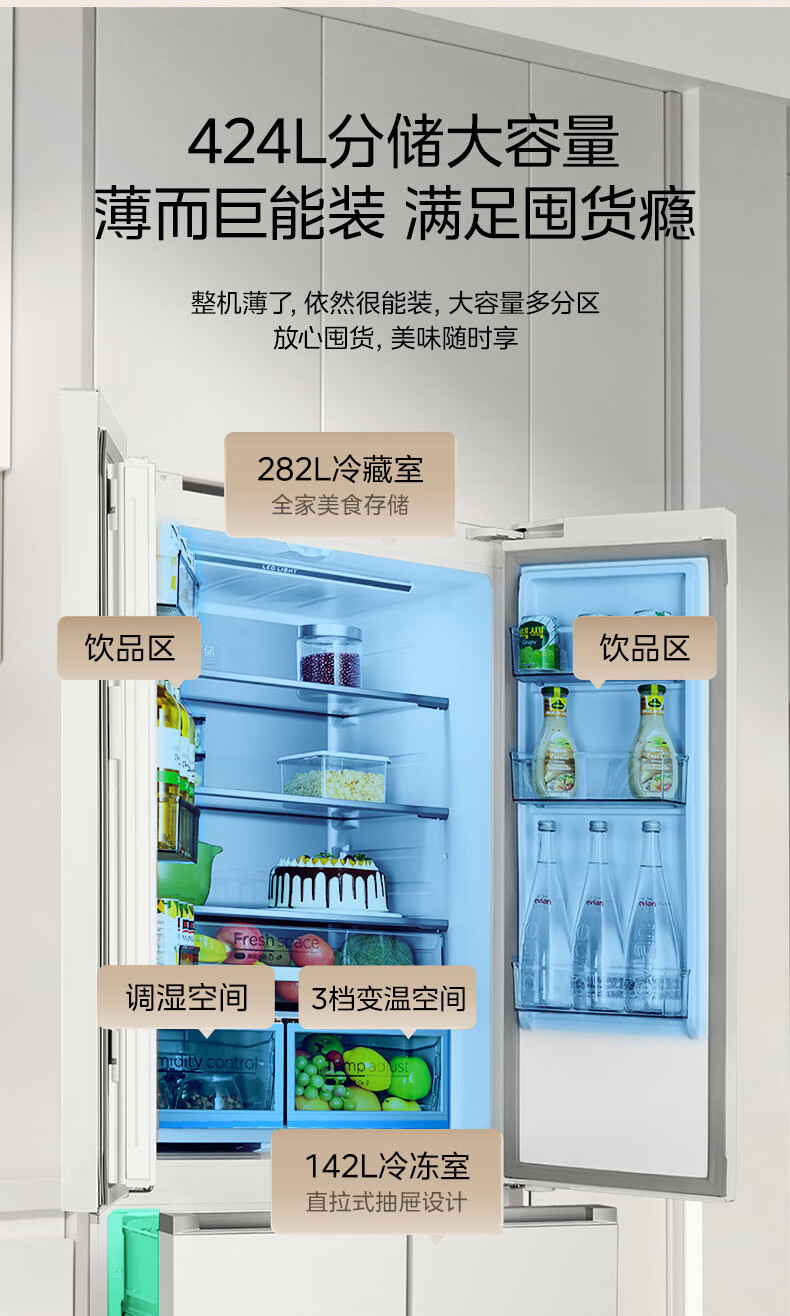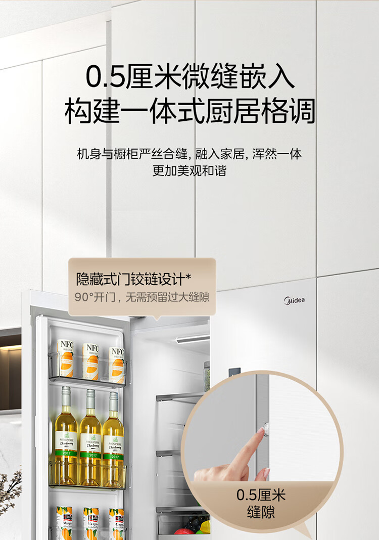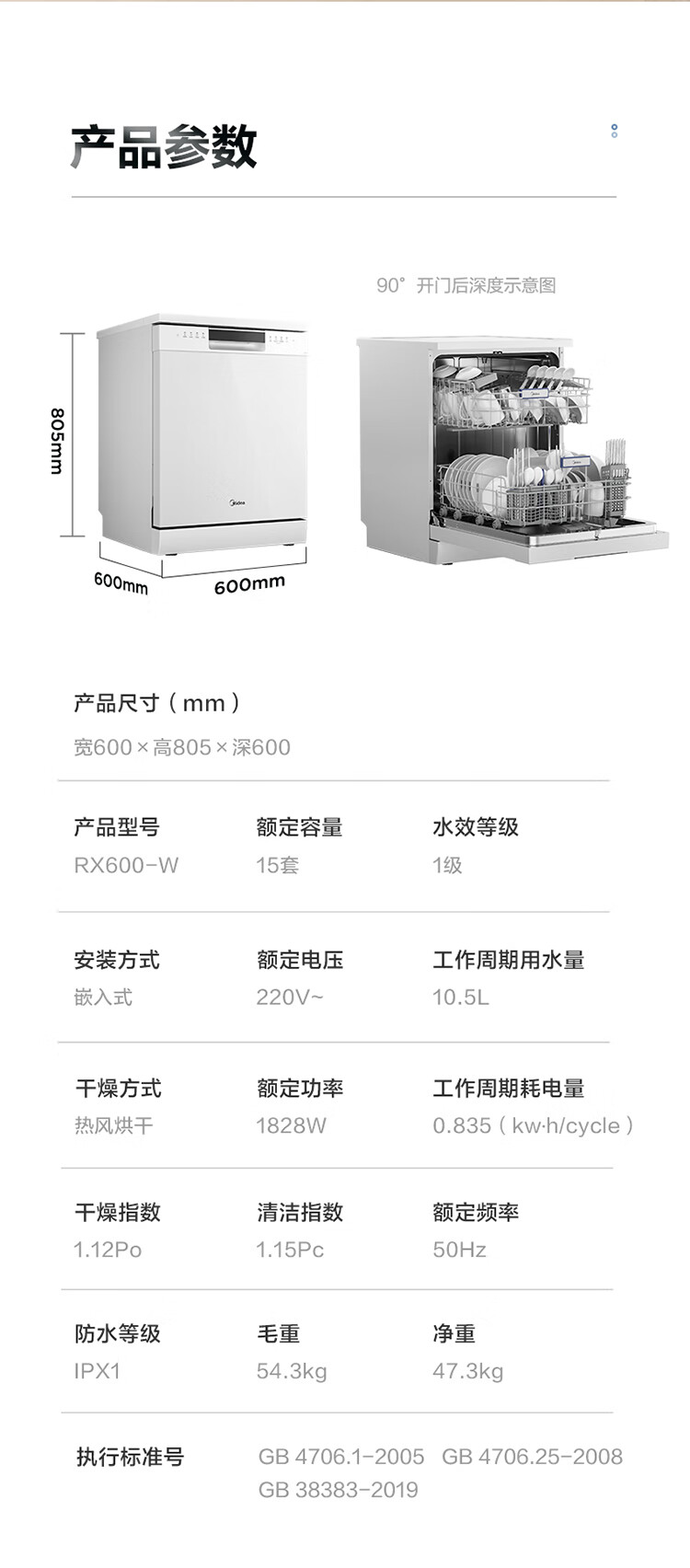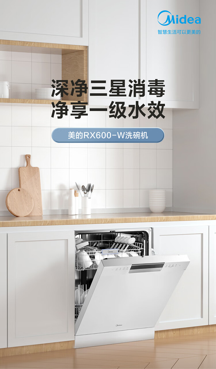 美的(Midea)厨房白色嵌入式套装 60厘米薄系列424升法式多门冰箱BCD-424WFPZM(E)+15套热风烘干洗碗机RX600-W