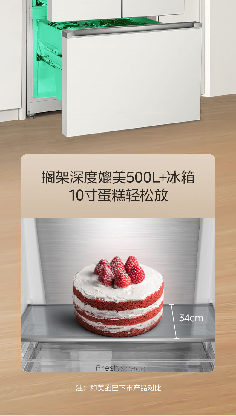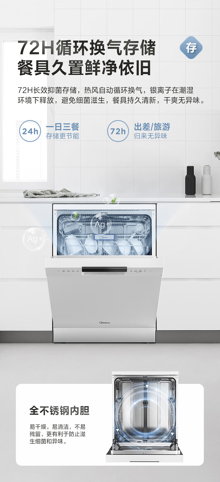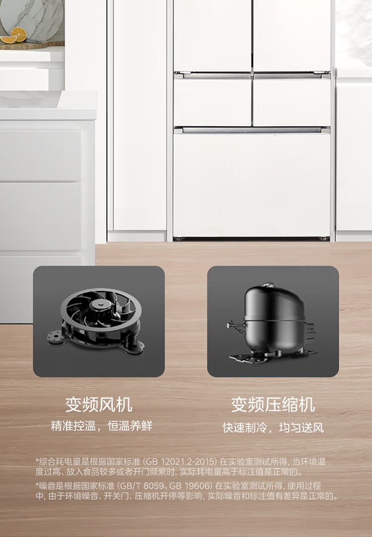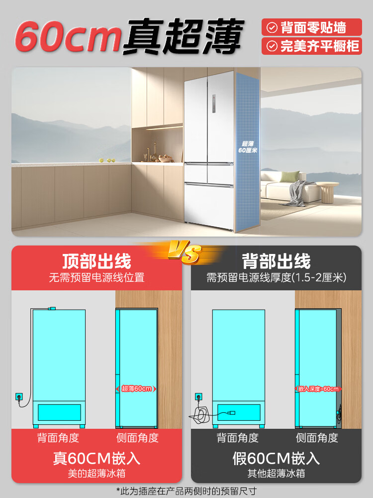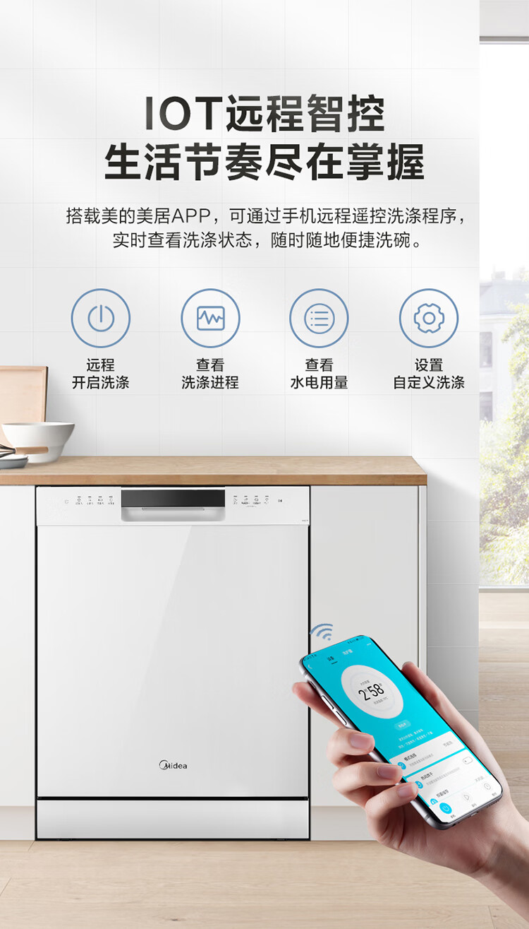 美的(Midea)厨房白色嵌入式套装 60厘米薄系列424升法式多门冰箱BCD-424WFPZM(E)+15套热风烘干洗碗机RX600-W