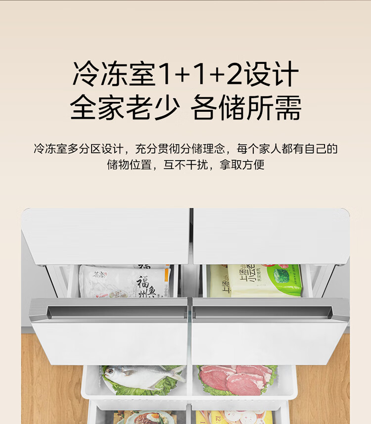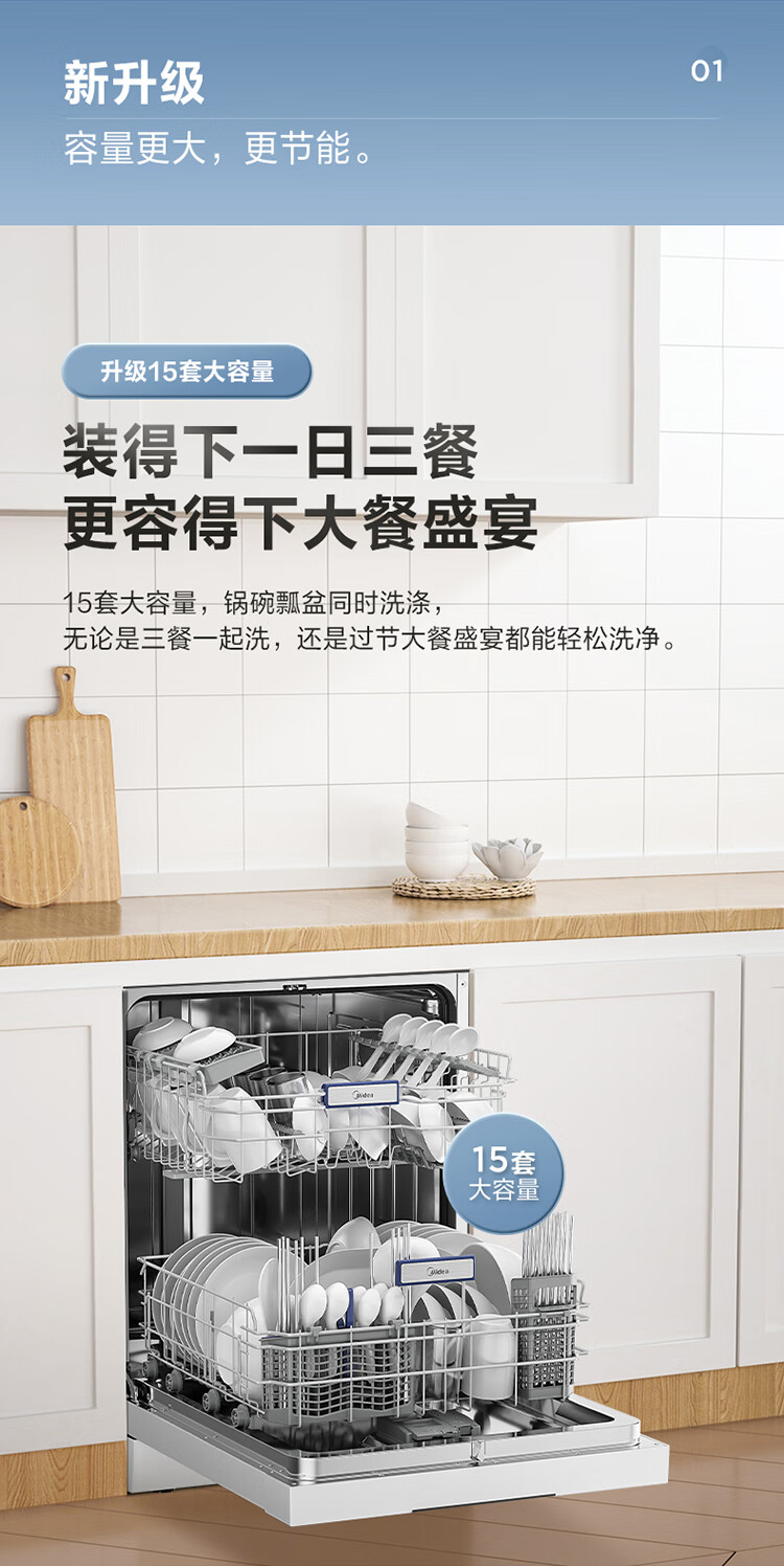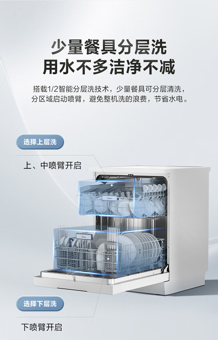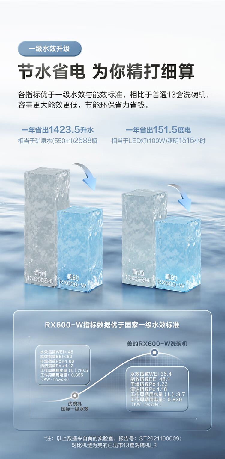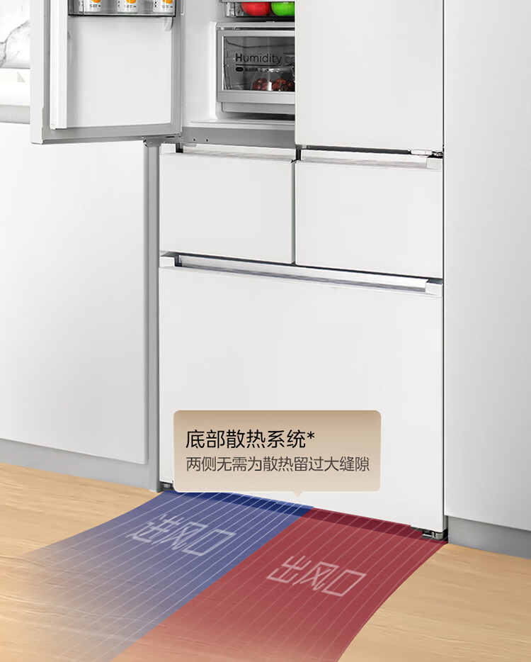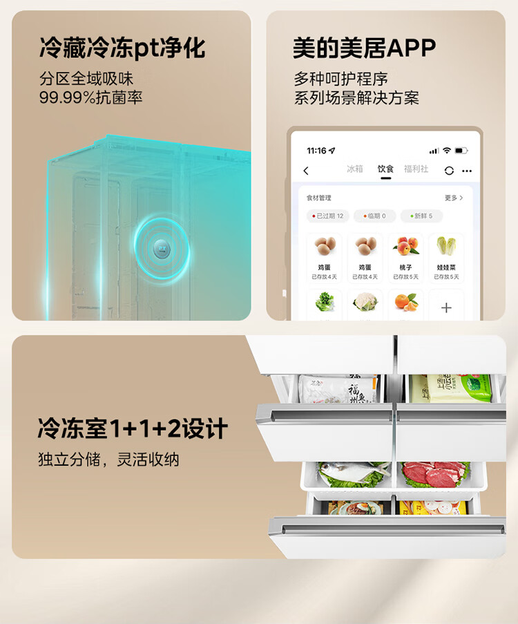 美的(Midea)厨房白色嵌入式套装 60厘米薄系列424升法式多门冰箱BCD-424WFPZM(E)+15套热风烘干洗碗机RX600-W