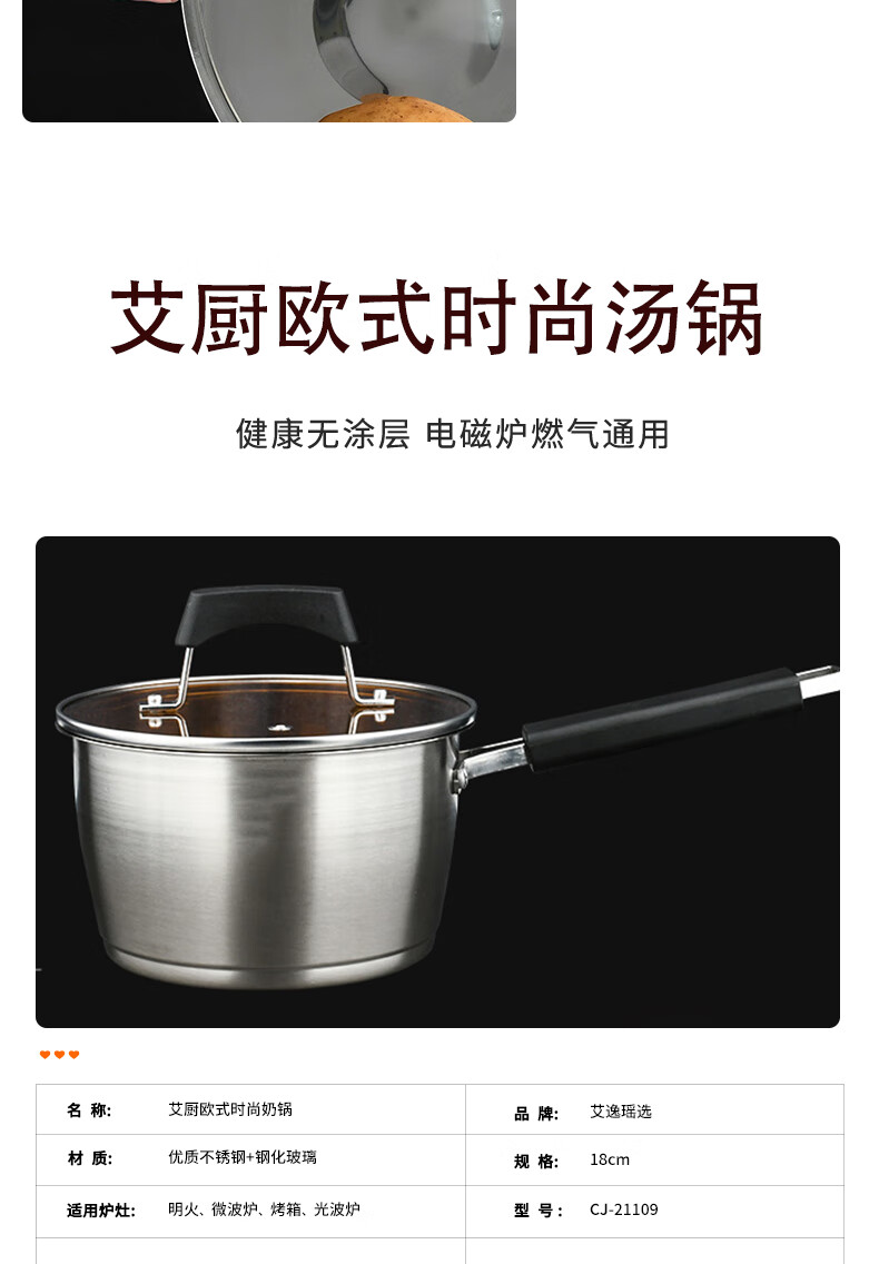 艾逸瑶选 艾厨欧式时尚奶锅18...