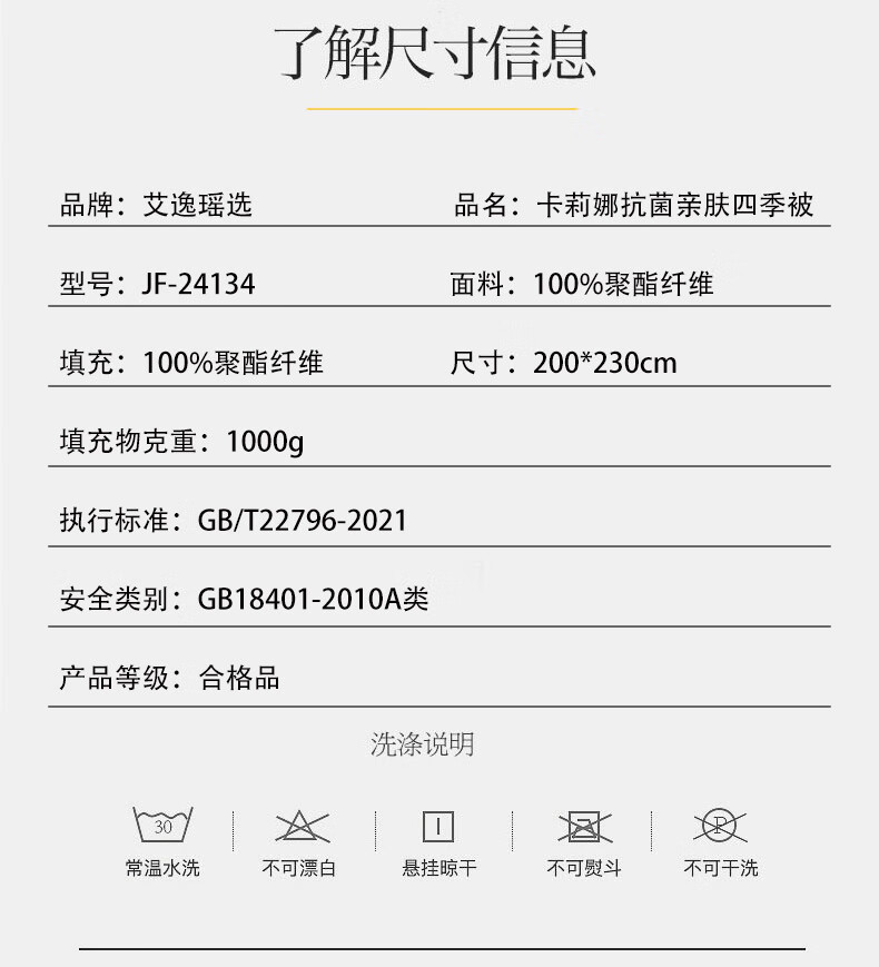 艾逸瑶选 卡莉娜抗菌亲肤四季被JF-24134
