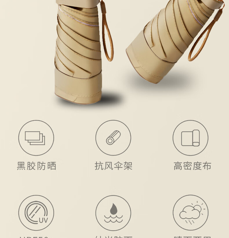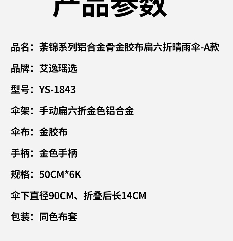艾逸瑶选 荼锦系列铝合金骨金胶布扁六折晴雨伞-A款 YS-1843