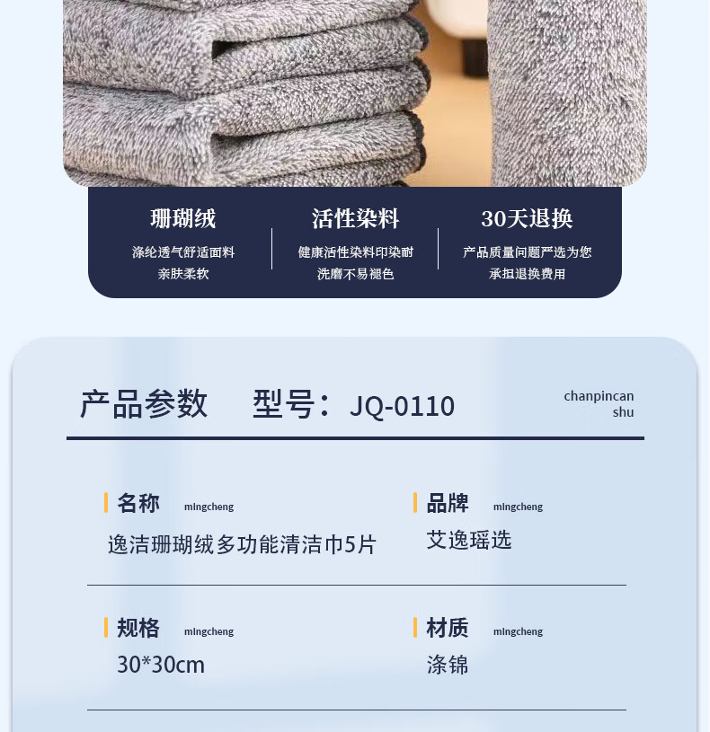 艾逸瑶选 逸洁珊瑚绒多功能清洁巾5片装 JQ-0110