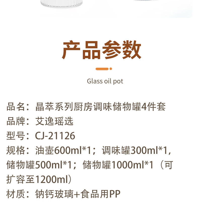 艾逸瑶选 晶萃系列厨房调味储物罐4件套CJ-21126