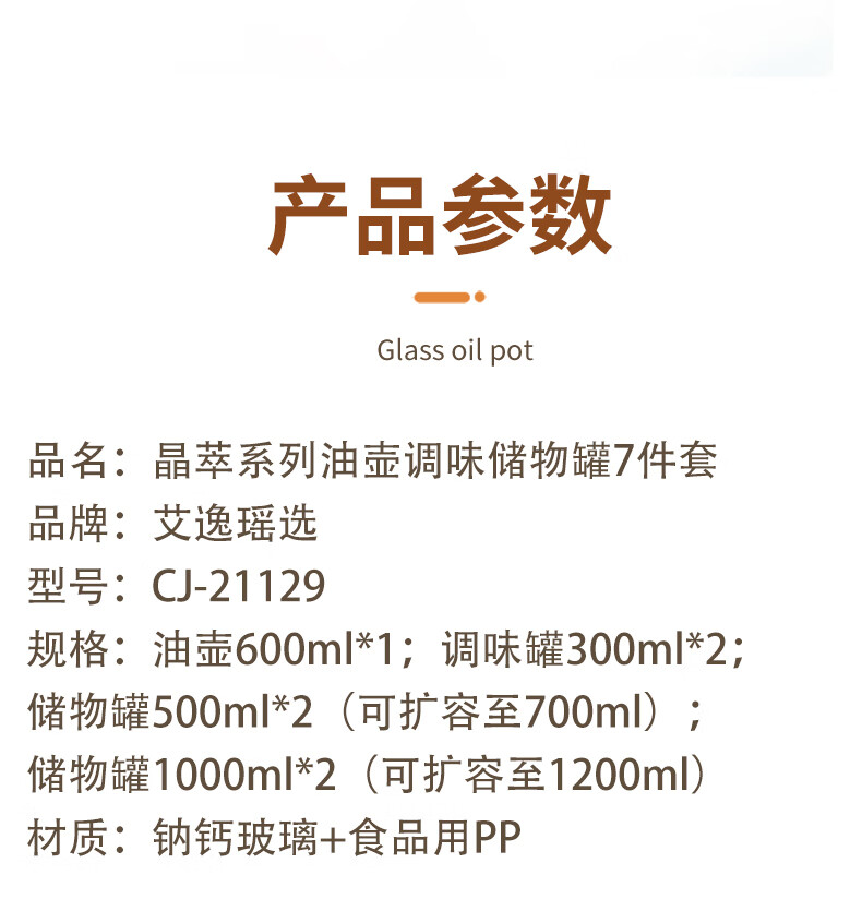艾逸瑶选 晶萃系列油壶调味储物罐7件套CJ-21129
