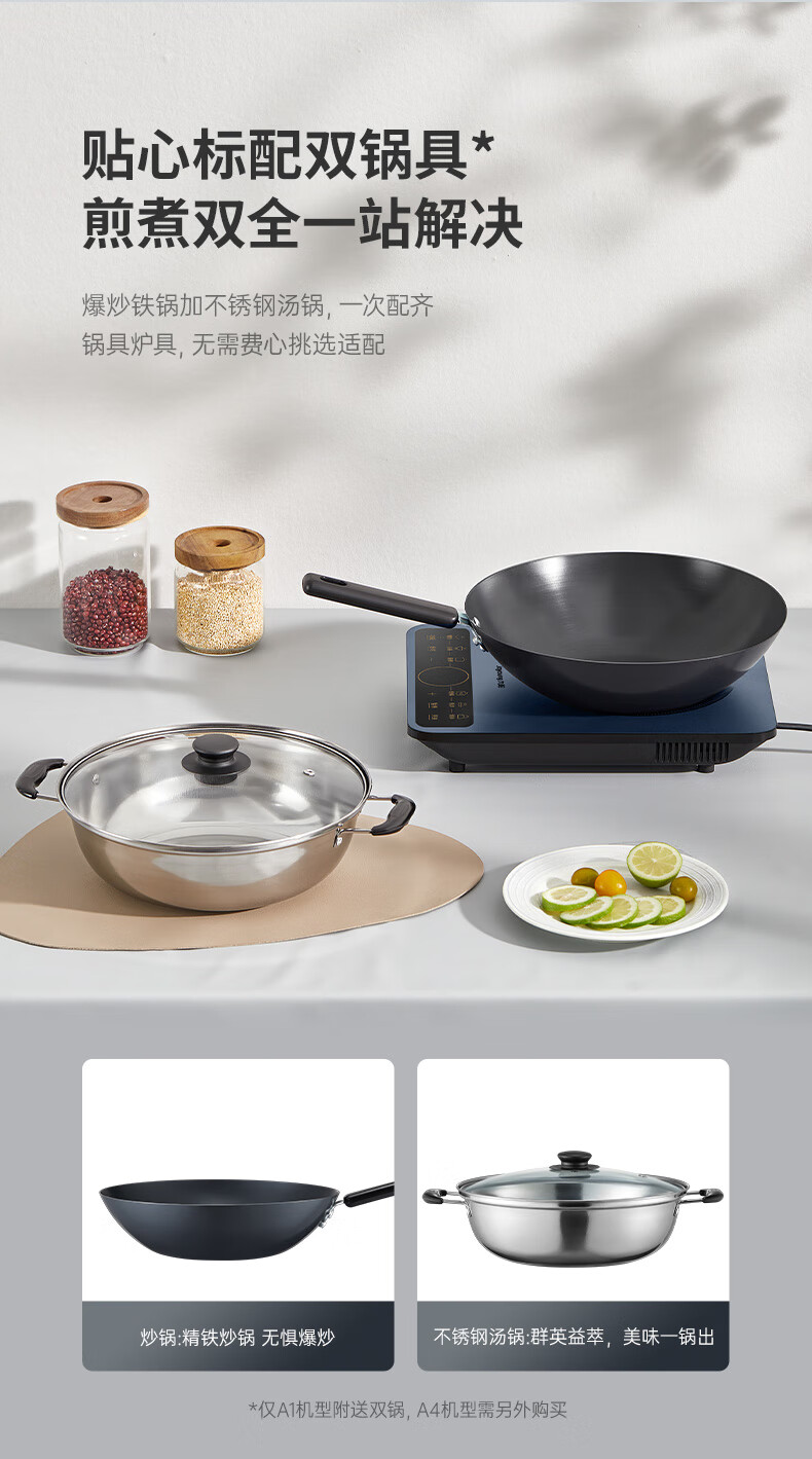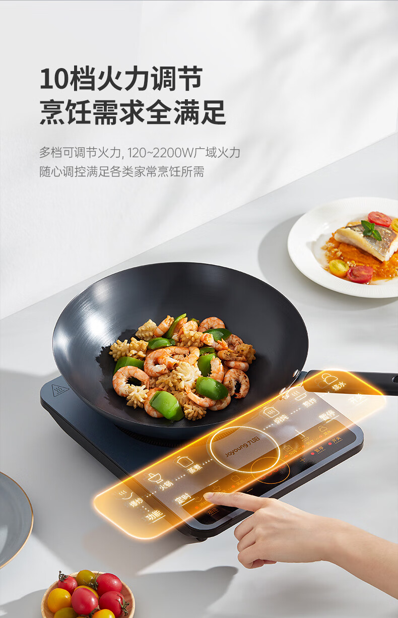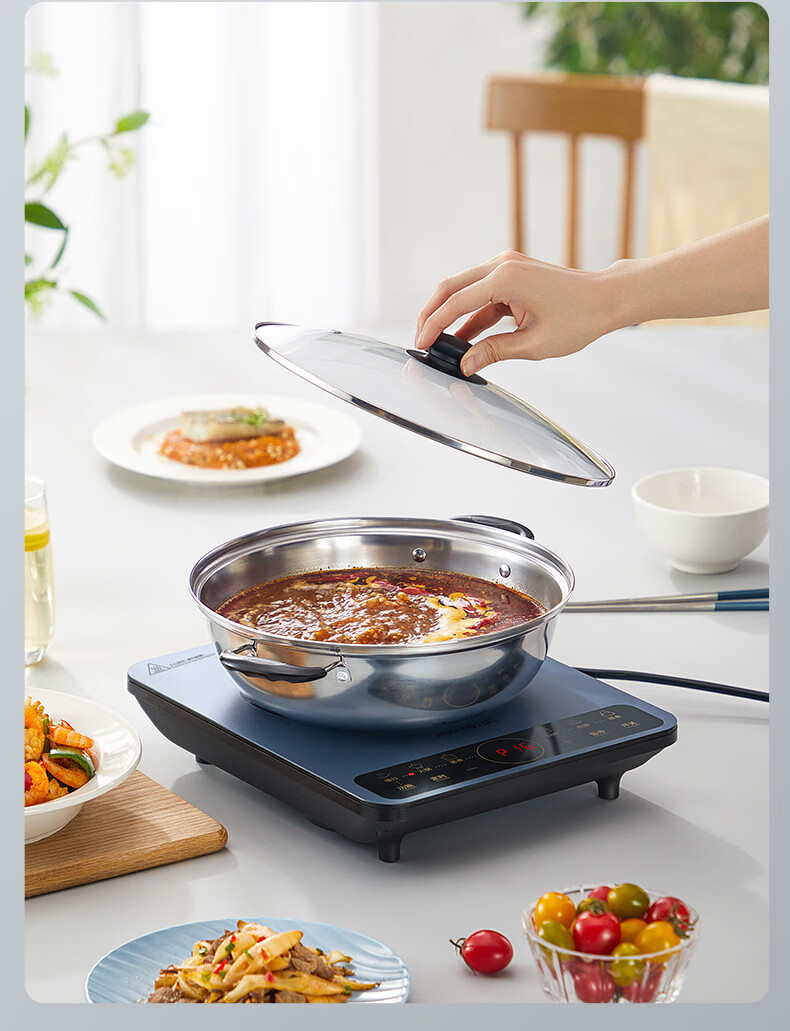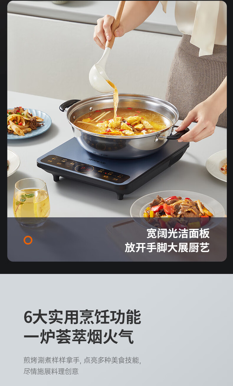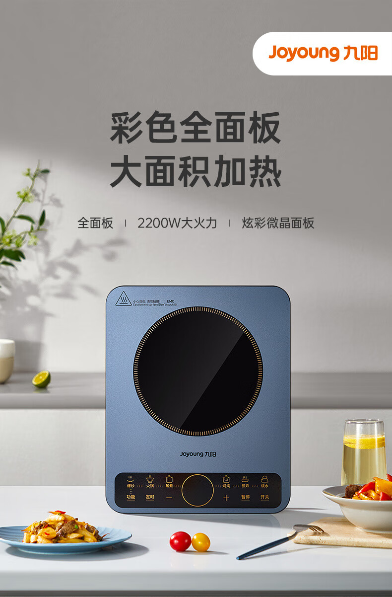 九阳(Joyoung)电磁炉套装电磁灶电池炉2200W家用带锅一键爆炒定时功能火锅蒸煮烧水C22S-N410-A1配汤锅炒锅
