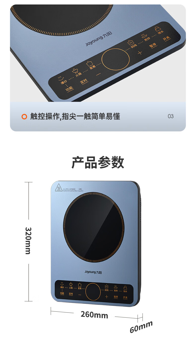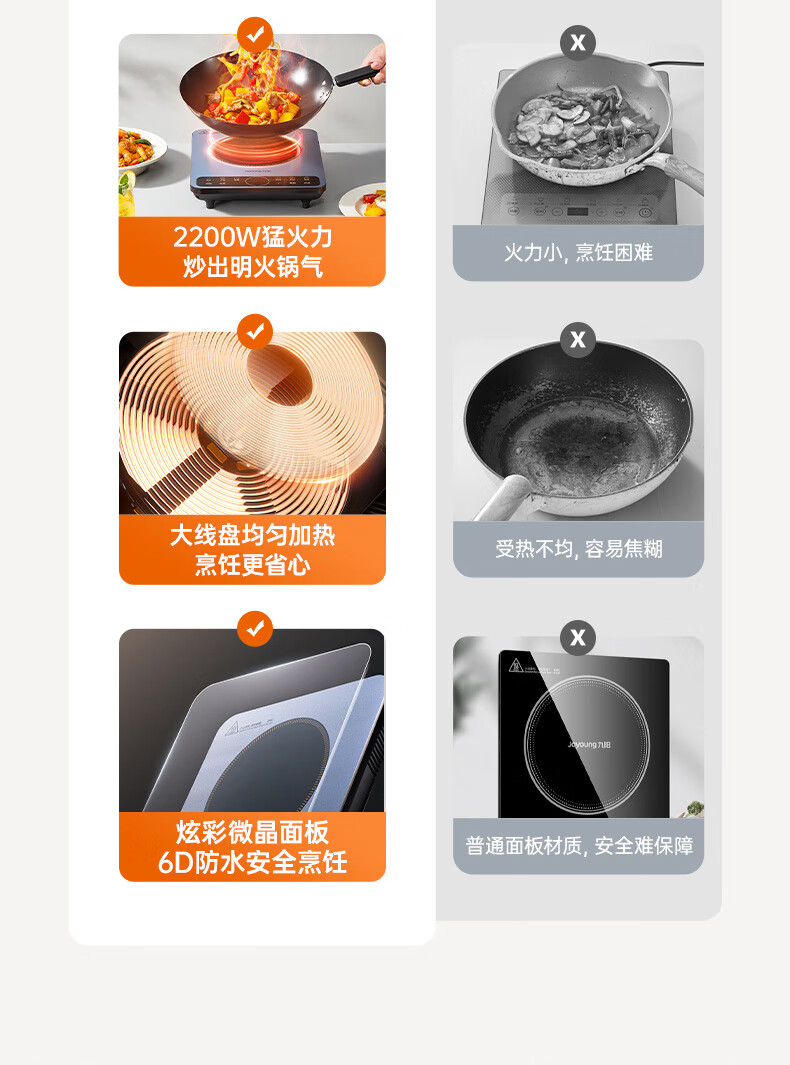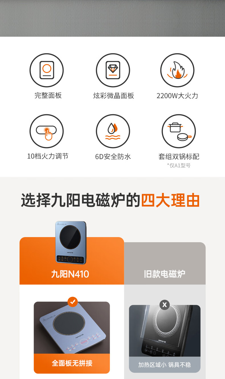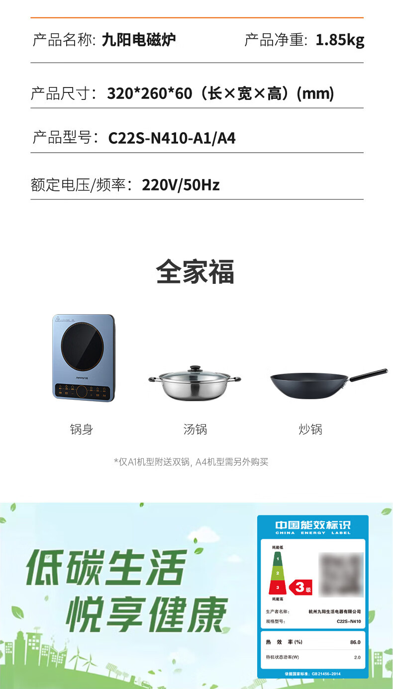 九阳(Joyoung)电磁炉套装电磁灶电池炉2200W家用带锅一键爆炒定时功能火锅蒸煮烧水C22S-N410-A1配汤锅炒锅