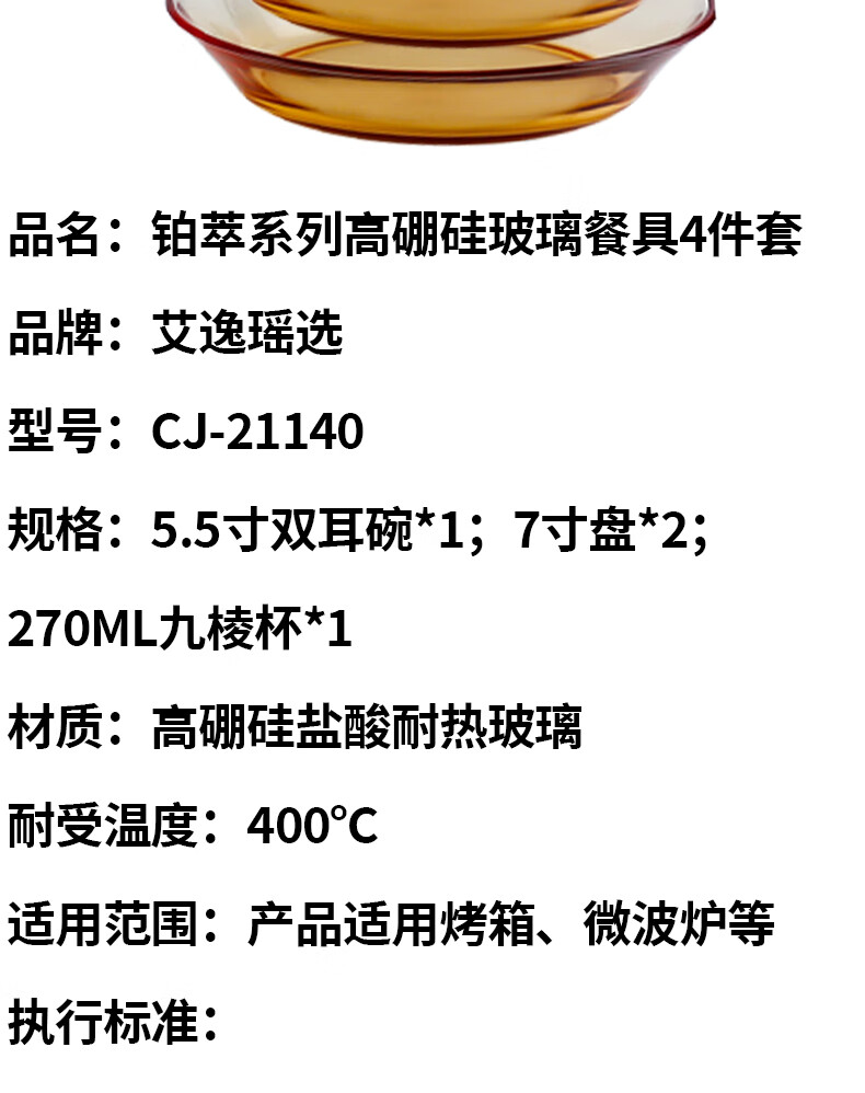 艾逸瑶选 铂萃系列高硼硅玻璃餐具4件套CJ-21140