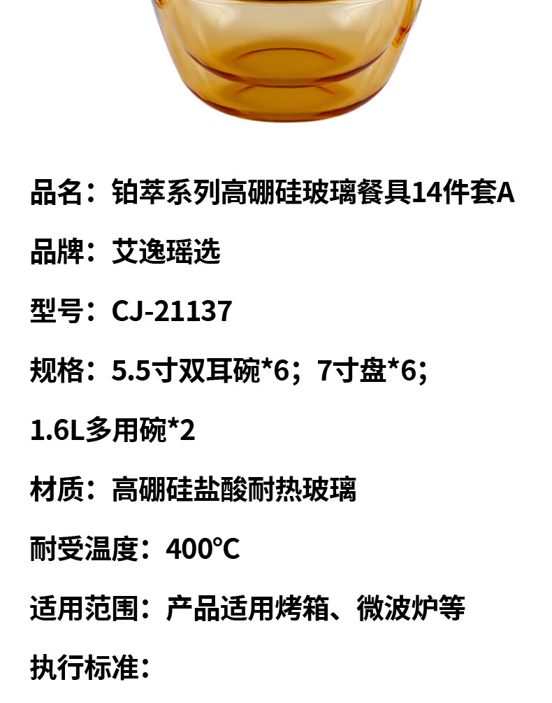艾逸瑶选铂萃系列高硼硅玻璃餐具14件套A CJ-21137