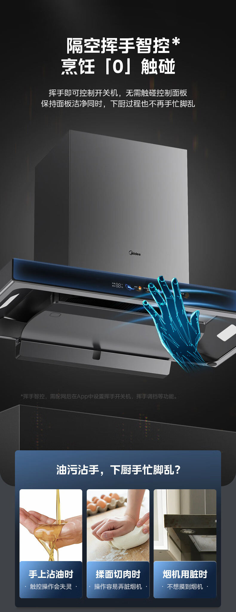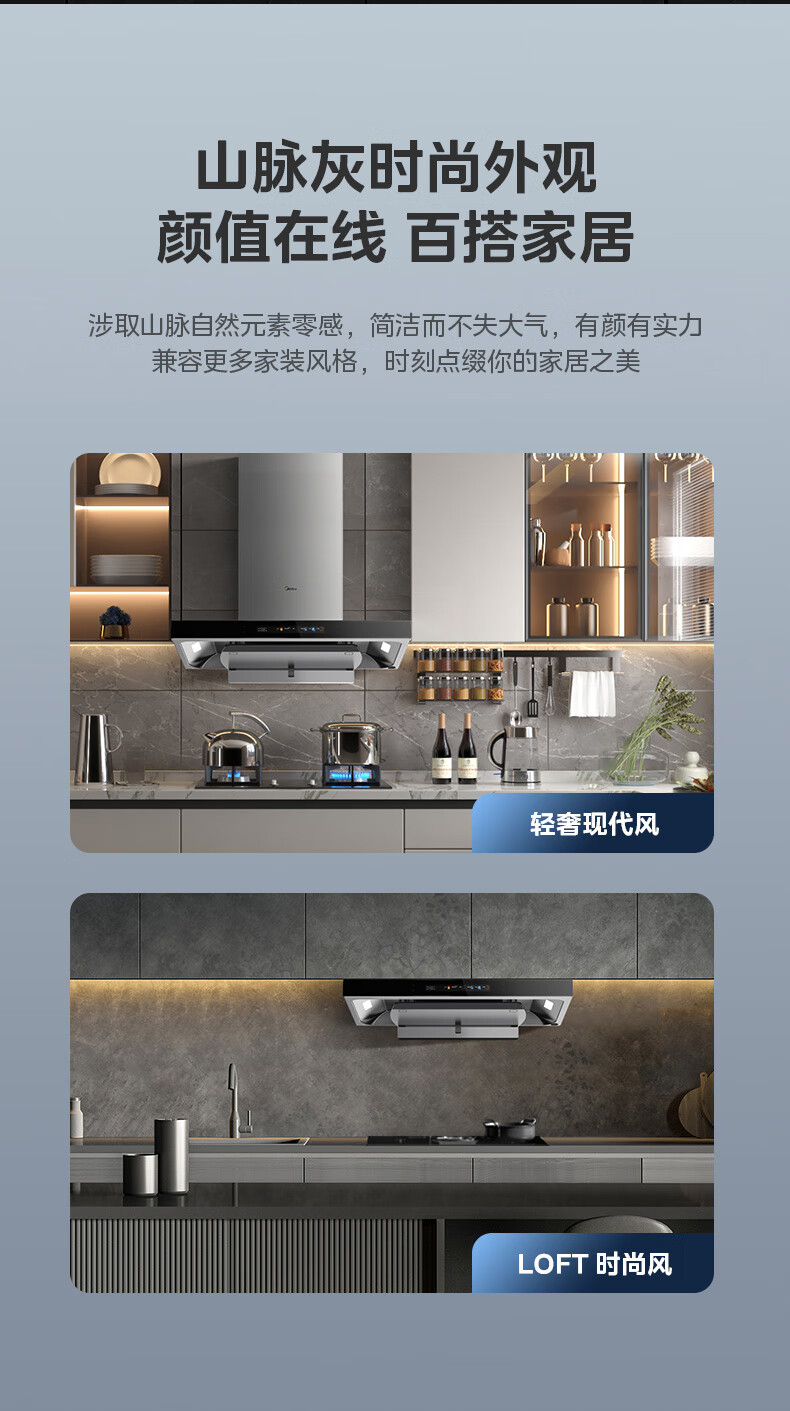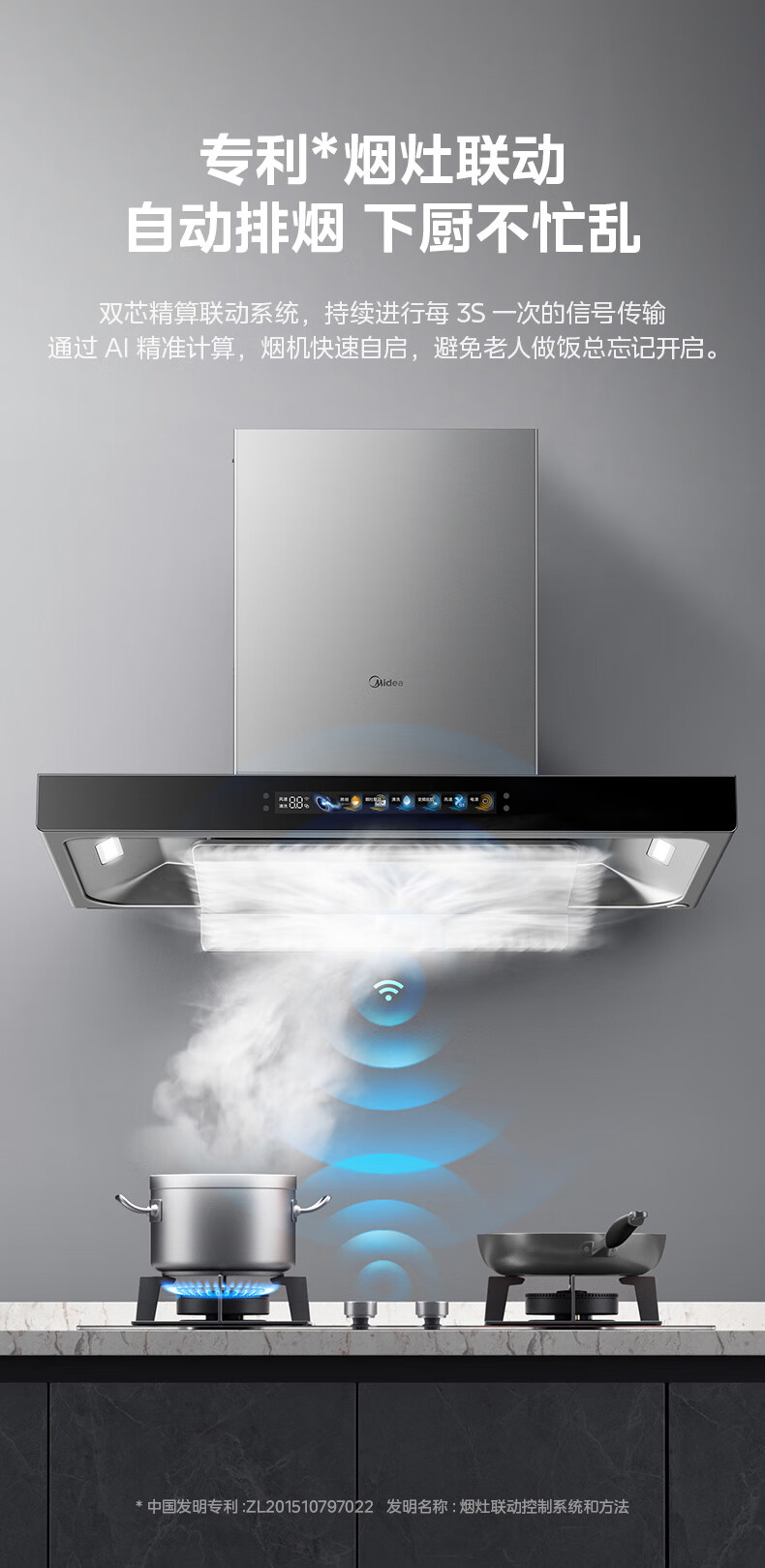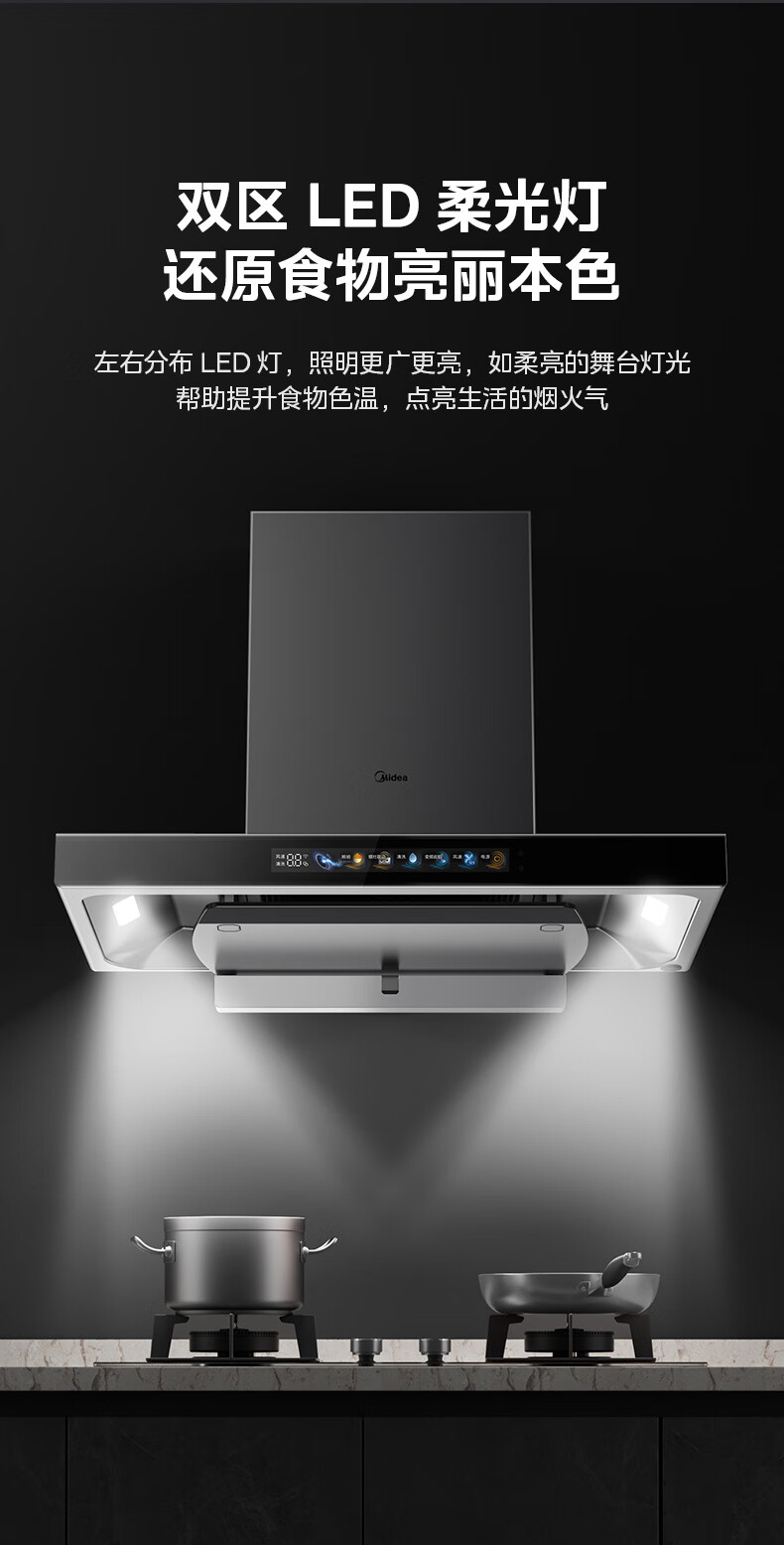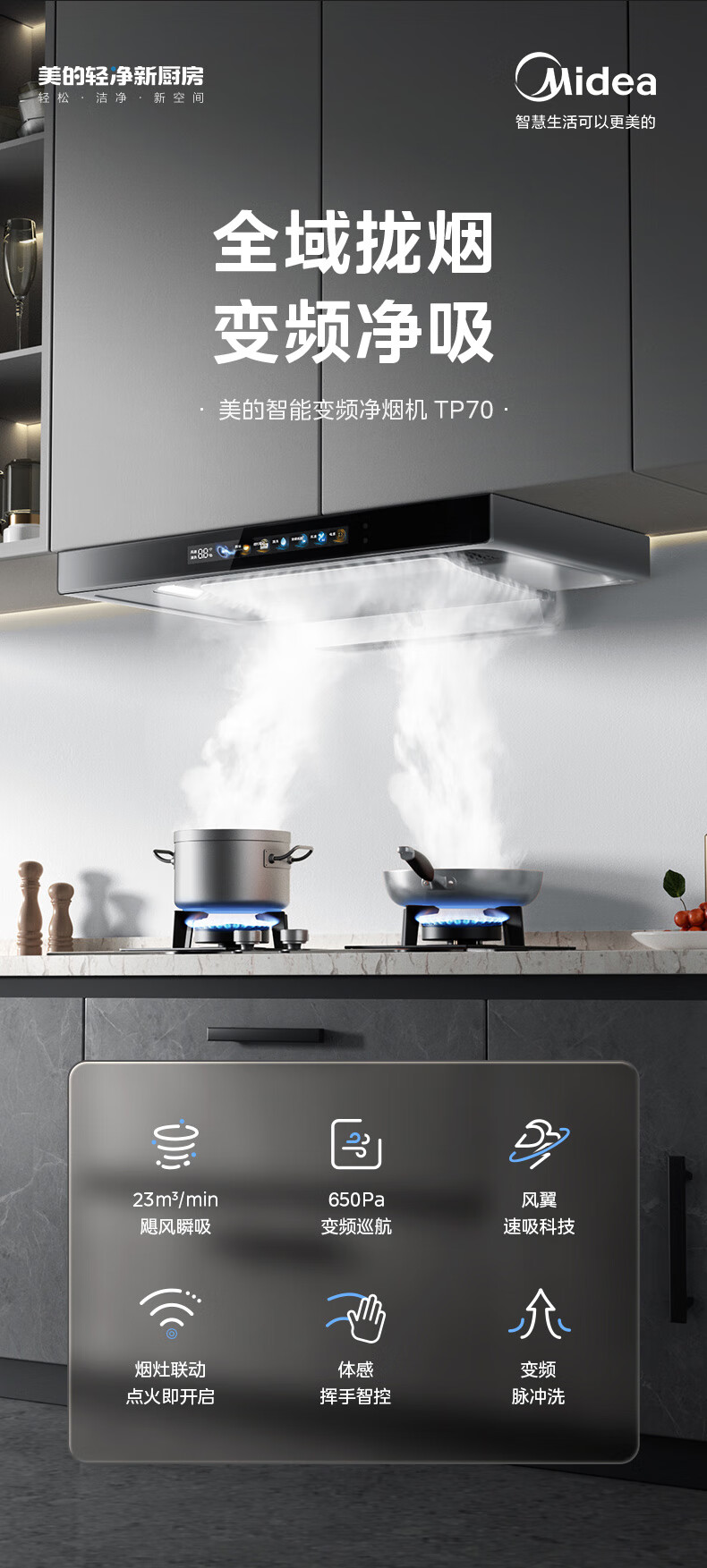 美的(Midea)抽油烟机燃气灶家用顶吸23风量超真实屏 挥手智控自清洗 变频烟灶联动TP70+Q523L天然气套装