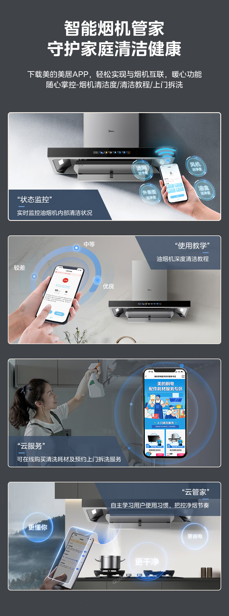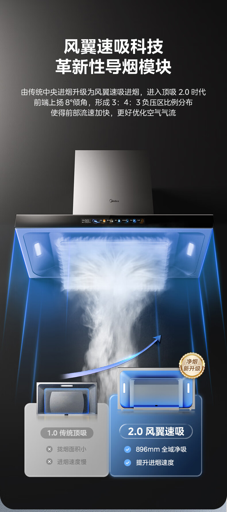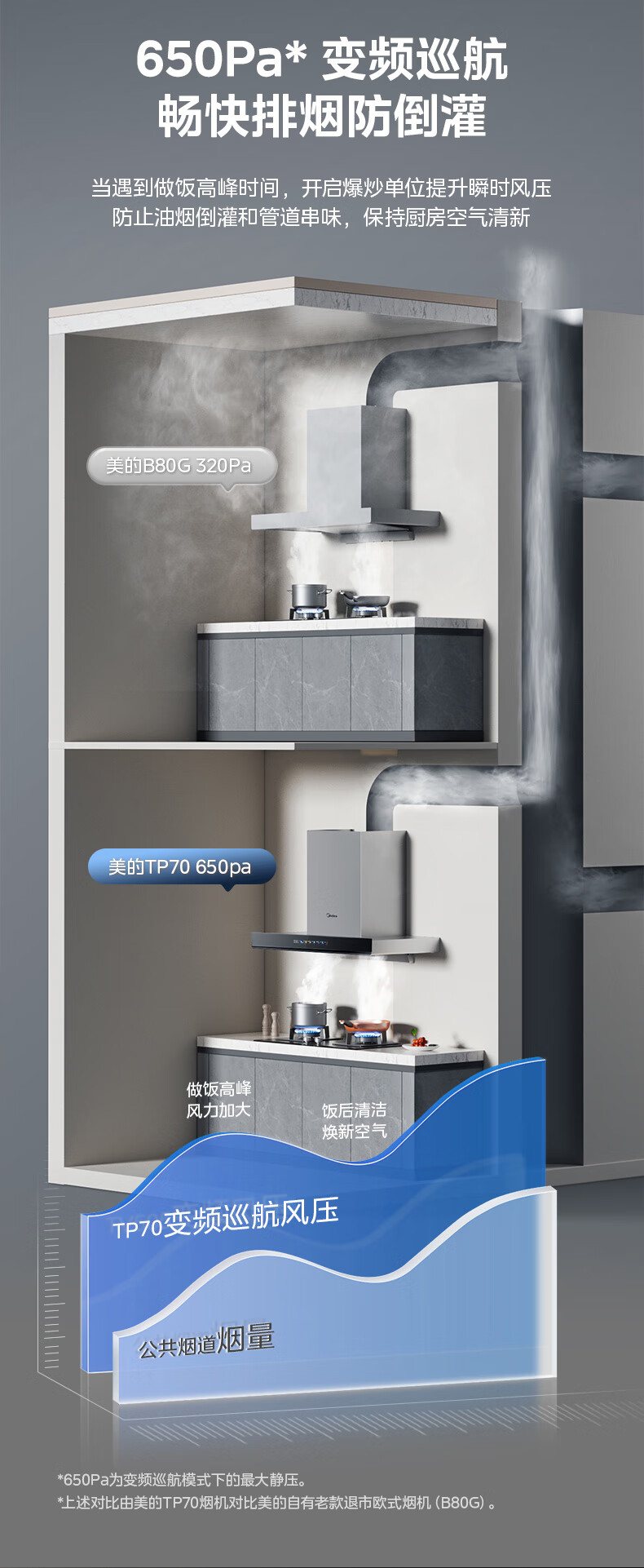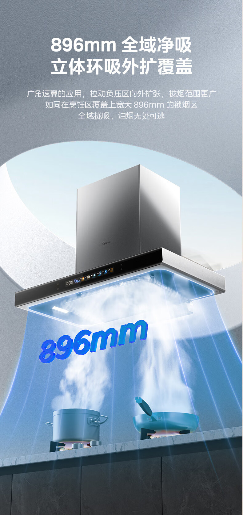 美的(Midea)抽油烟机燃气灶家用顶吸23风量超真实屏 挥手智控自清洗 变频烟灶联动TP70+Q523L天然气套装