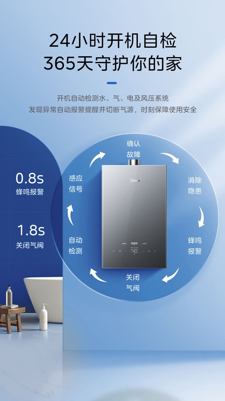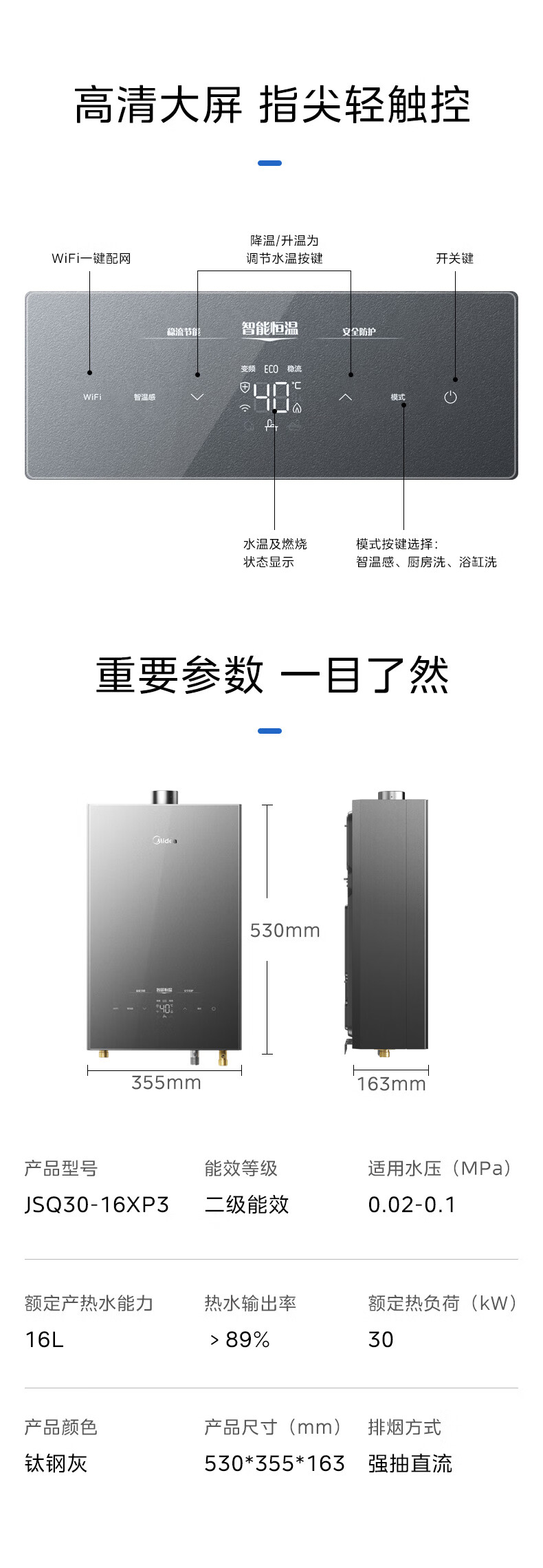 美的(Midea)16L燃气热水器水汽双调 恒温家用燃气热水器 JSQ30-16XP3*