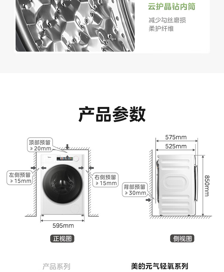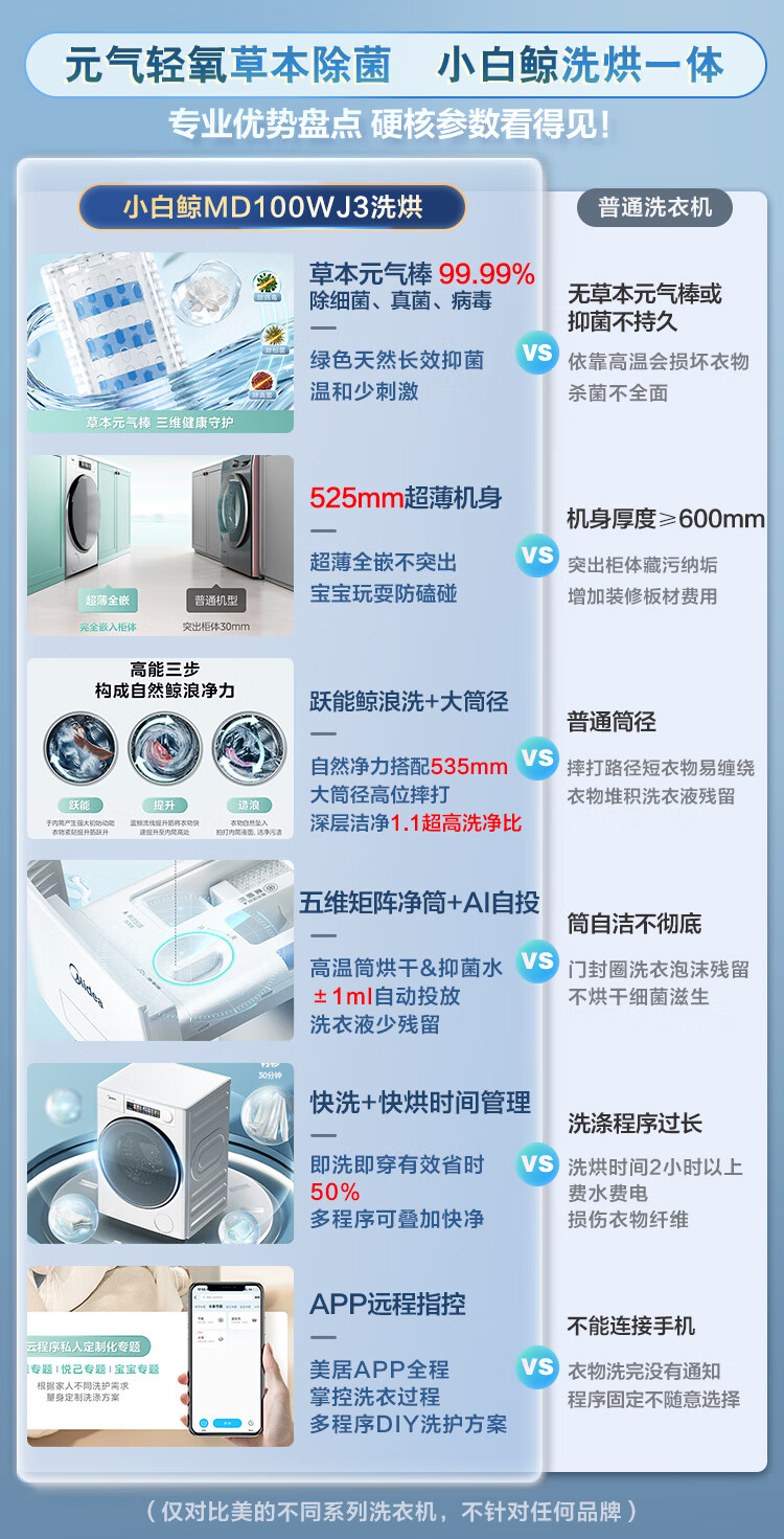 美的(Midea)滚筒洗衣机全自动 元气轻氧系列 小白鲸 MD100WJ3 10公斤洗烘一体机 草本除菌 1.1洗净比 超薄全嵌