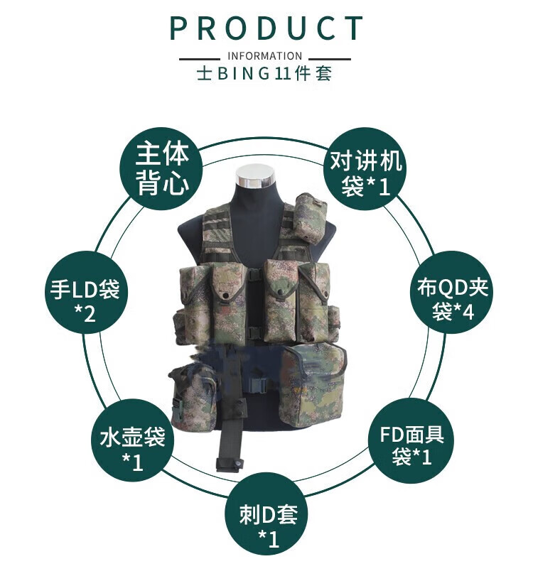 荣兵 林地星空战斗携行具战士单兵战术背心马甲子弹袋防护装备丛林款11件套(步枪配置)