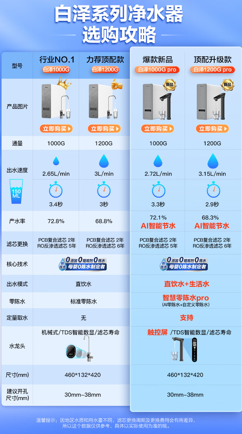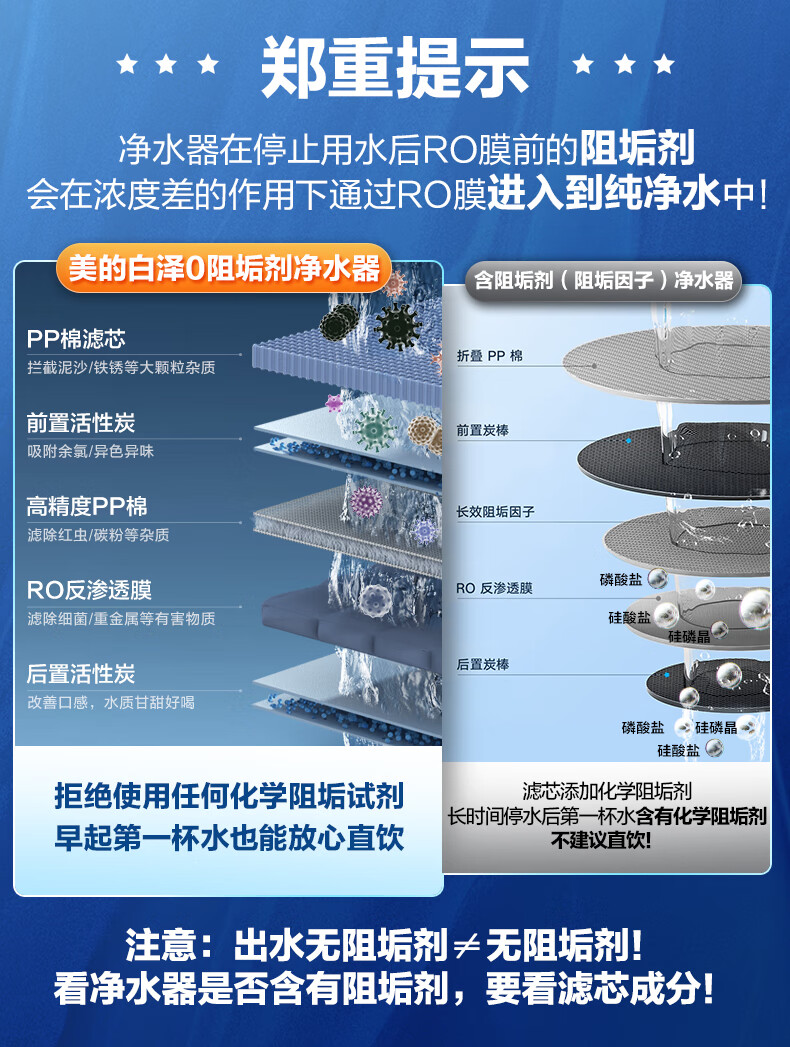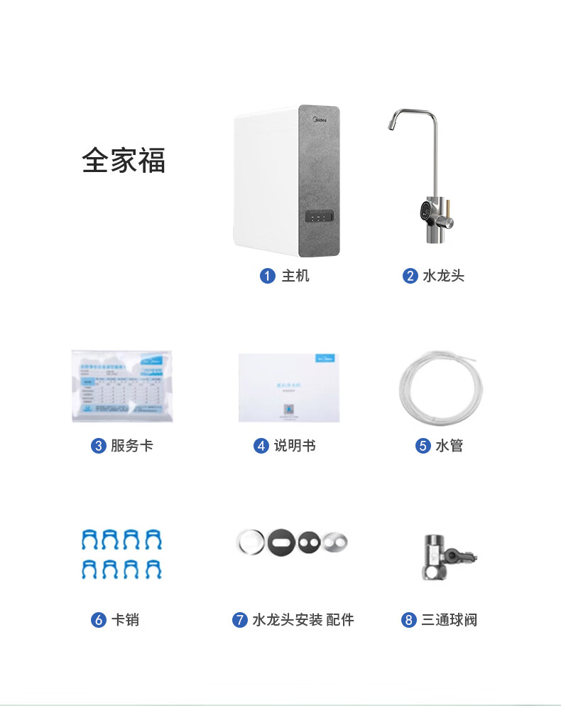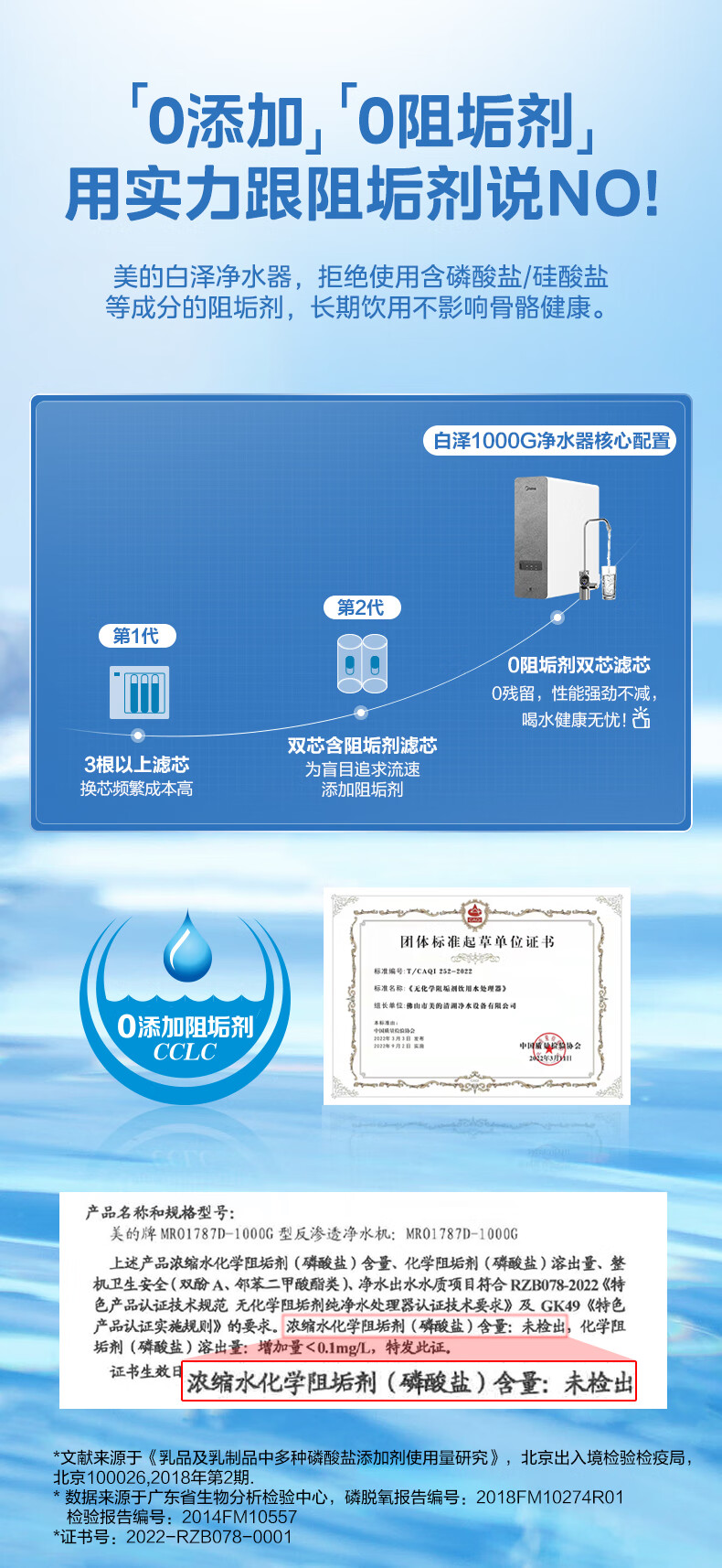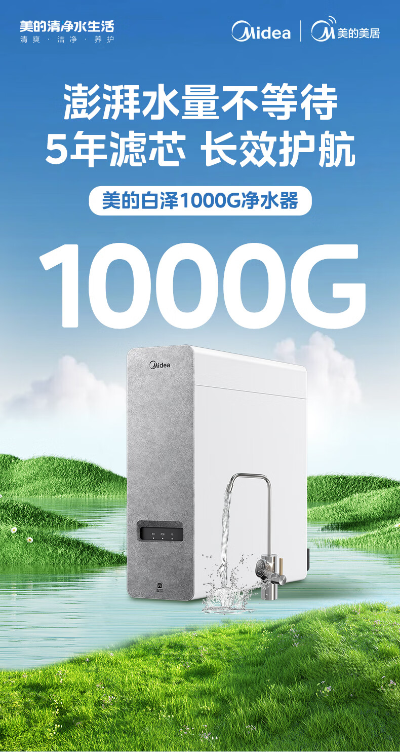 美的(Midea)净水器家用净水机 厨房厨下式净饮机直饮机5年RO反渗透过滤器 白泽1000G+前置TQ40-01套装