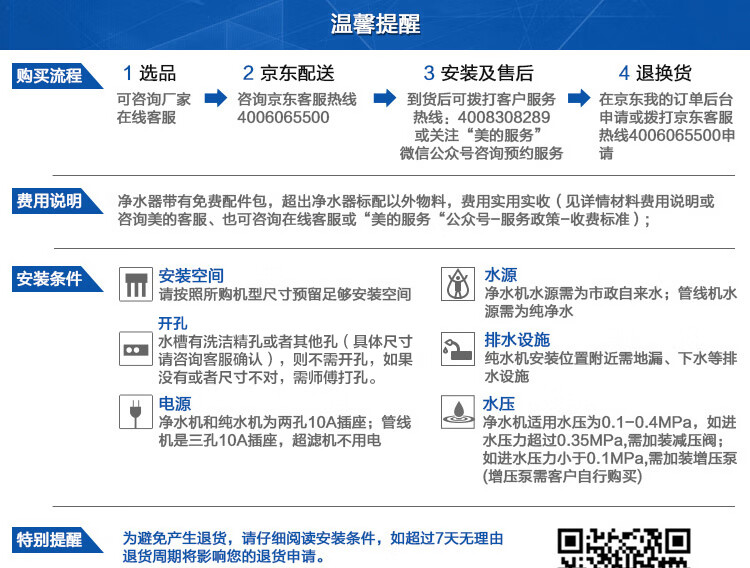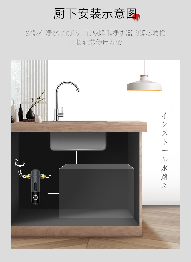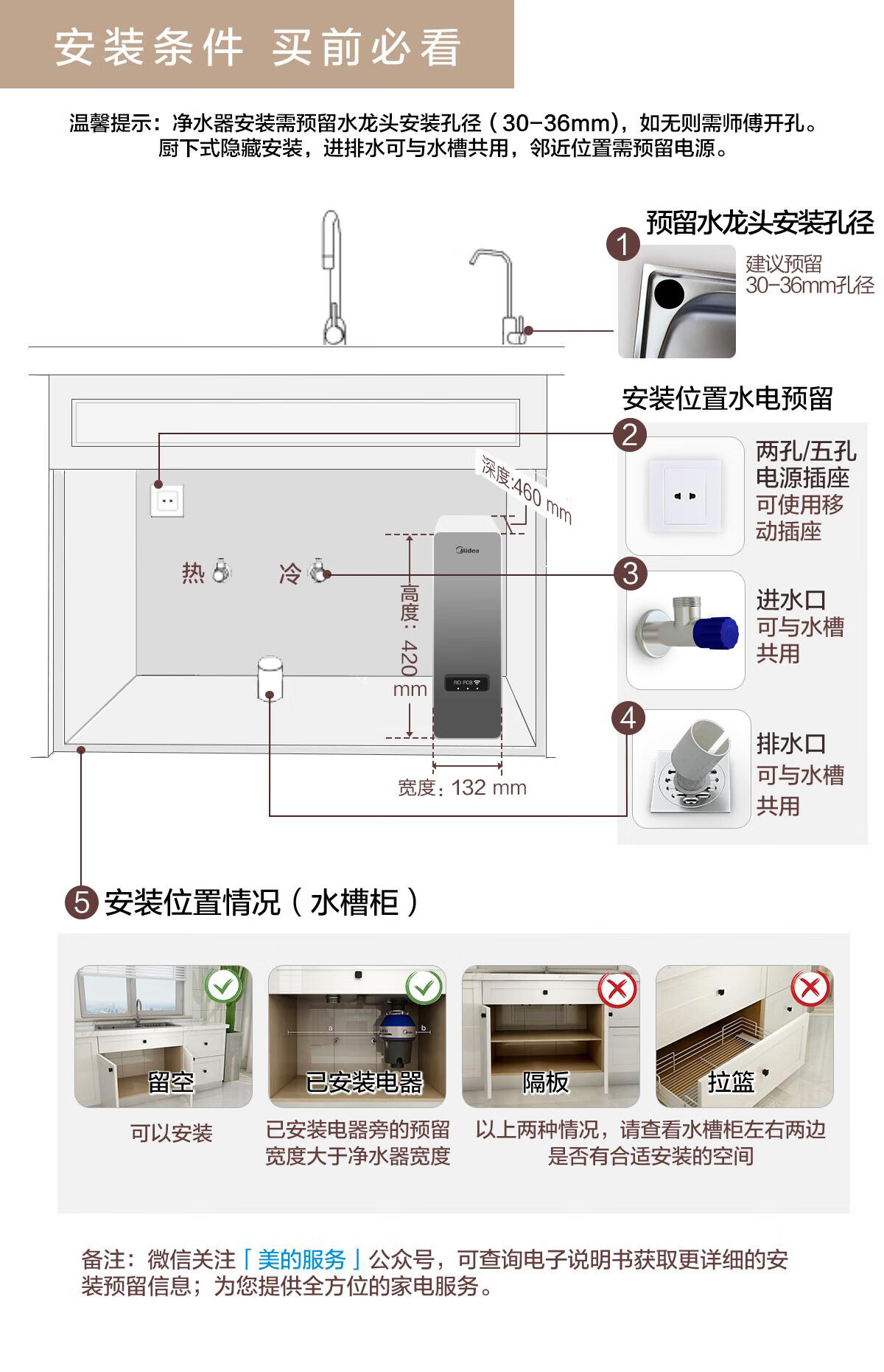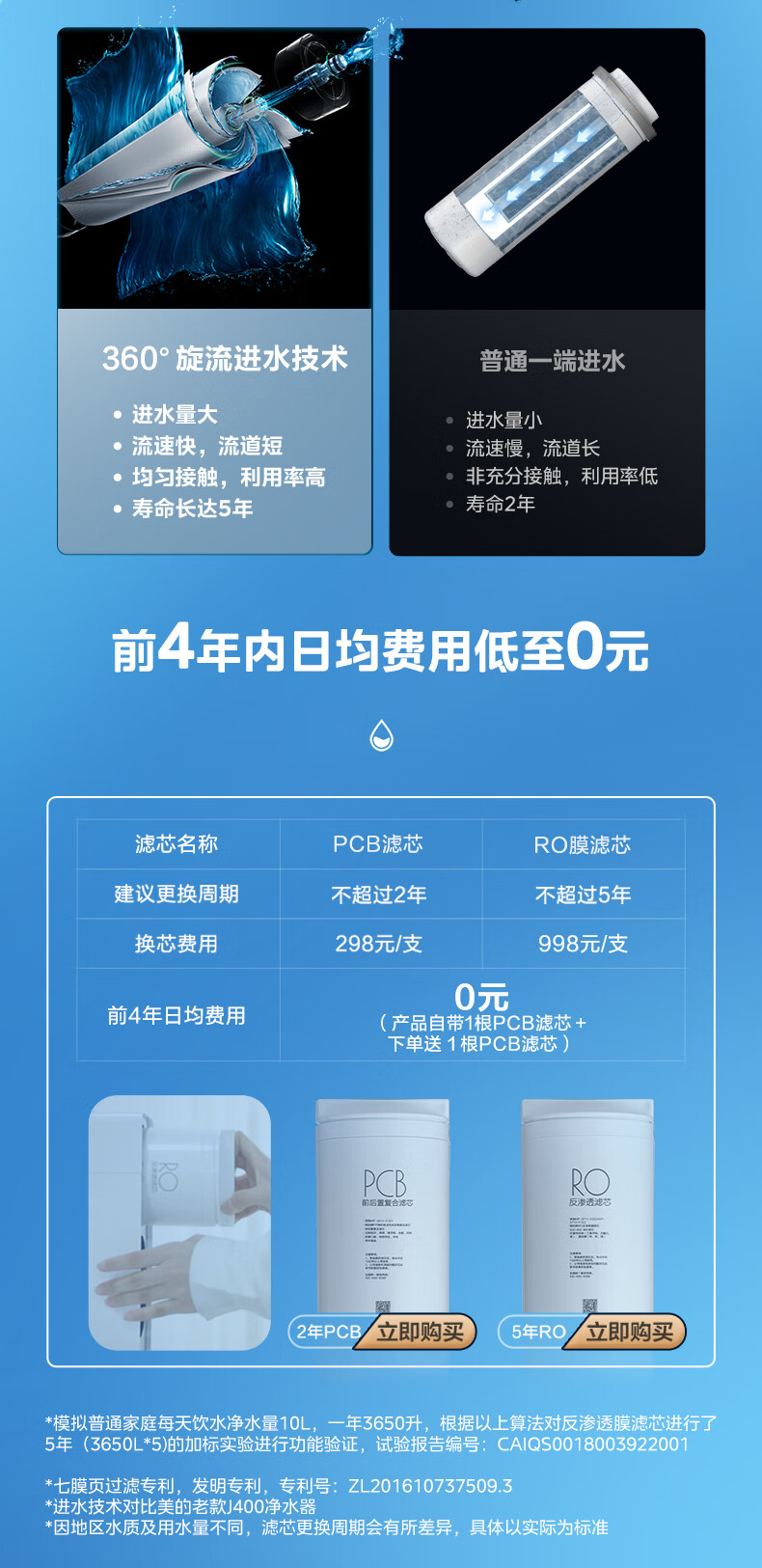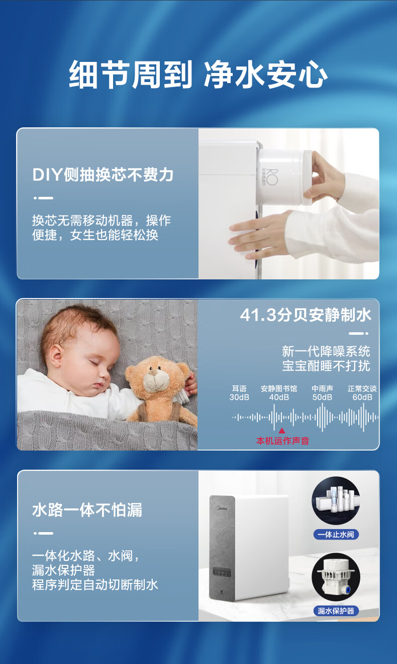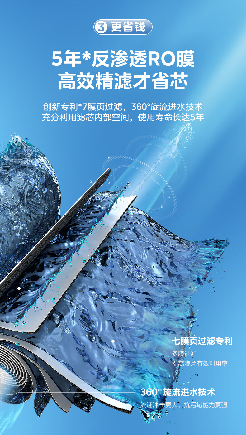美的(Midea)净水器家用净水机 厨房厨下式净饮机直饮机5年RO反渗透过滤器 白泽1000G+前置TQ40-01套装