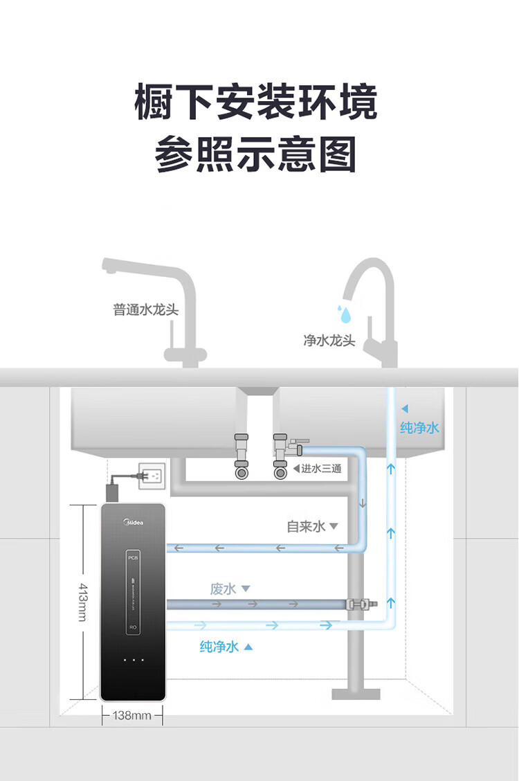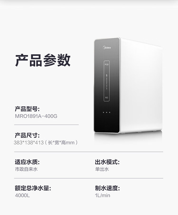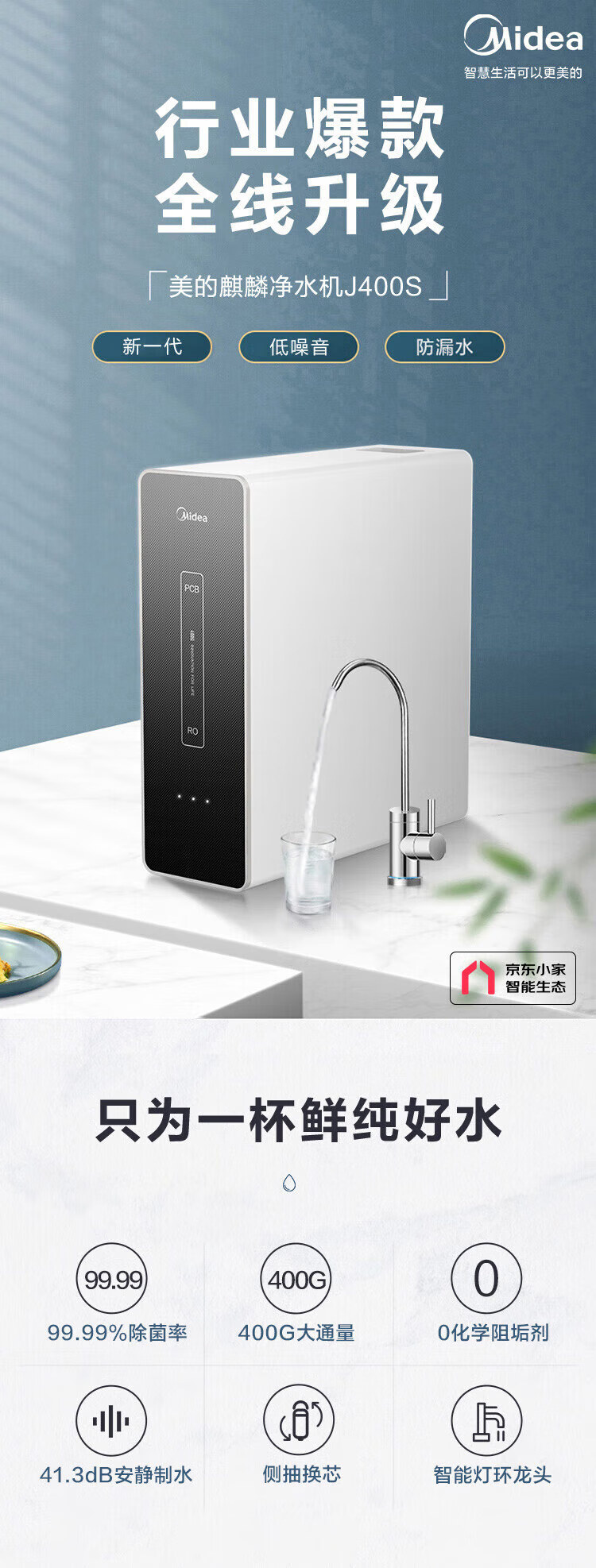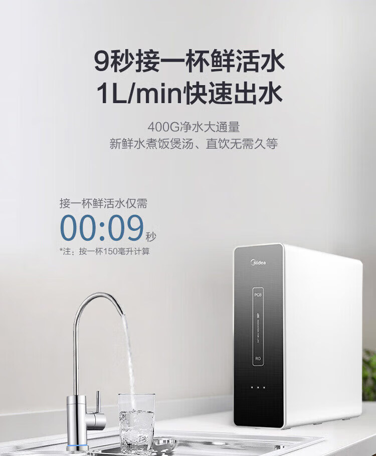 美的(Midea)直饮加热净水器套装【麒麟J400S+管线机908A】厨下RO反渗透 家用壁挂式即热一体净饮机