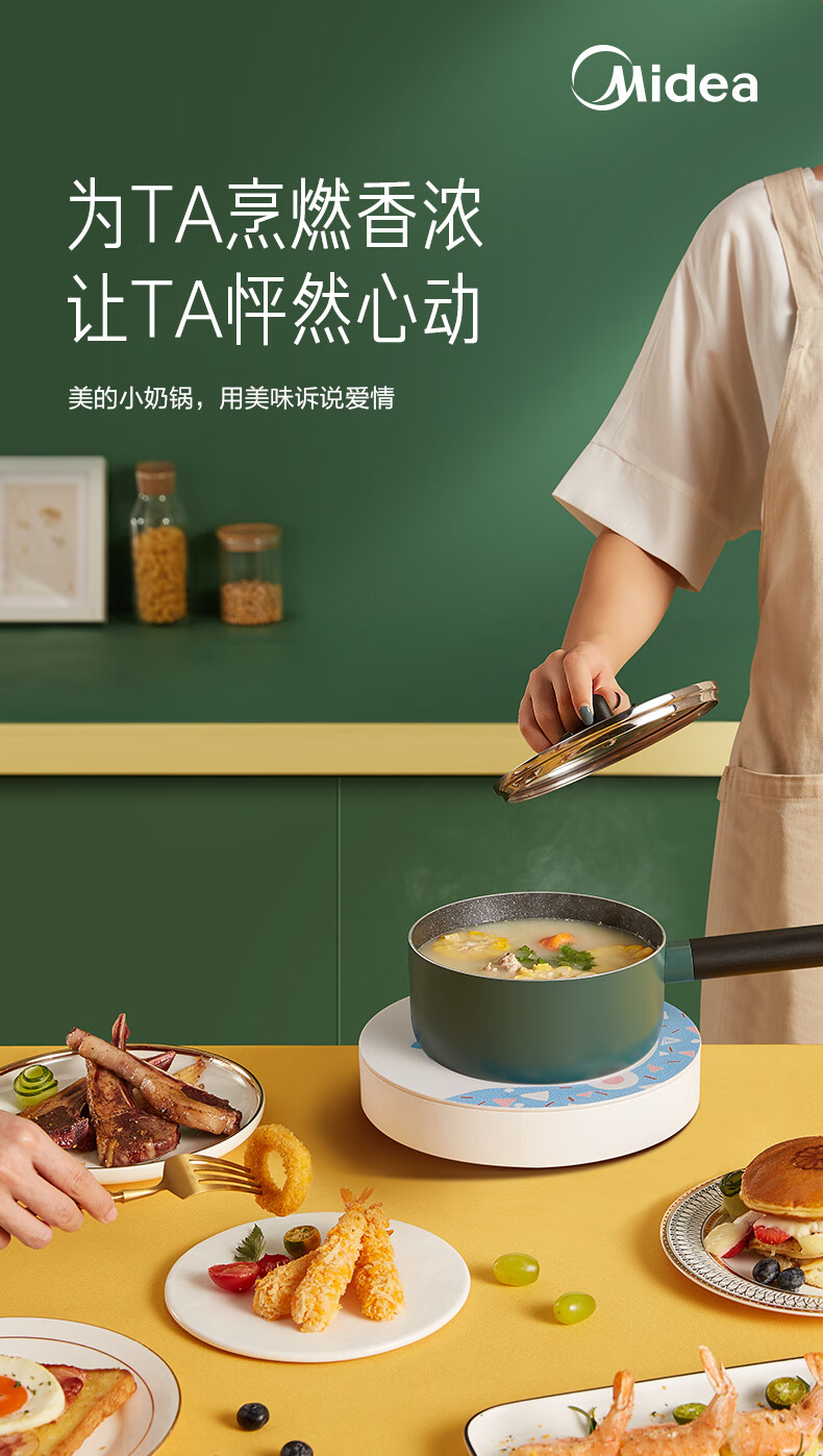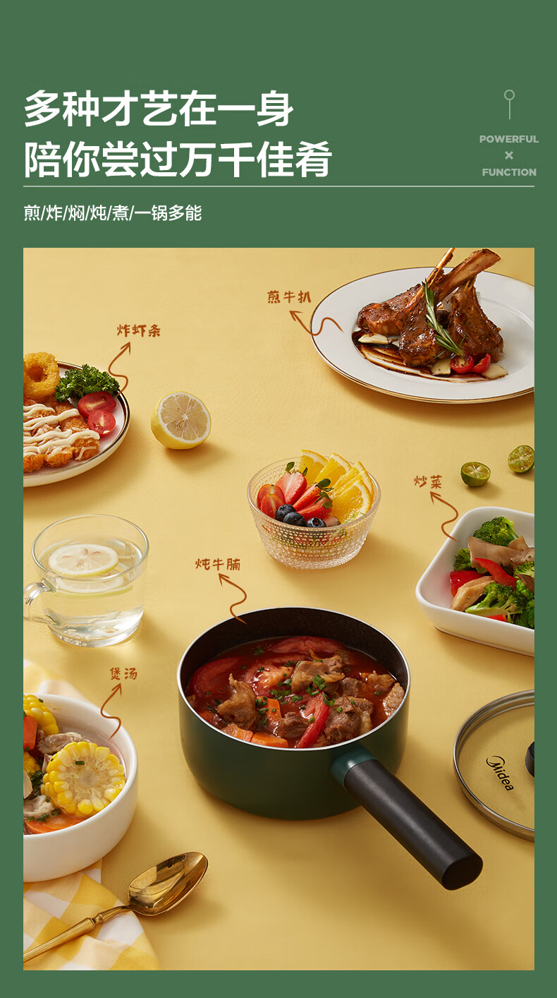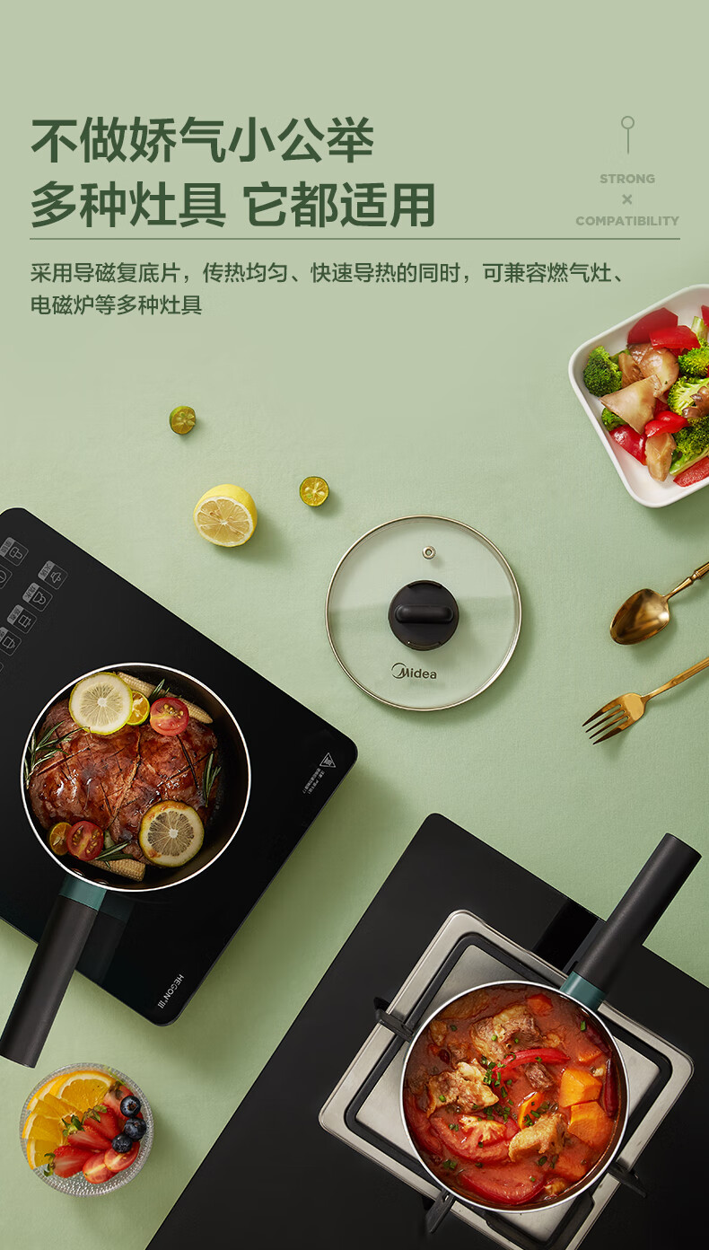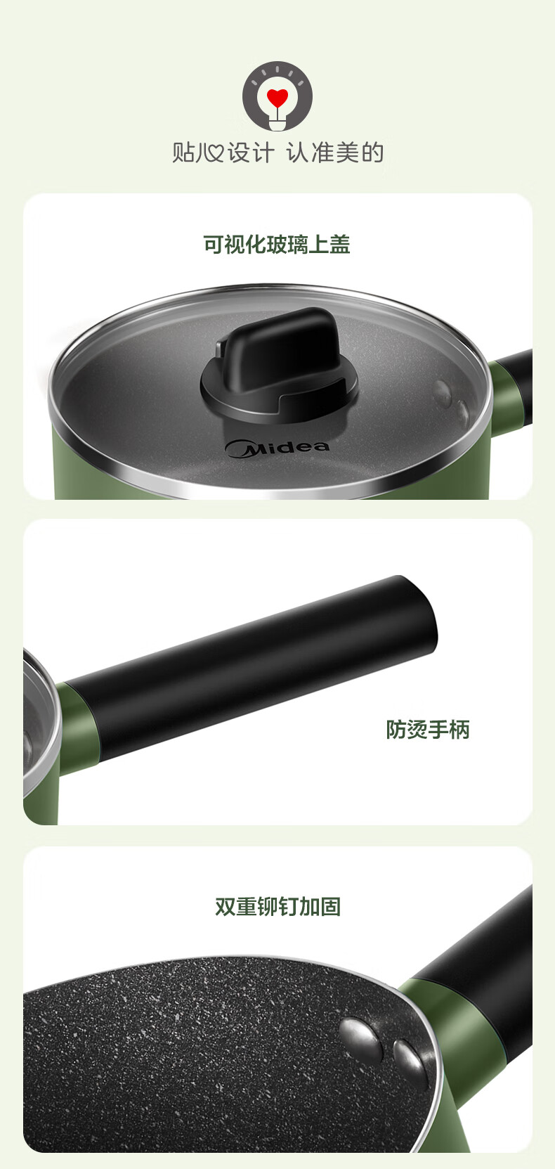 美的(Midea)汤锅带蒸笼奶锅婴儿辅食锅家用煮热奶不粘锅燃磁适用CJ16Pot302B