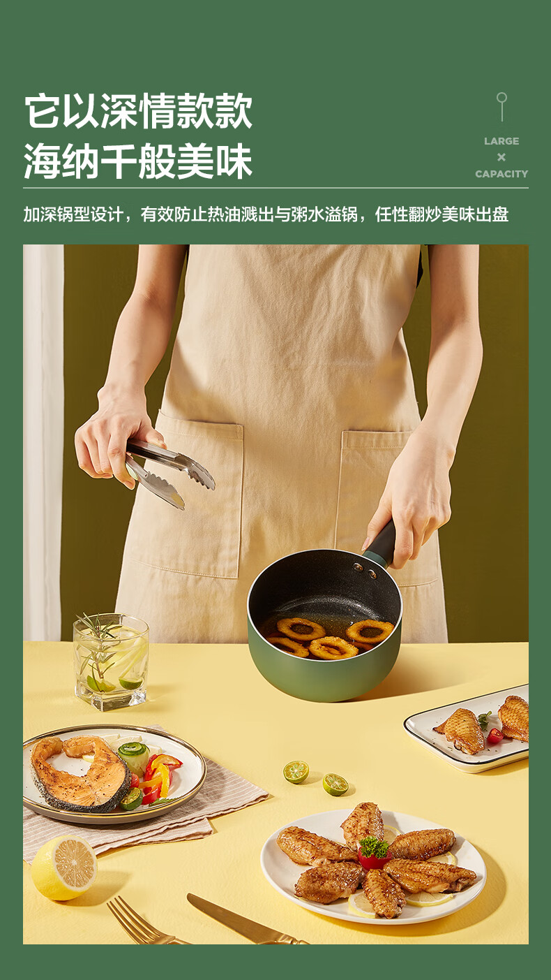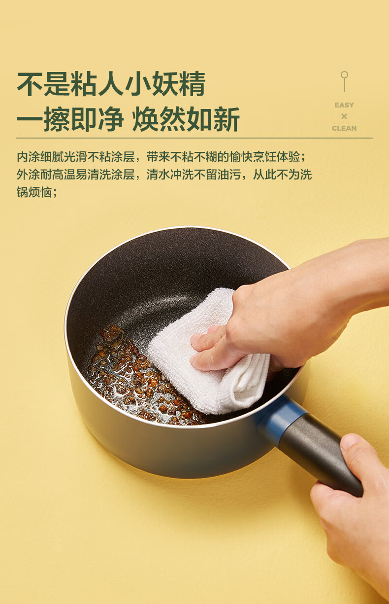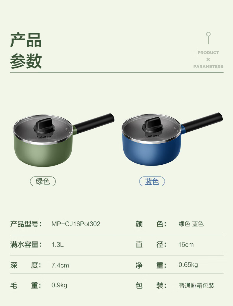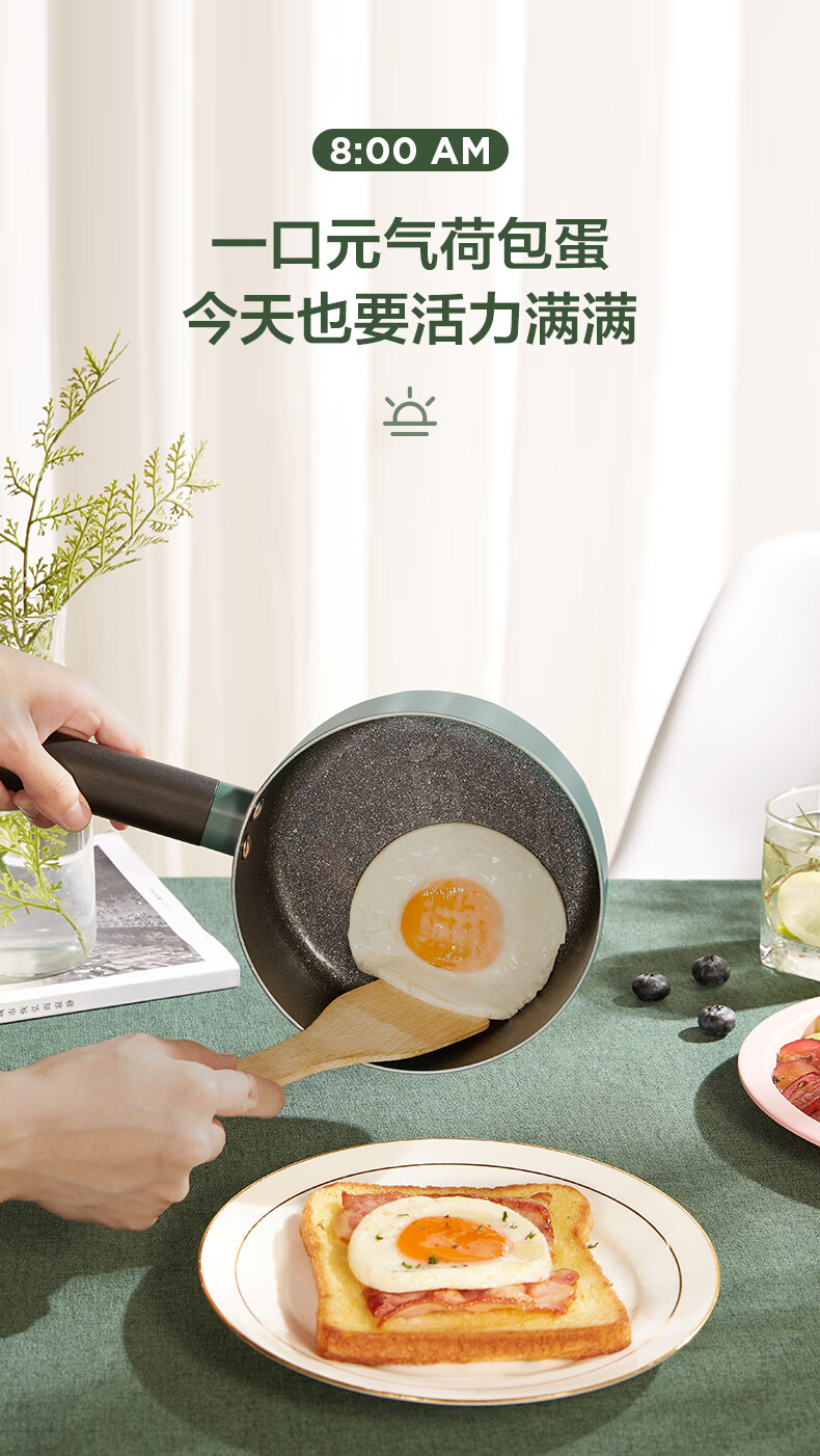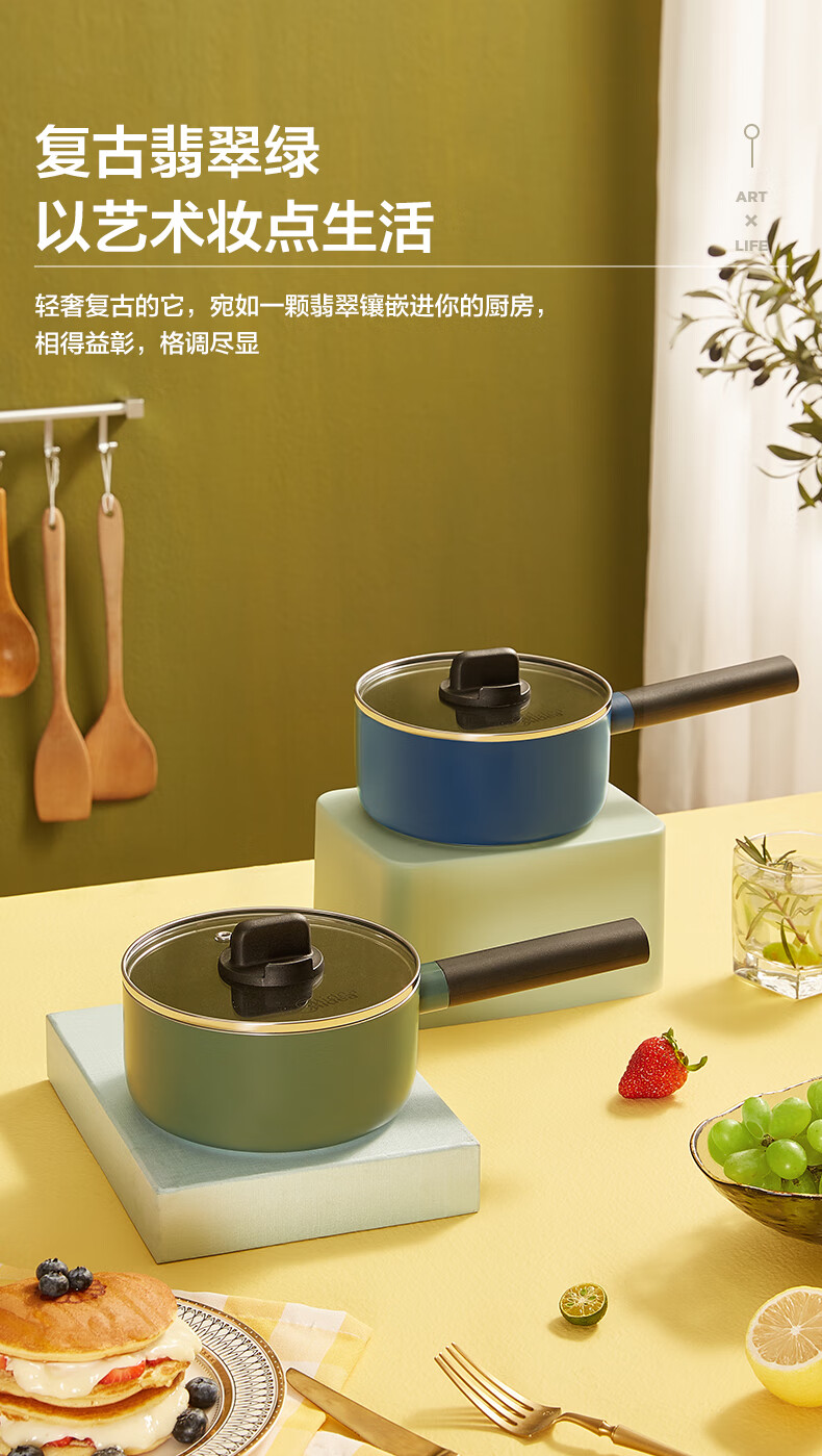 美的(Midea)汤锅带蒸笼奶锅婴儿辅食锅家用煮热奶不粘锅燃磁适用CJ16Pot302B