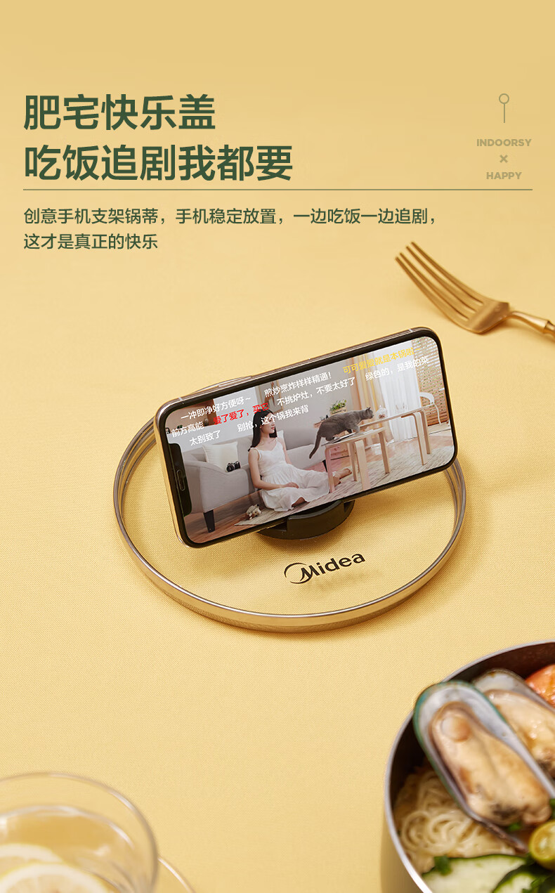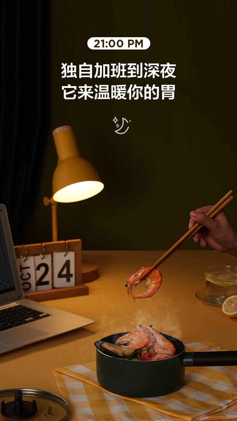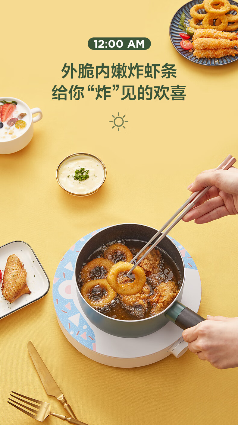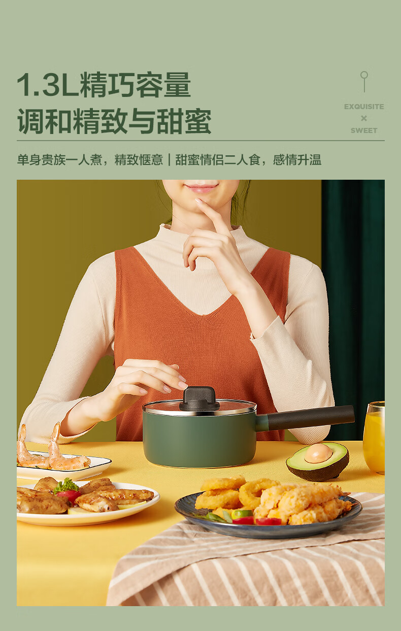 美的(Midea)汤锅带蒸笼奶锅婴儿辅食锅家用煮热奶不粘锅燃磁适用CJ16Pot302B