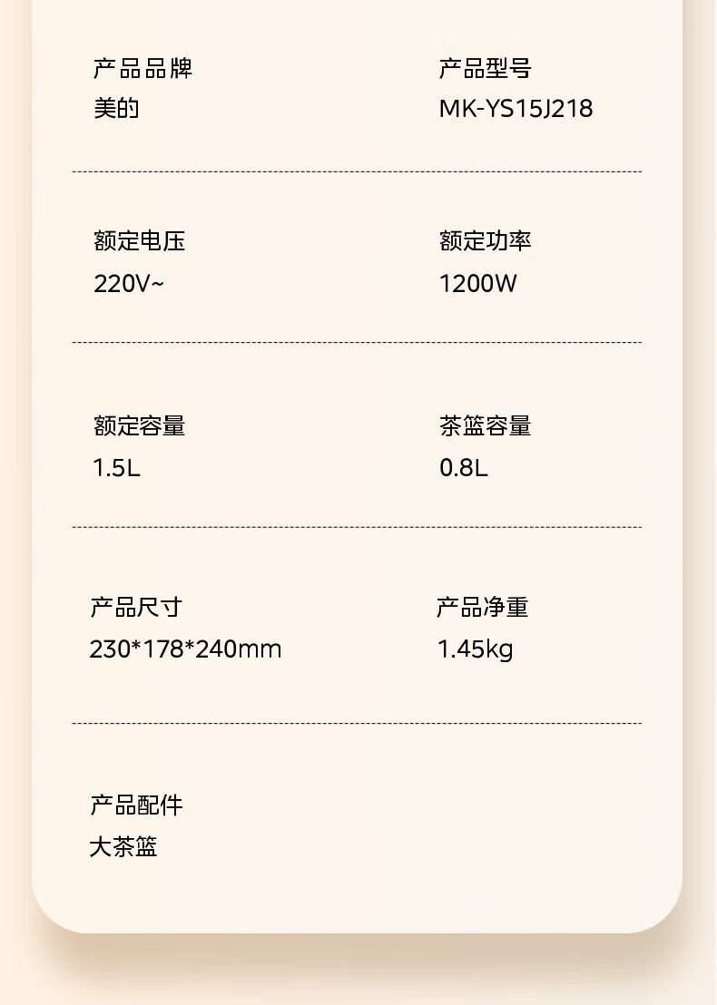 美的(Midea)恒温养生壶MK-YS15J218 北京同仁堂 青源堂 桃胶雪燕皂角米组合500克