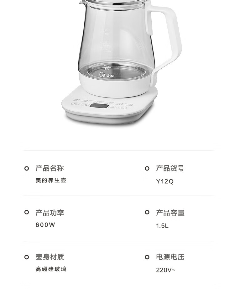 美的(Midea)1.5L大容量花茶壶MK-Y12Q 北京同仁堂 青源堂宁夏特级红枸杞500克