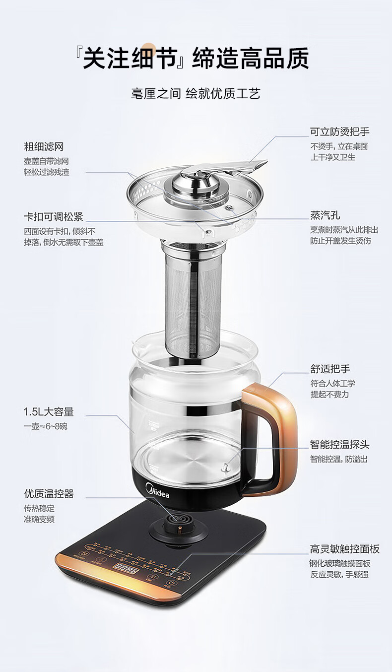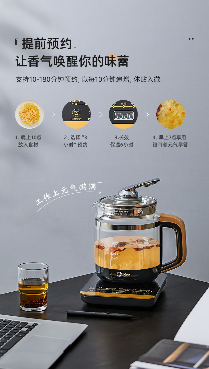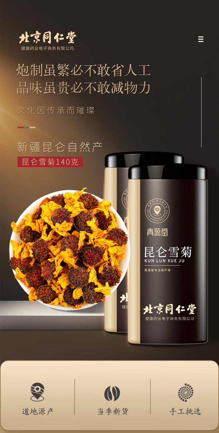 美的(Midea)养生壶1.5L大容量18项功能烧水壶 恒温壶 北京同仁堂 青源堂 昆仑雪菊140克(70克*2)