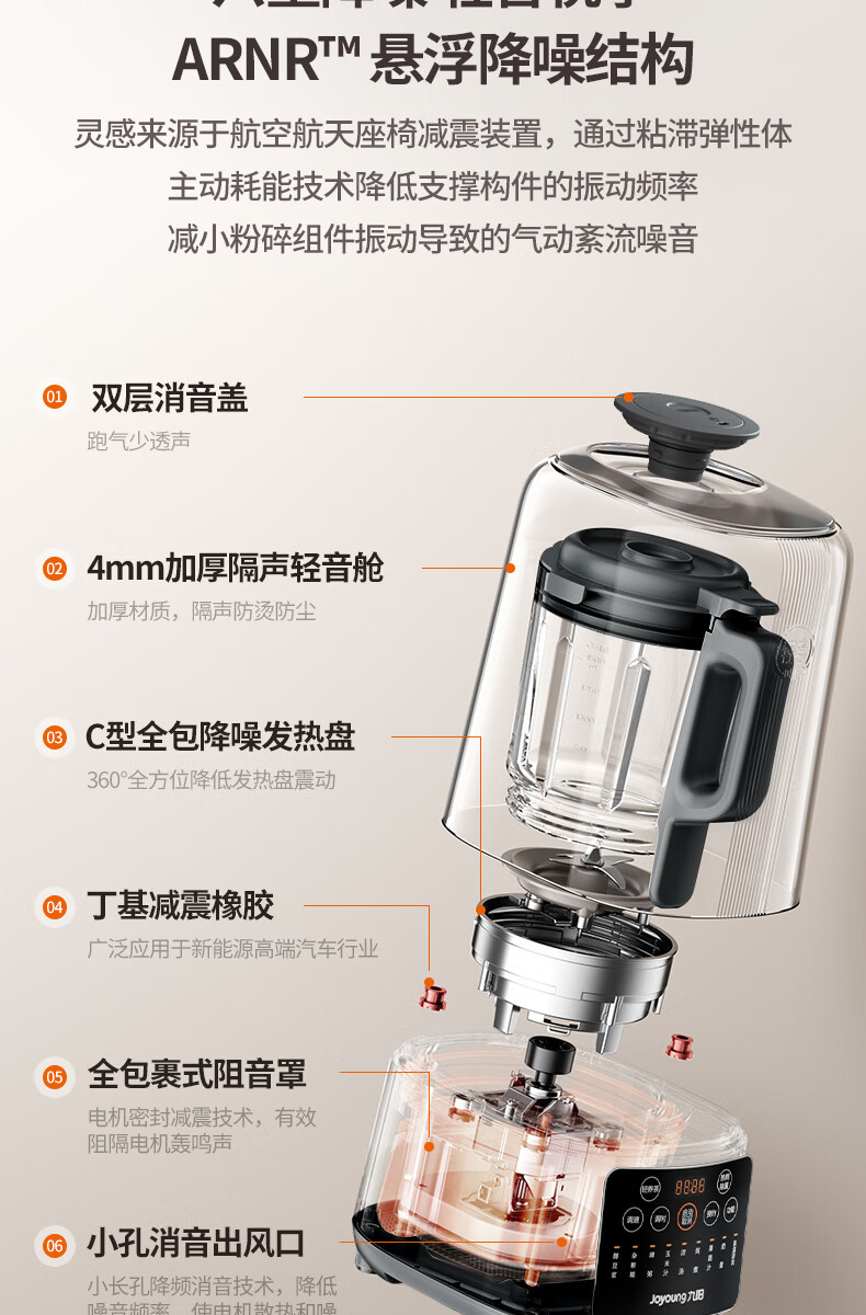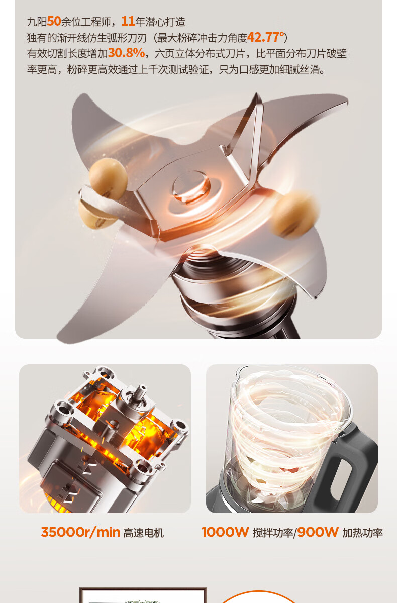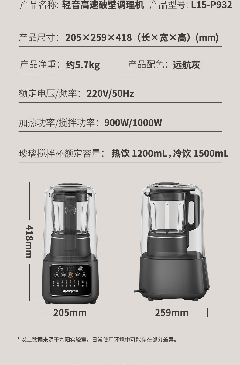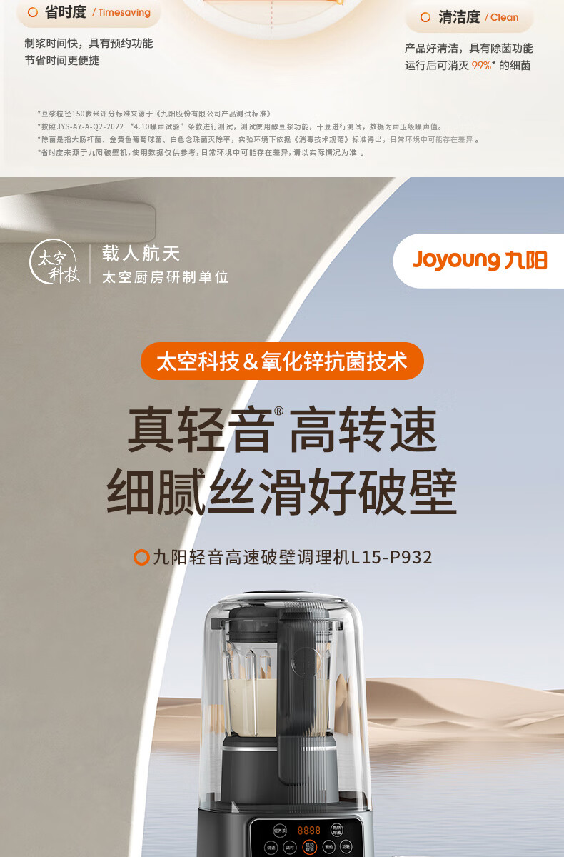 九阳(Joyoung)ZMD安心系列 破壁机家用 六重降噪轻音高速破壁多功能预约定时豆浆机料理机榨汁机L15-P932
