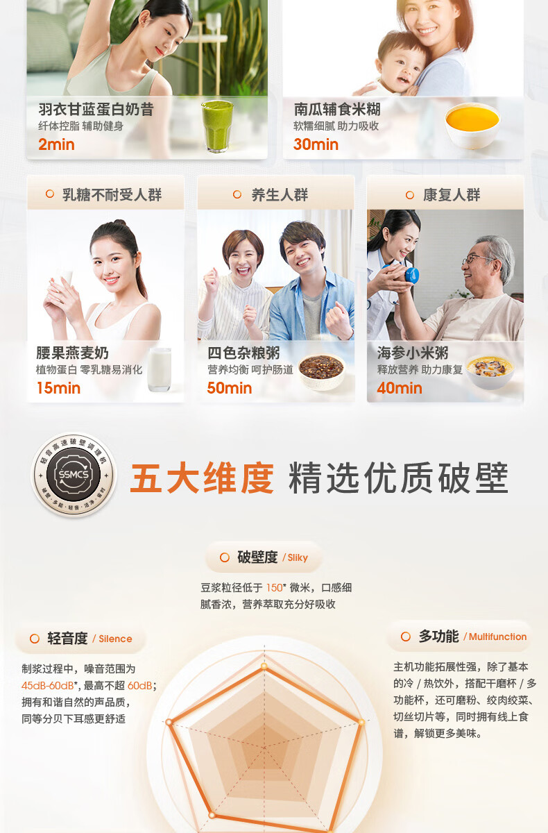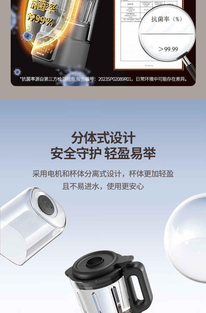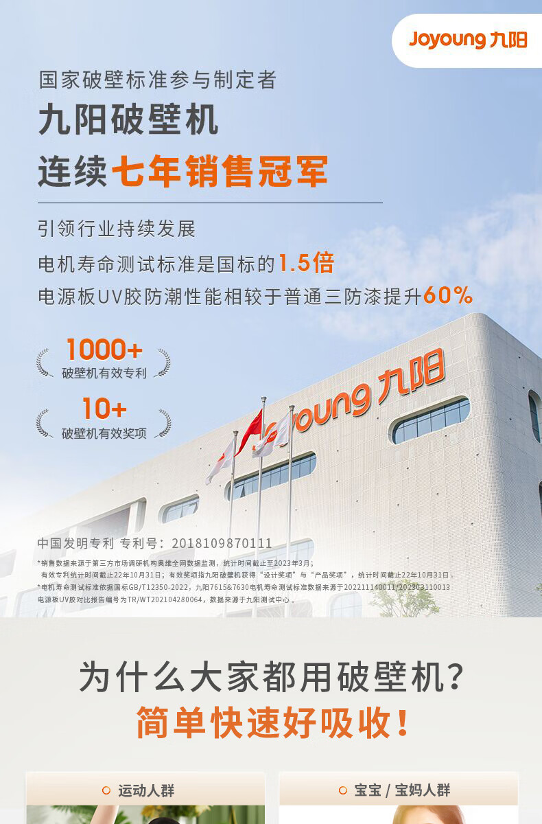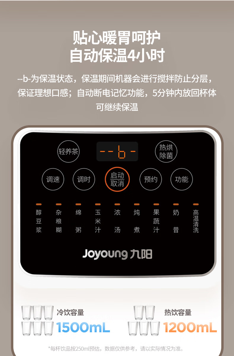 九阳(Joyoung)ZMD安心系列 破壁机家用 六重降噪轻音高速破壁多功能预约定时豆浆机料理机榨汁机L15-P932