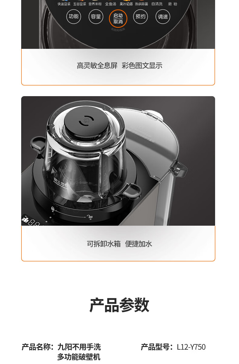 九阳(Joyoung)ZMD安心系列 免手洗破壁机 热烘除菌低音破壁高端多功能预约定时榨汁机豆浆机L12-Y750