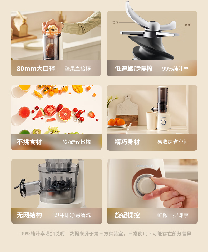 九阳(Joyoung)原汁机 多功能家用电动榨汁机全自动冷压炸果汁果蔬机渣汁分离Z5-LZ550