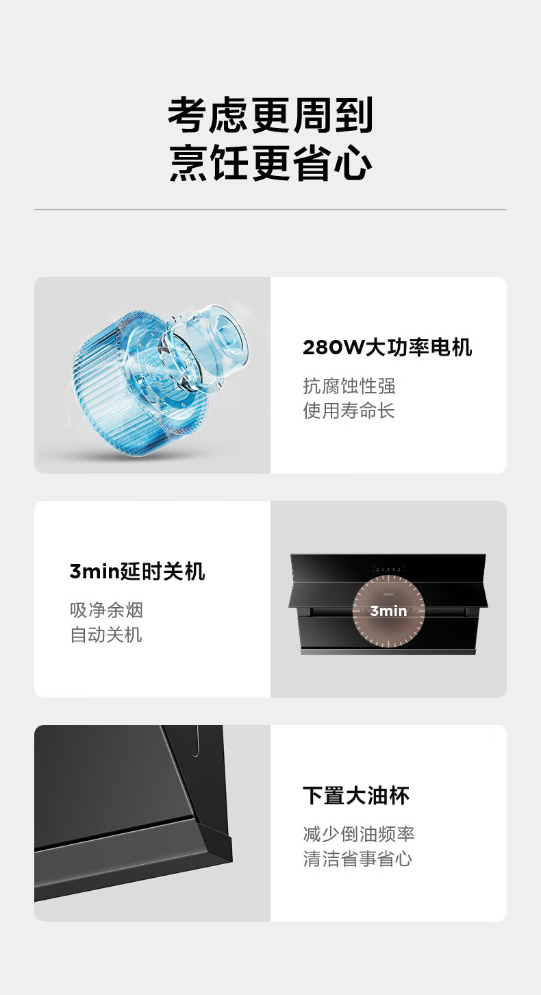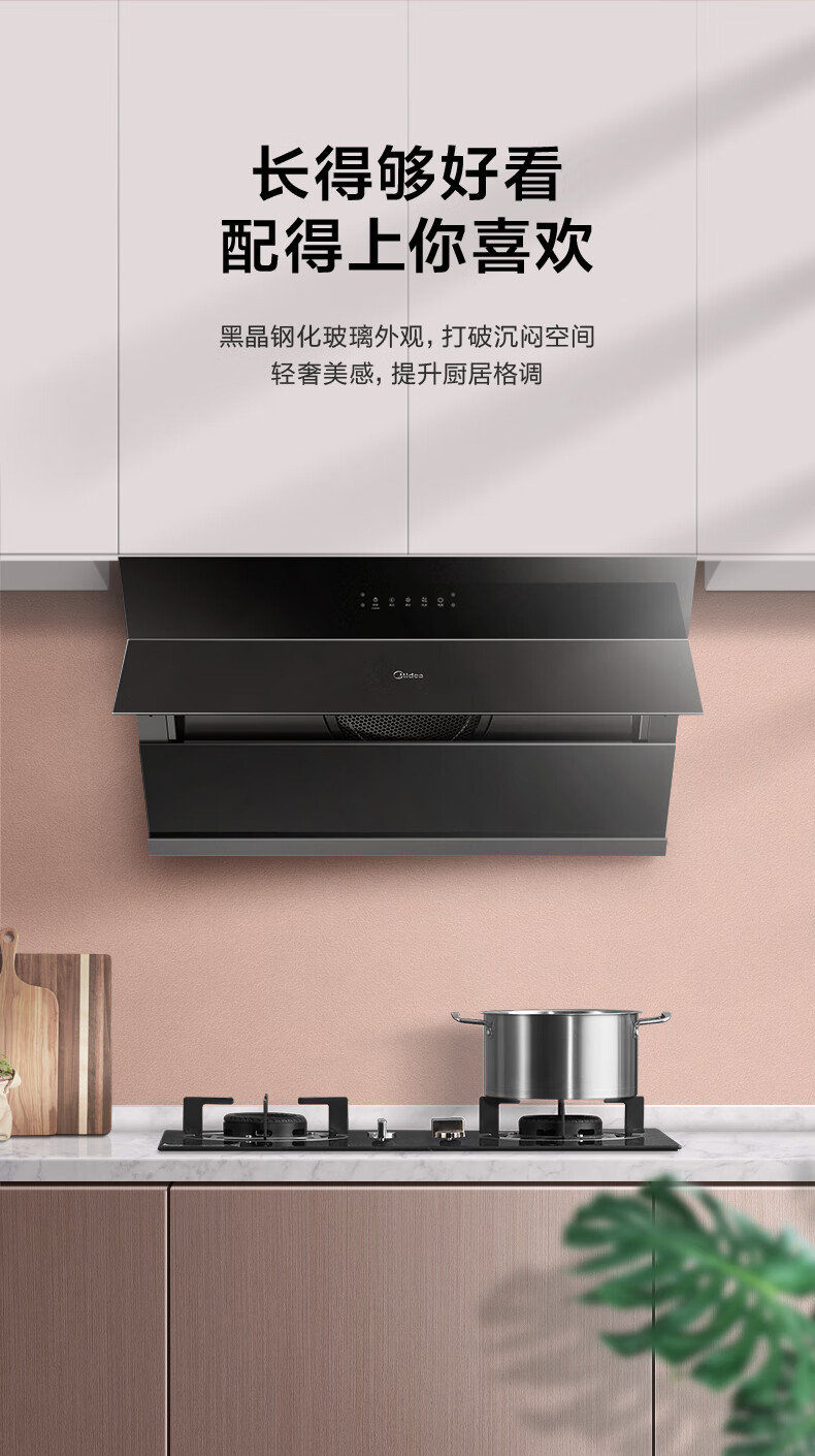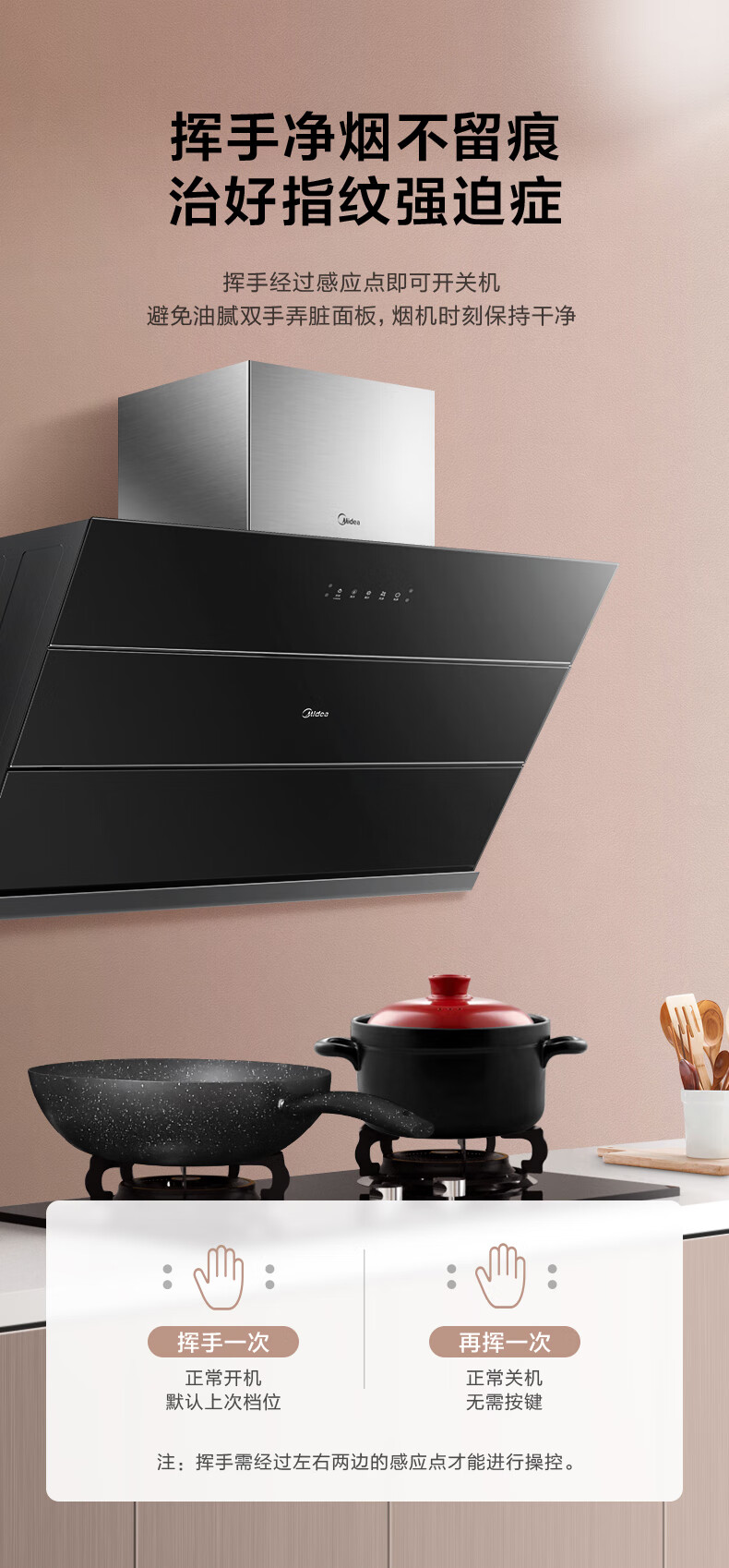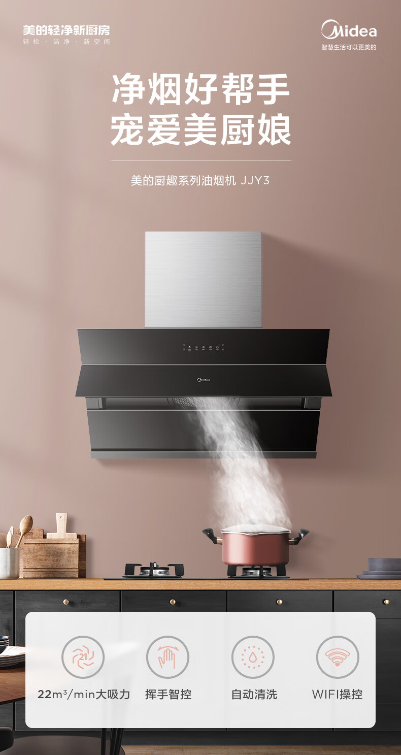 美的(Midea)抽油烟机侧吸式家用厨房油烟机22立方爆炒大吸力 高压直喷洗 挥手控制 WiFi智控CXW-280-JJY3*