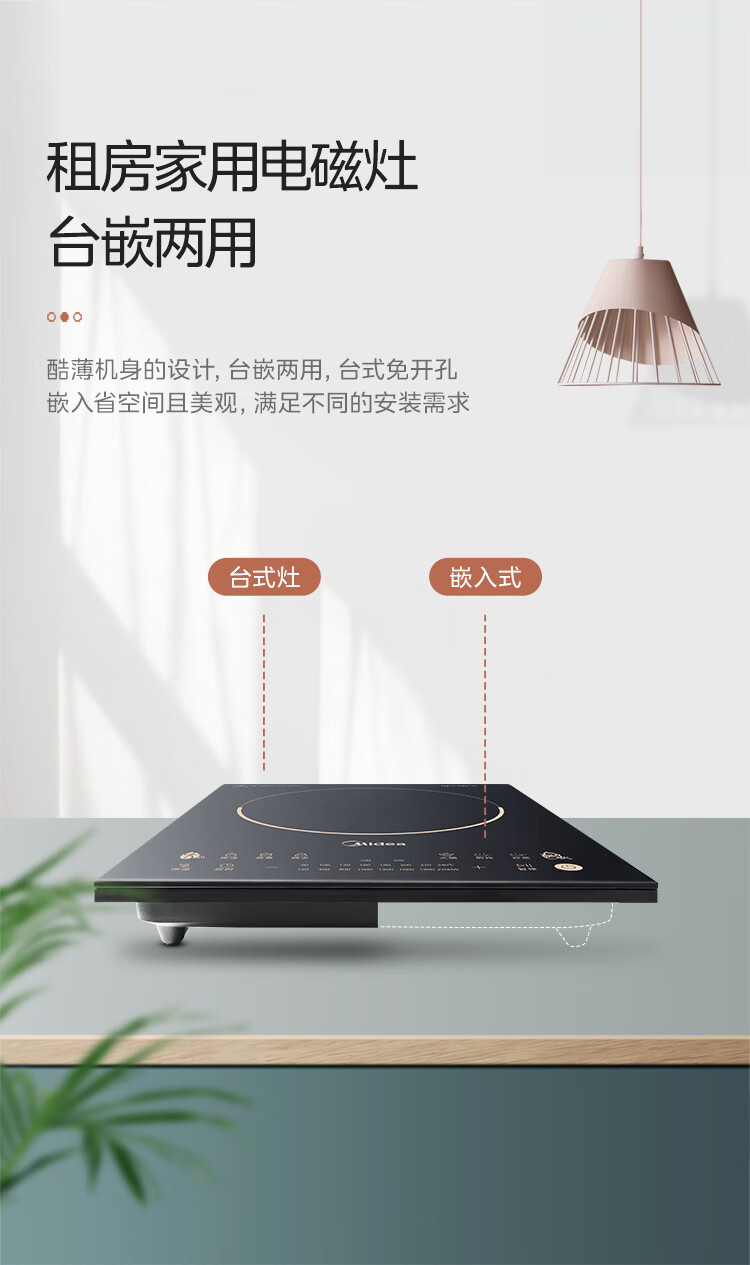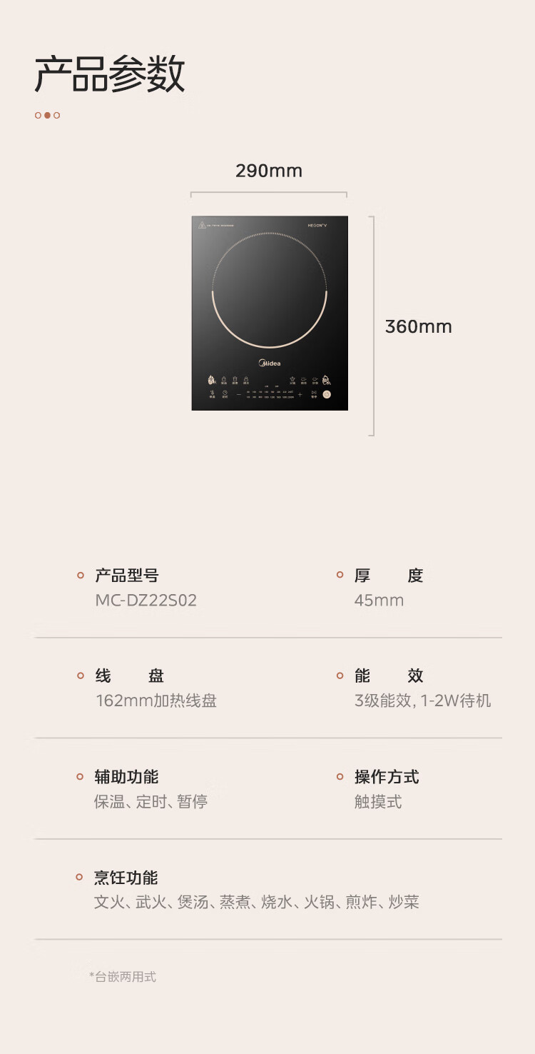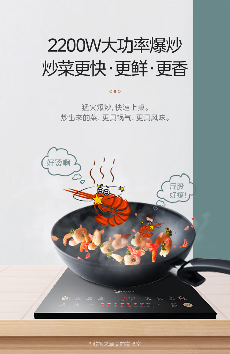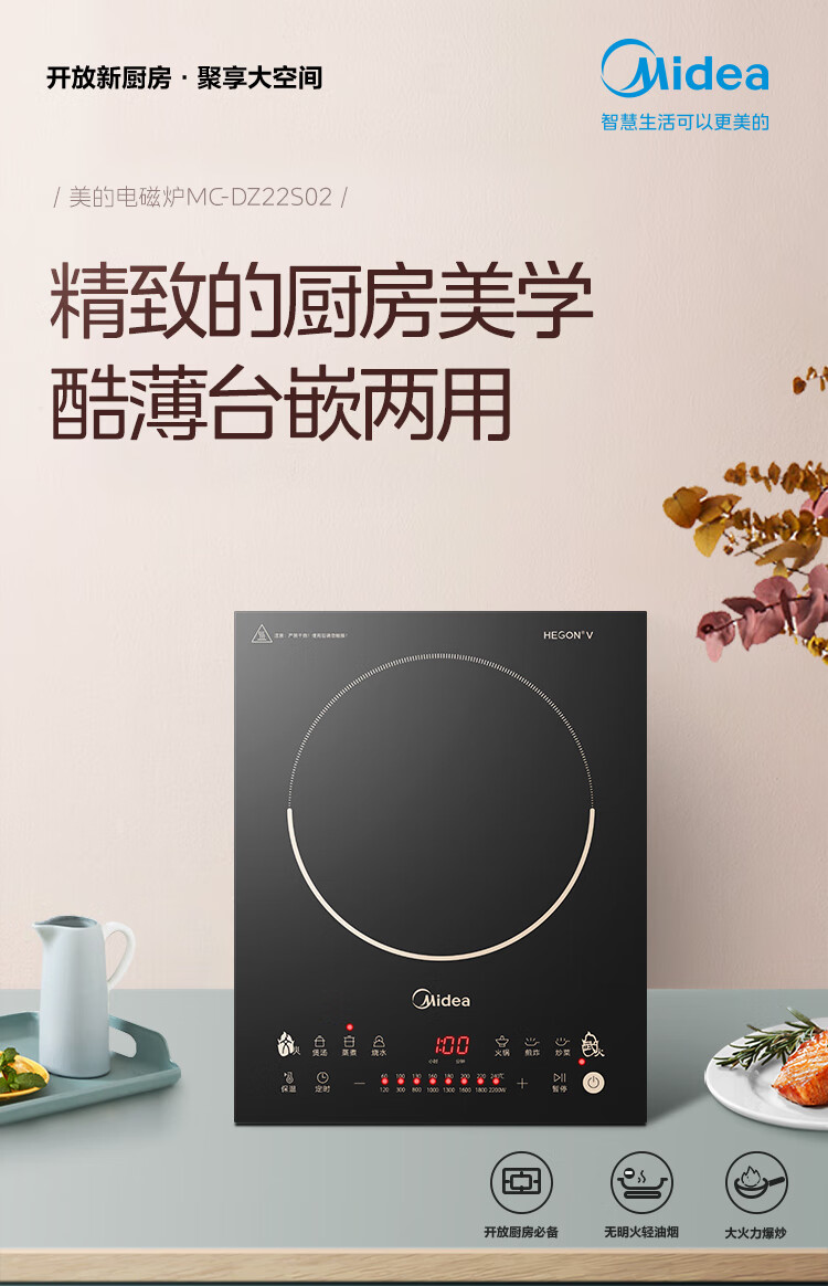 美的(Midea)单灶电磁炉 电磁灶 2200W大功率触控按键面板 八档火力 台嵌两用 定时功能电磁灶火锅炉MC-DZ22S02